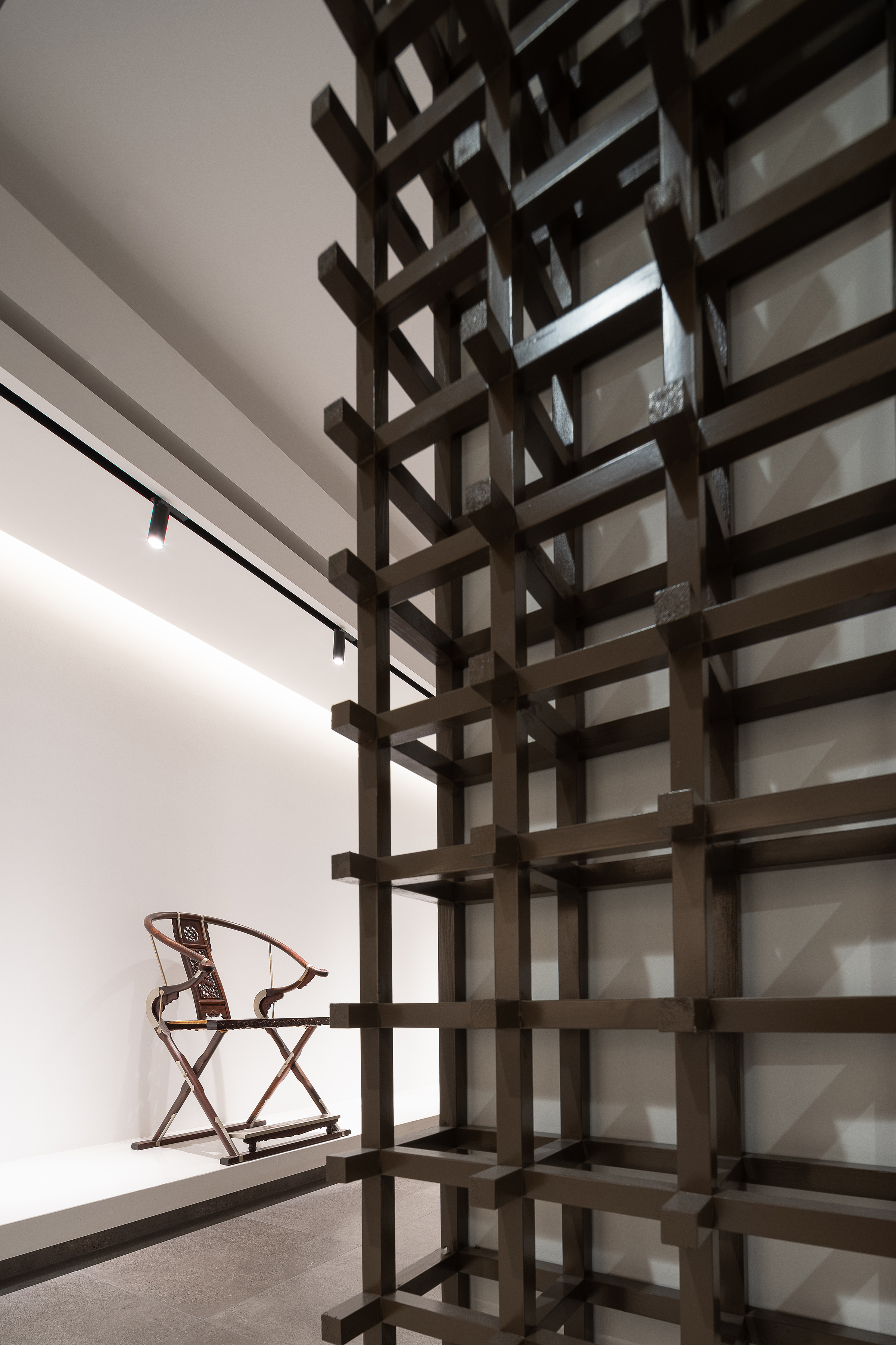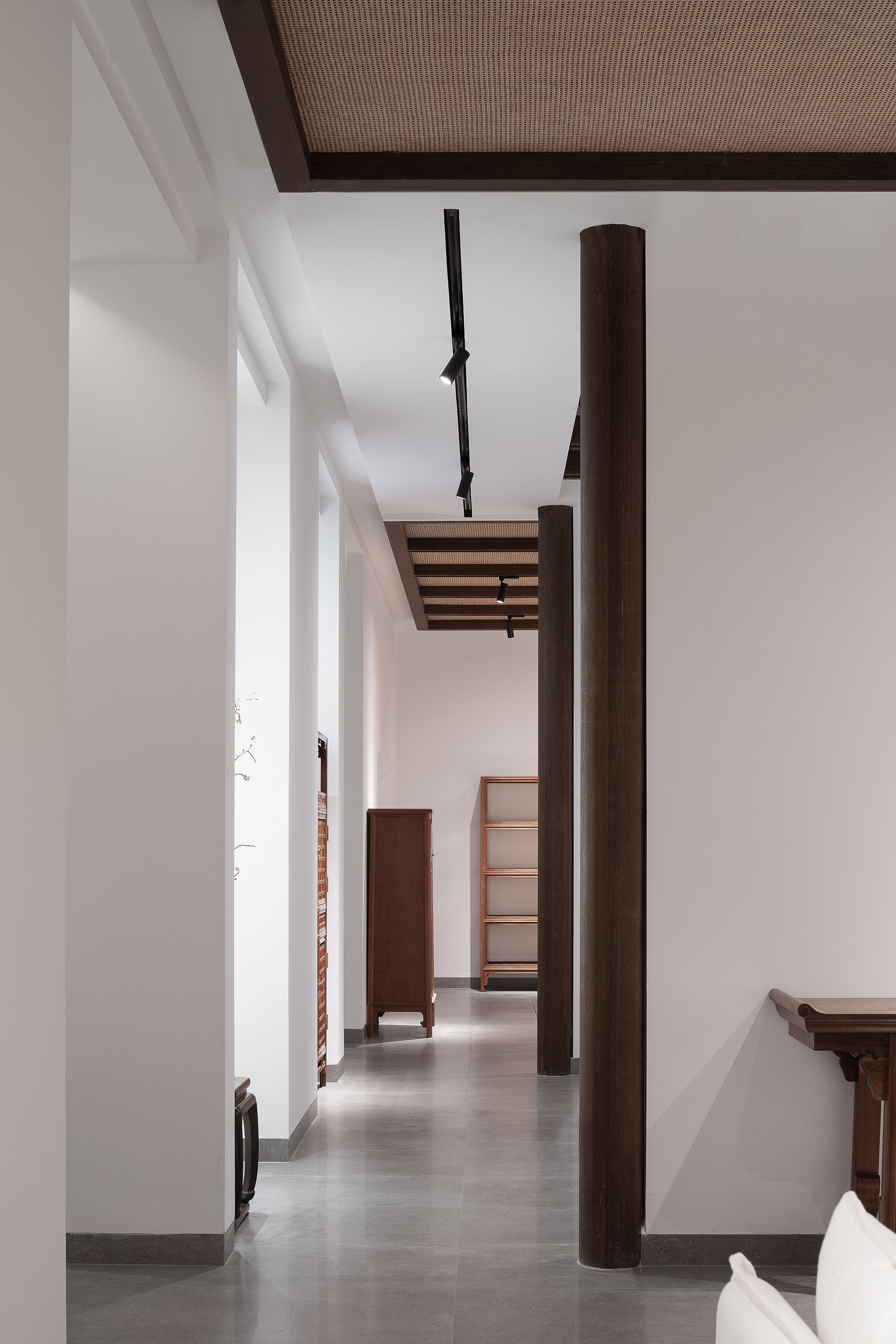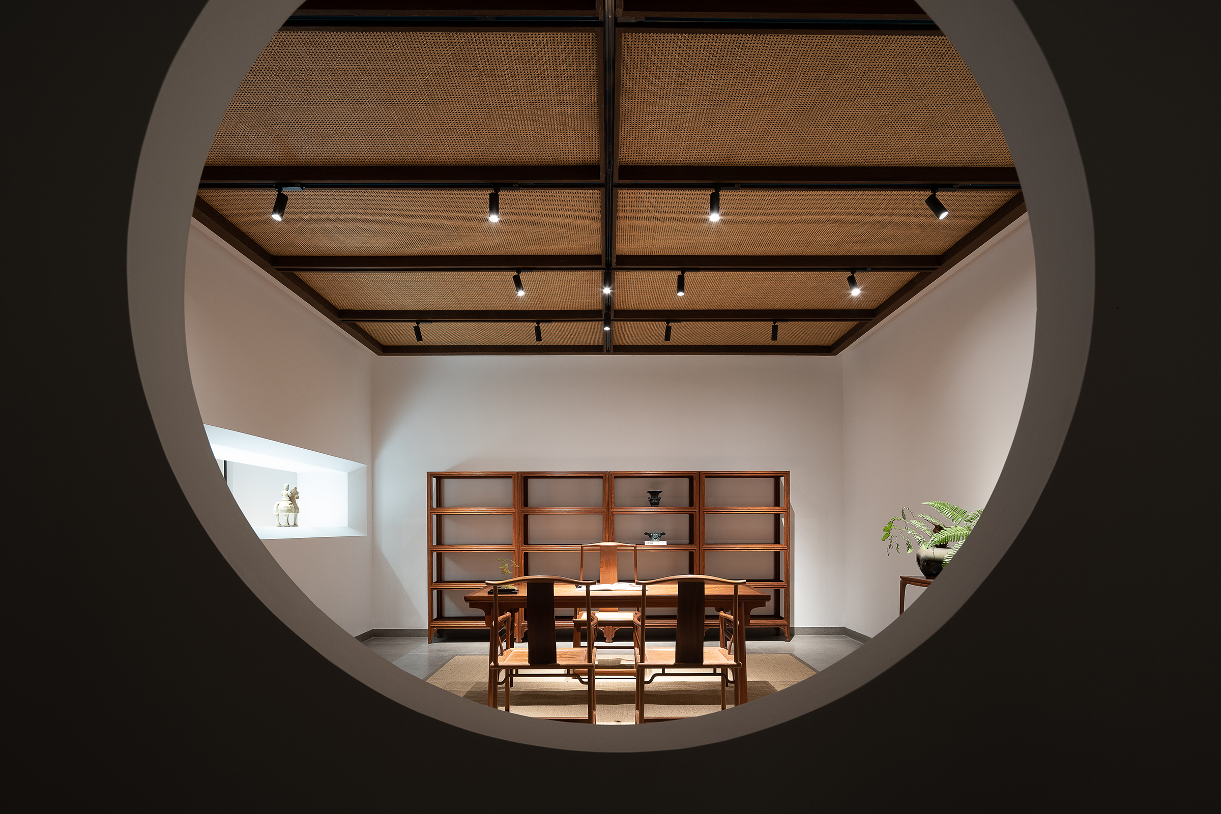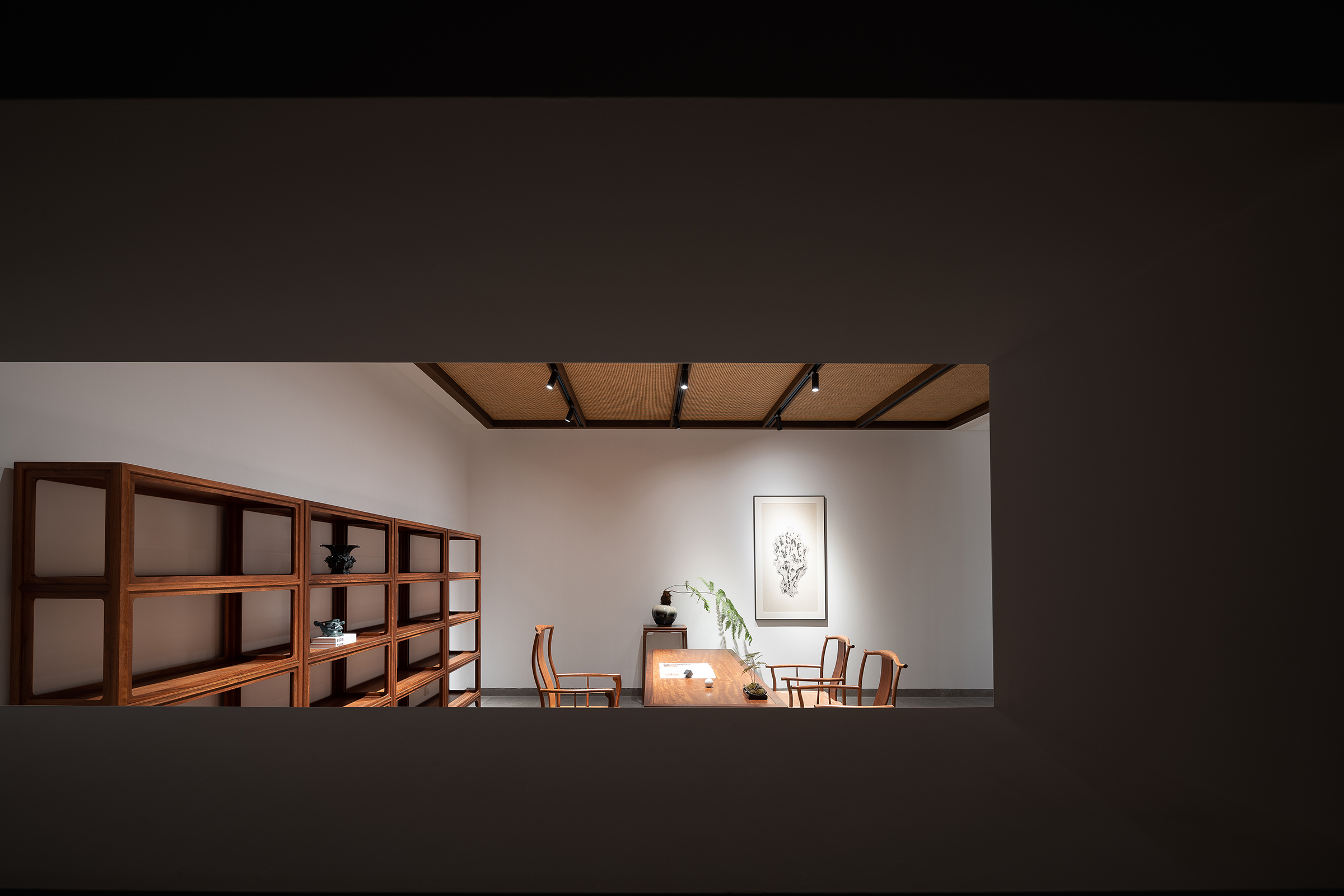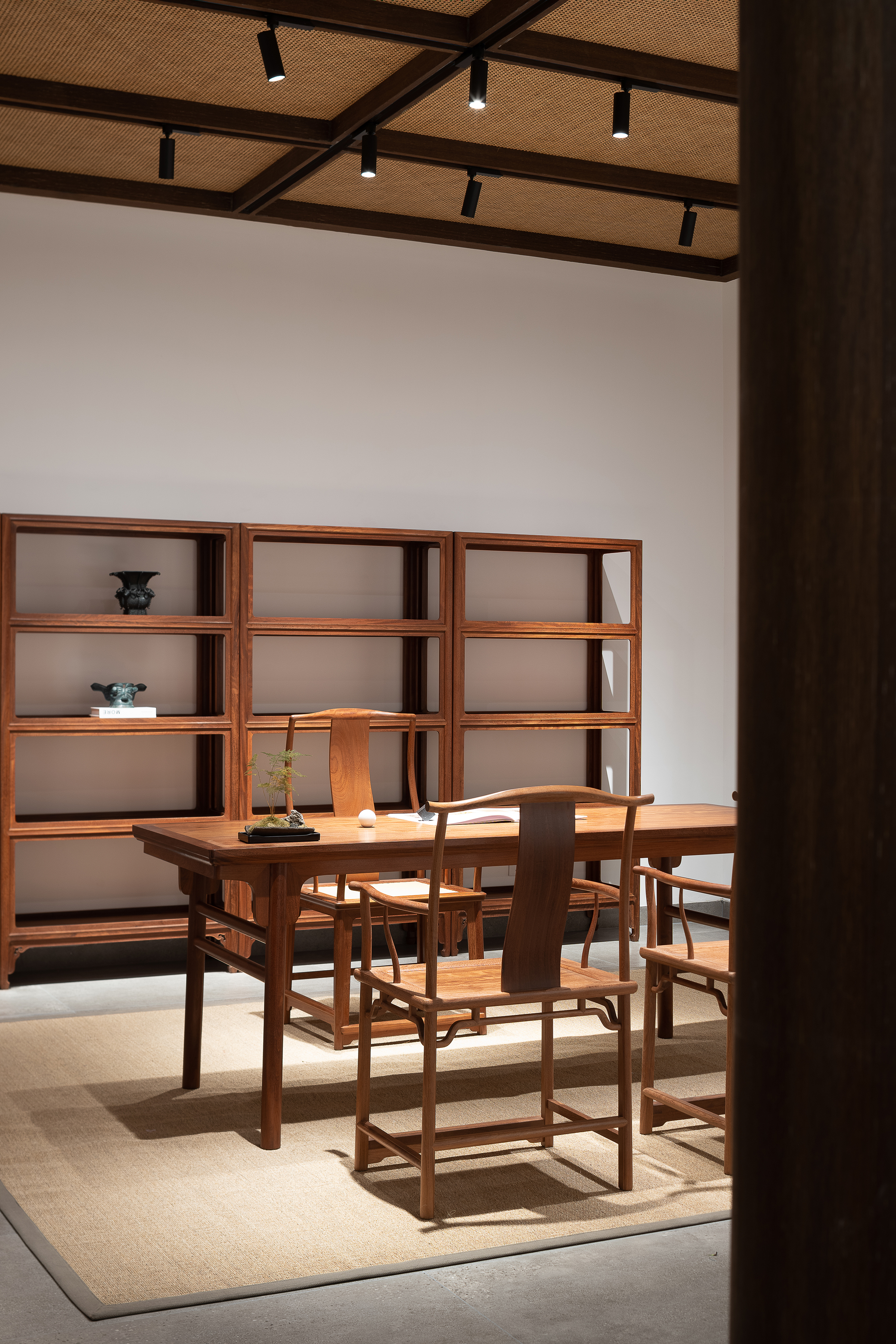 项目定位:这是一个苏作明式家具展厅空间。明式家具的结构源于建筑学的梁架结构,横者为梁,竖者为架,结构严谨,又因为有许多文人参与设计,极具意匠之美而被世人传颂。基于苏作红木的积淀,与新生潮流的交融和再定义探索。如何在空间内表达新与旧,传统与当代,是我们在设计之前所做的思考。