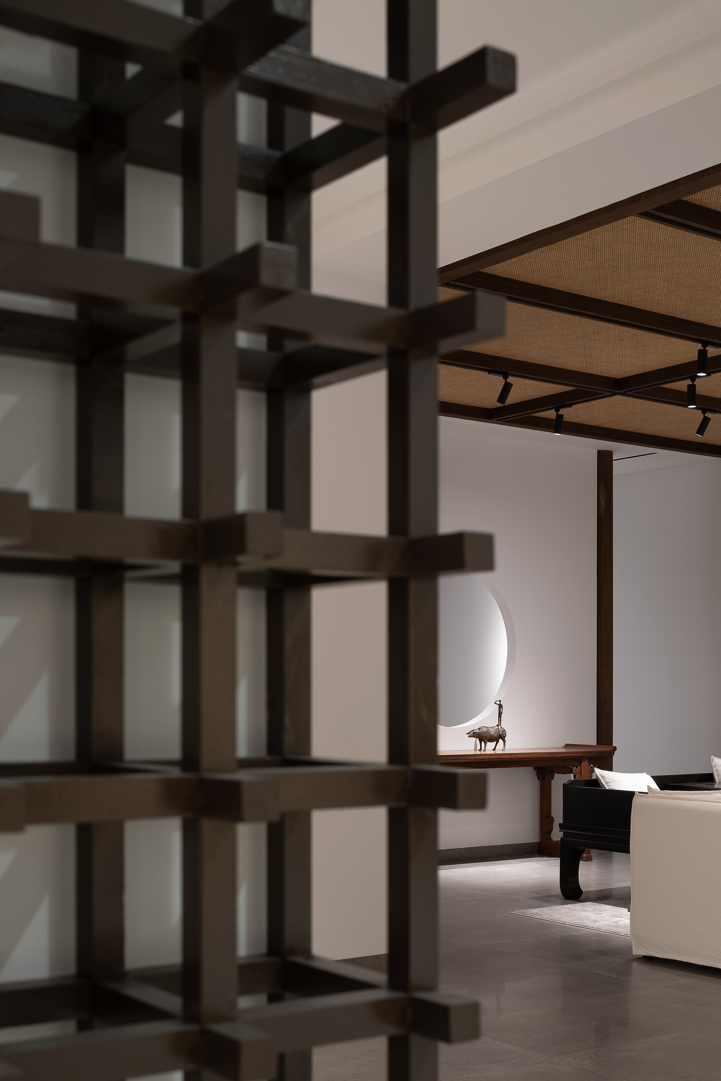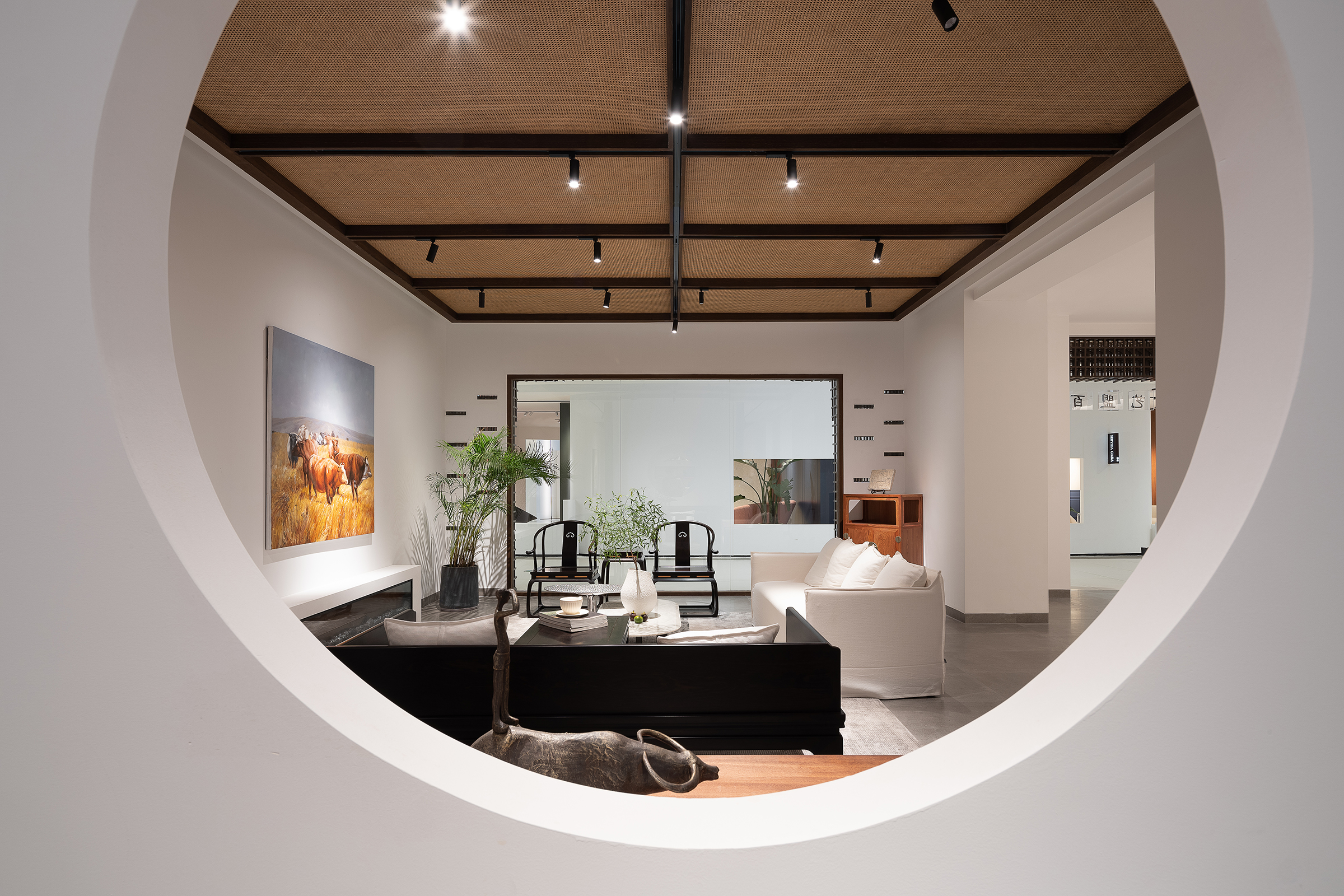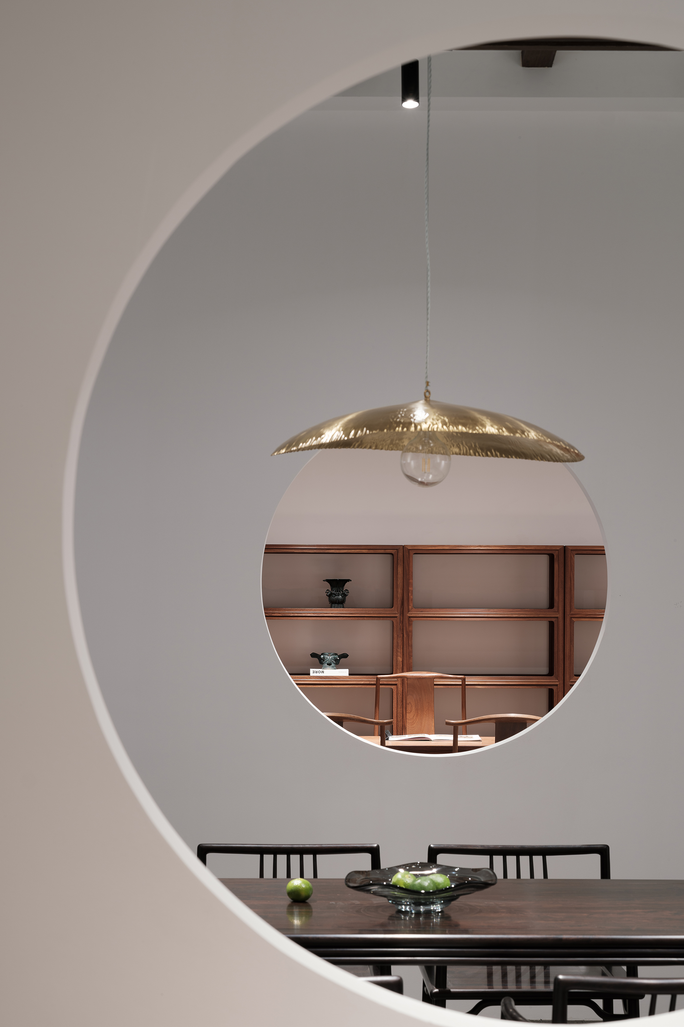 空间意境:设计由这一理念出发,将苏作工艺的传统美学,方与圆的东方元素,写入空间装置,与当代材质和表现手法,实现传统美学和现代审美的共存。