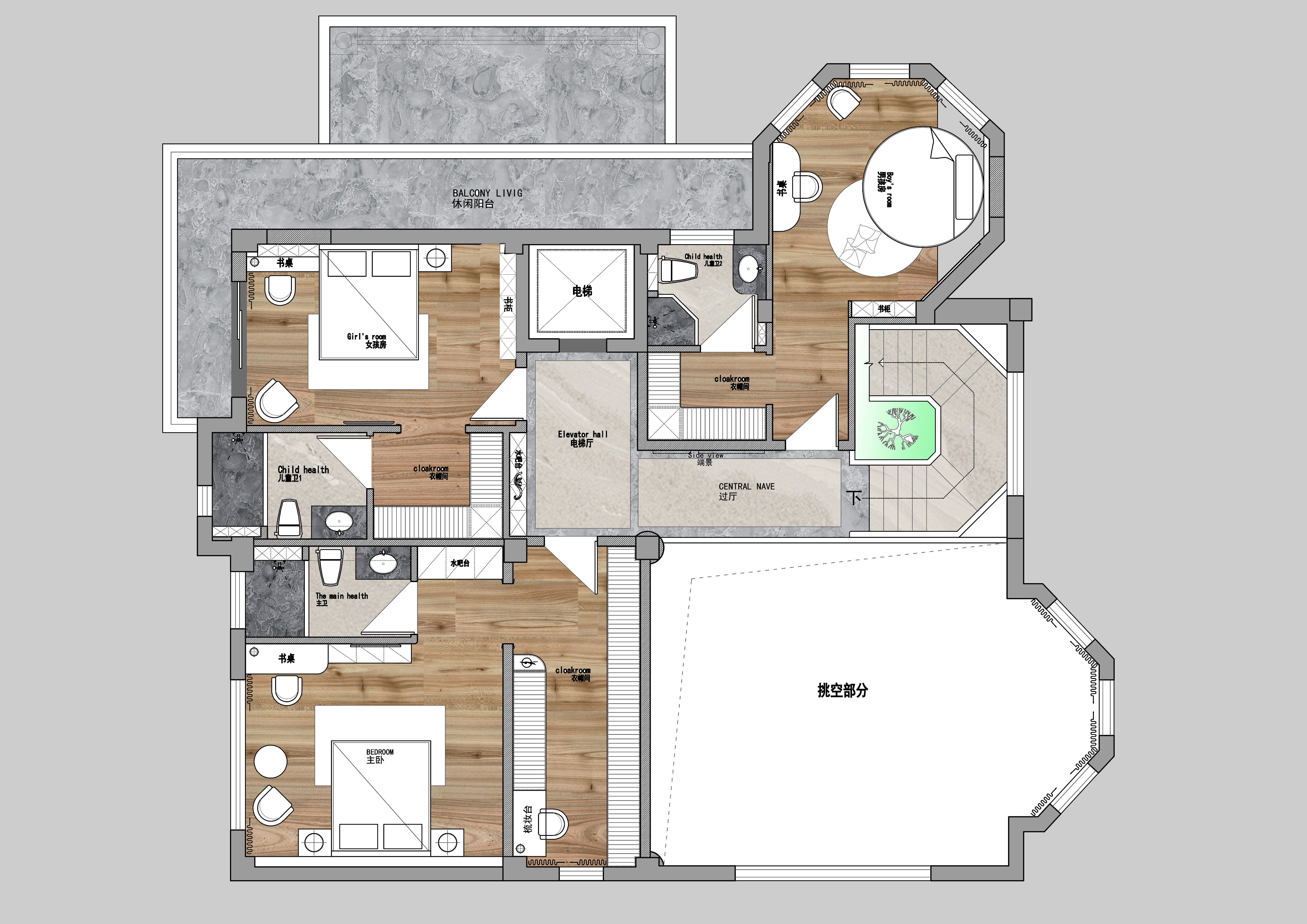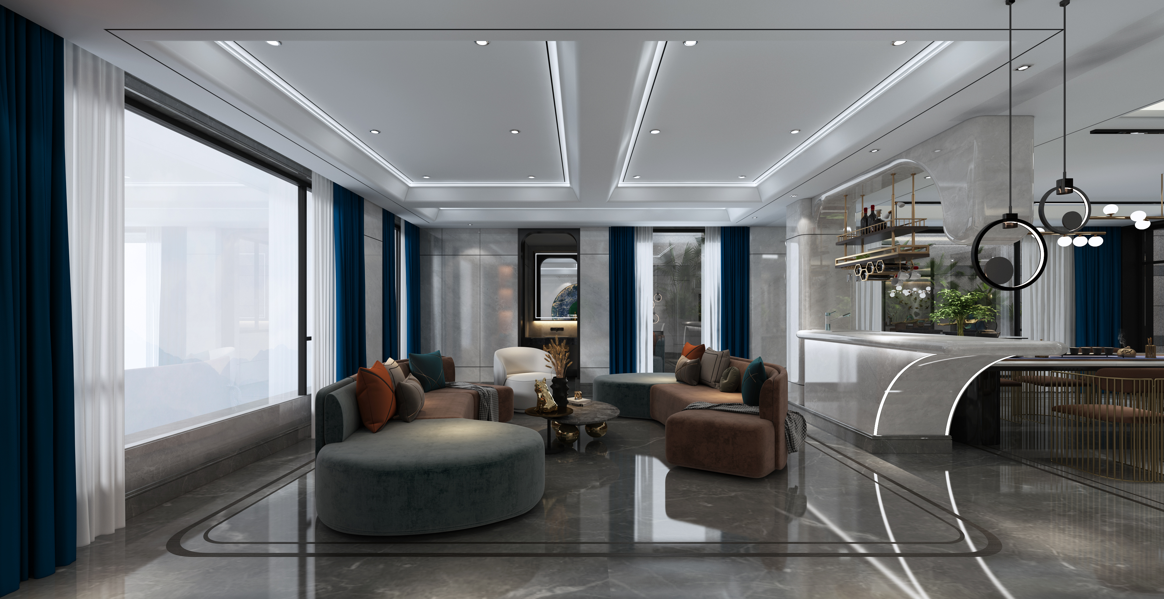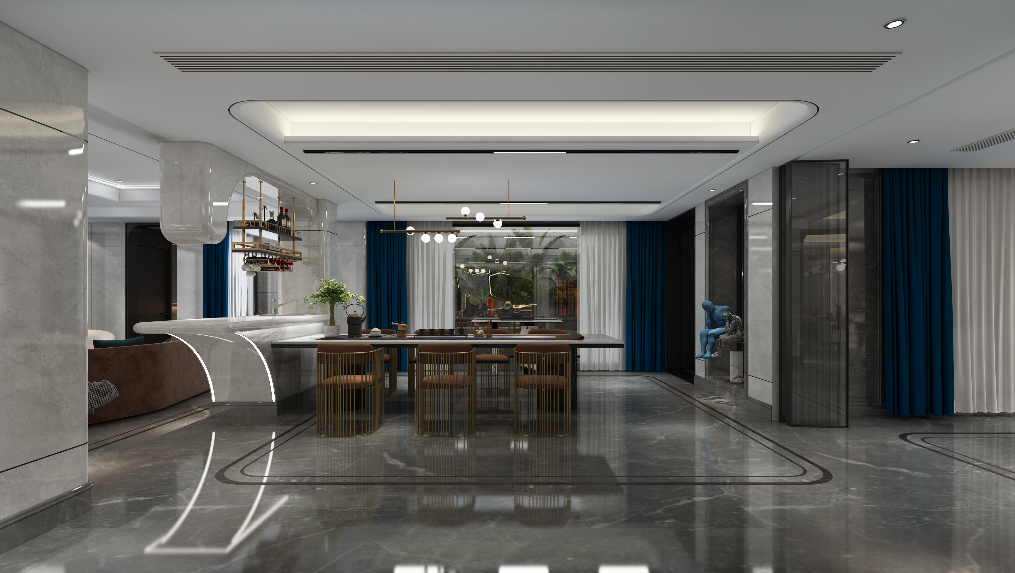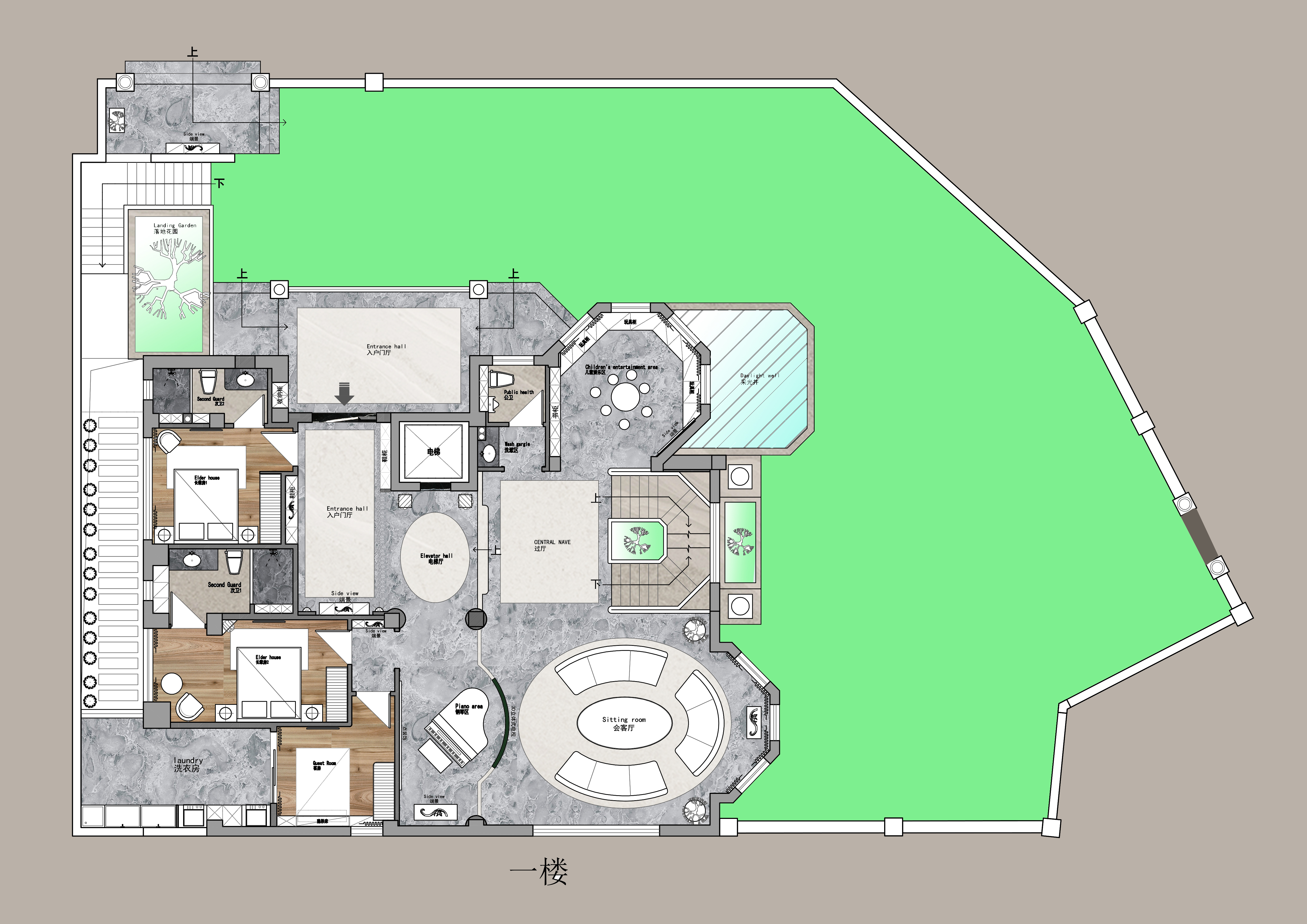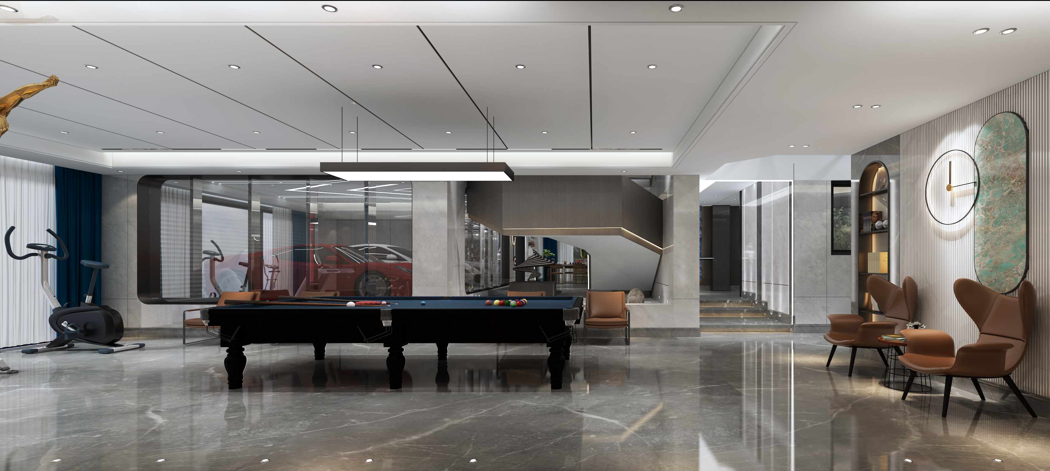 空间布局:对外空间整体在负一楼,做到动静完全分离,主人区和会客区的区分