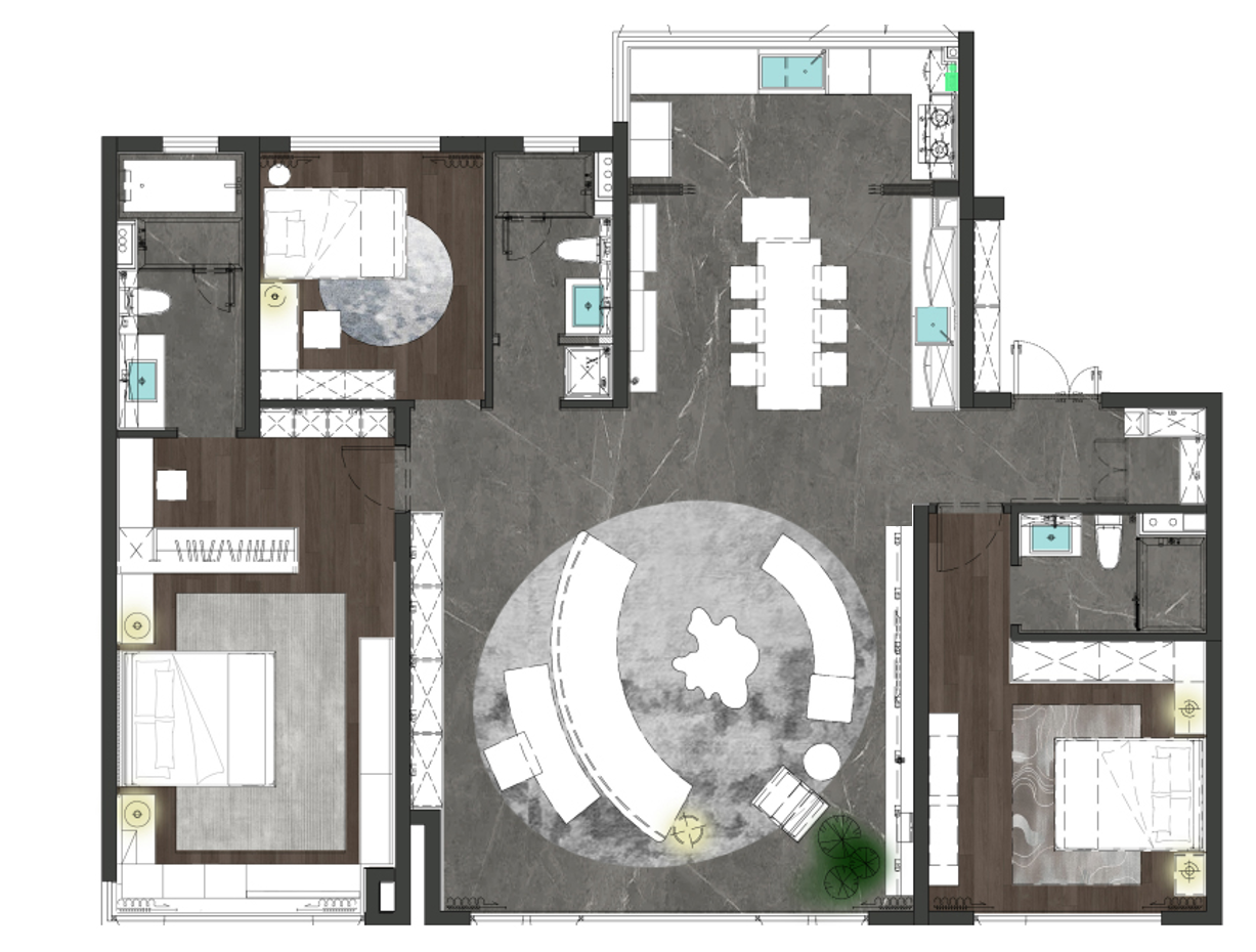 空间意境:新奢,是当下社会精英对世界认知的转变,体现的是价值观表现和审美水平的整体提升,是经历过繁华之后回归生活本质的需求。不浮夸、不做作,感受到的是一种很自由,很舒服的状态,找到从心而发的物质舒适和精神舒适。