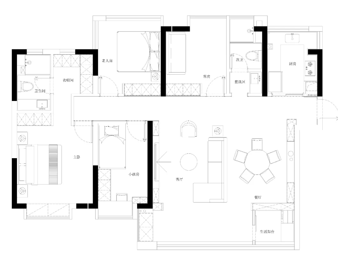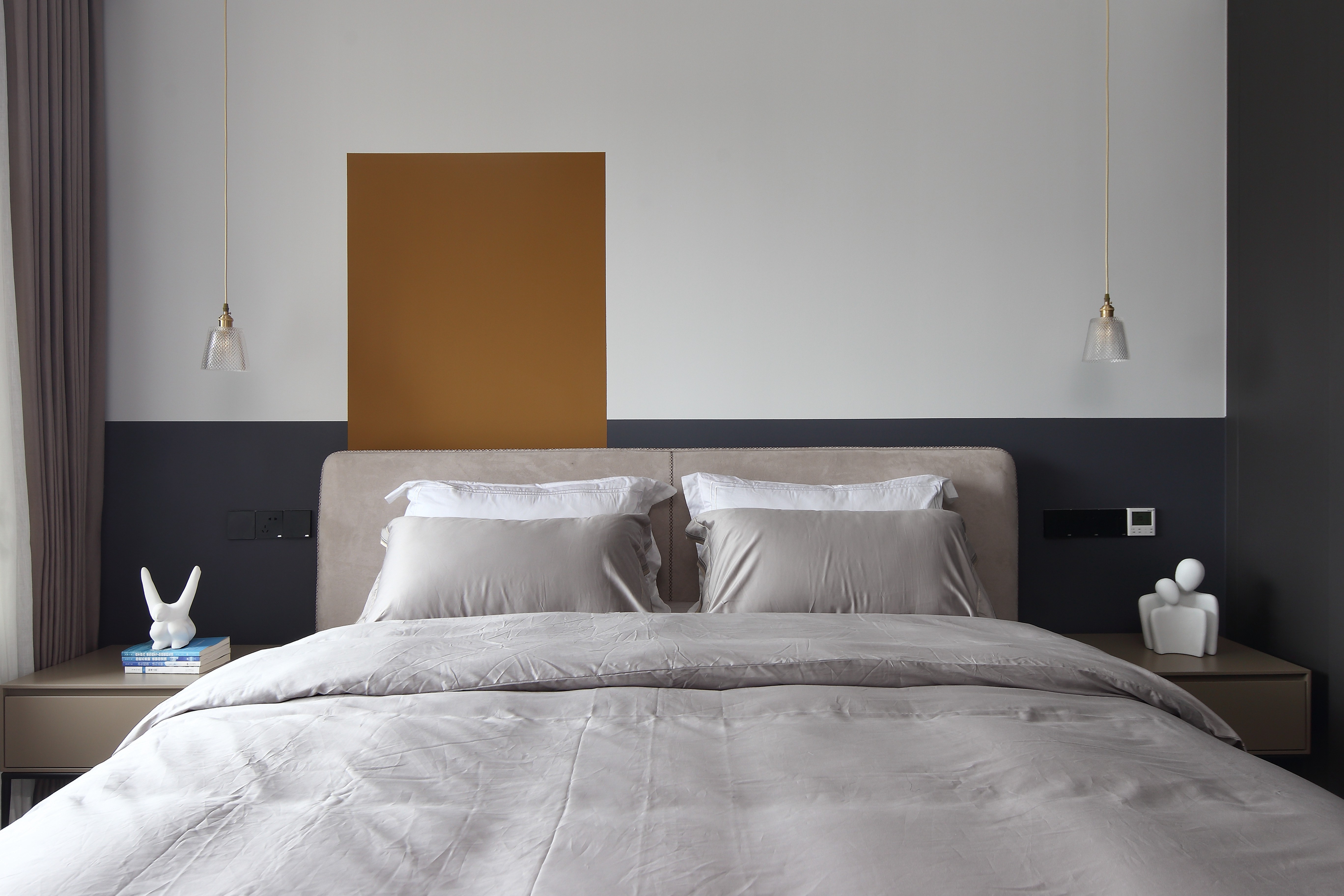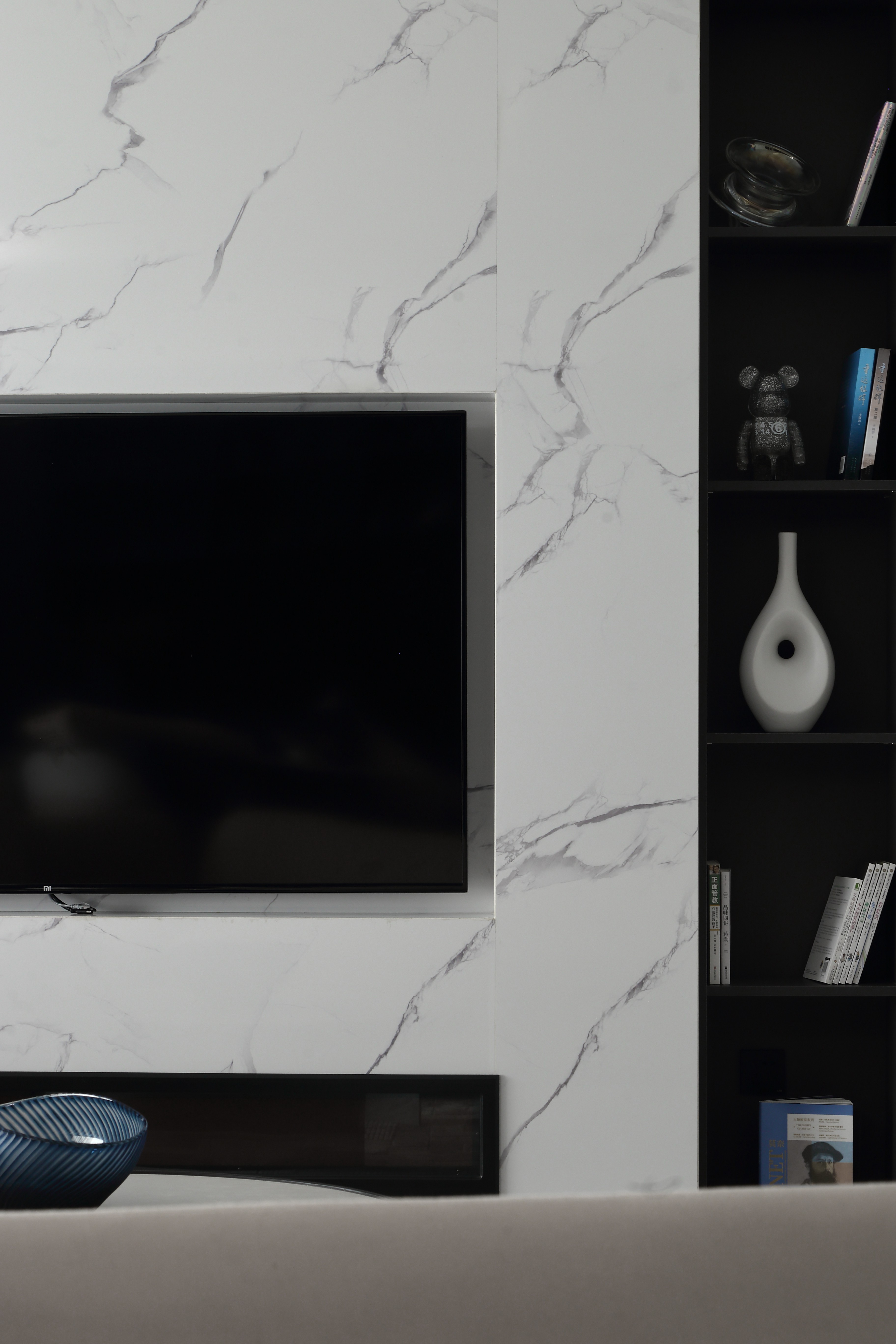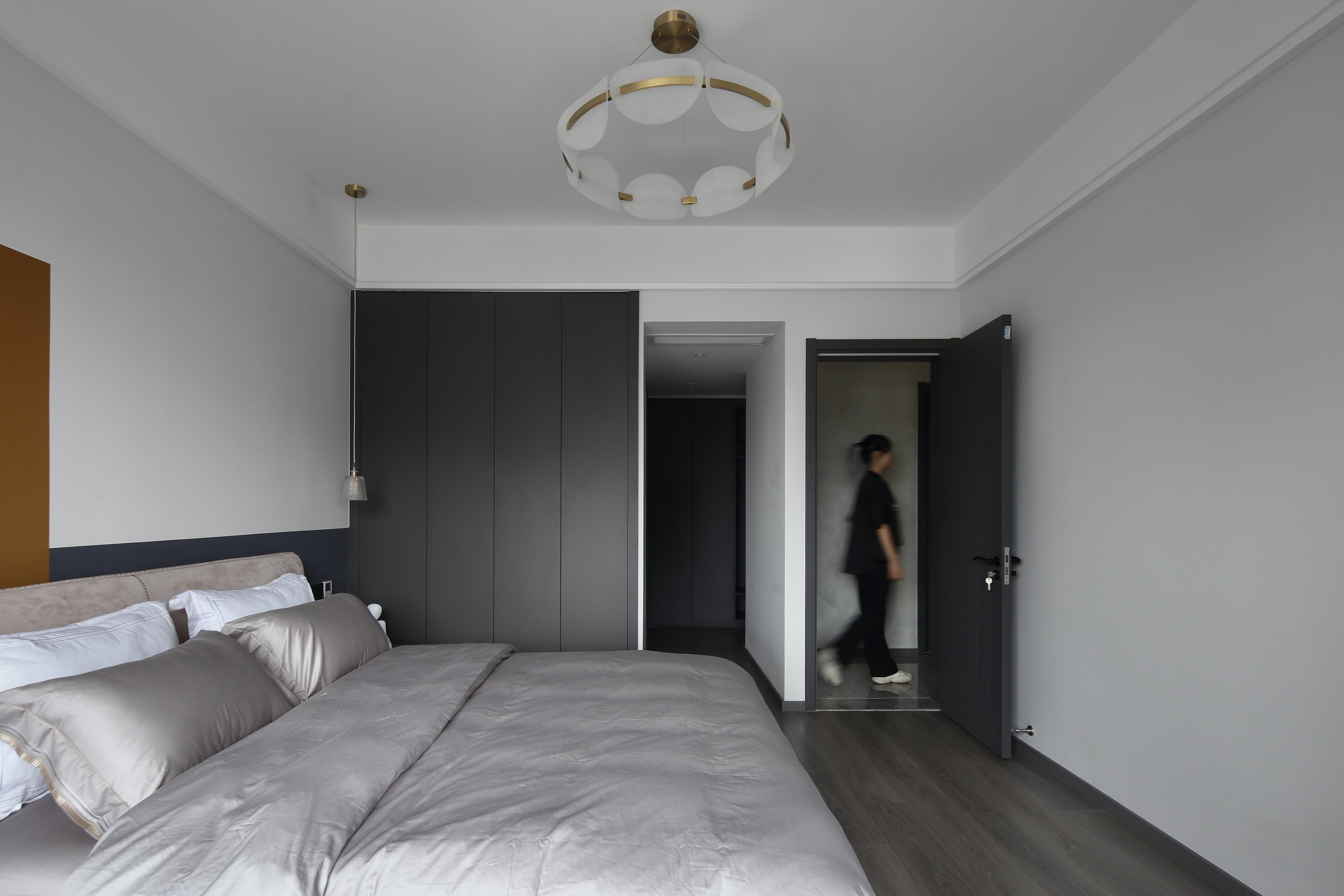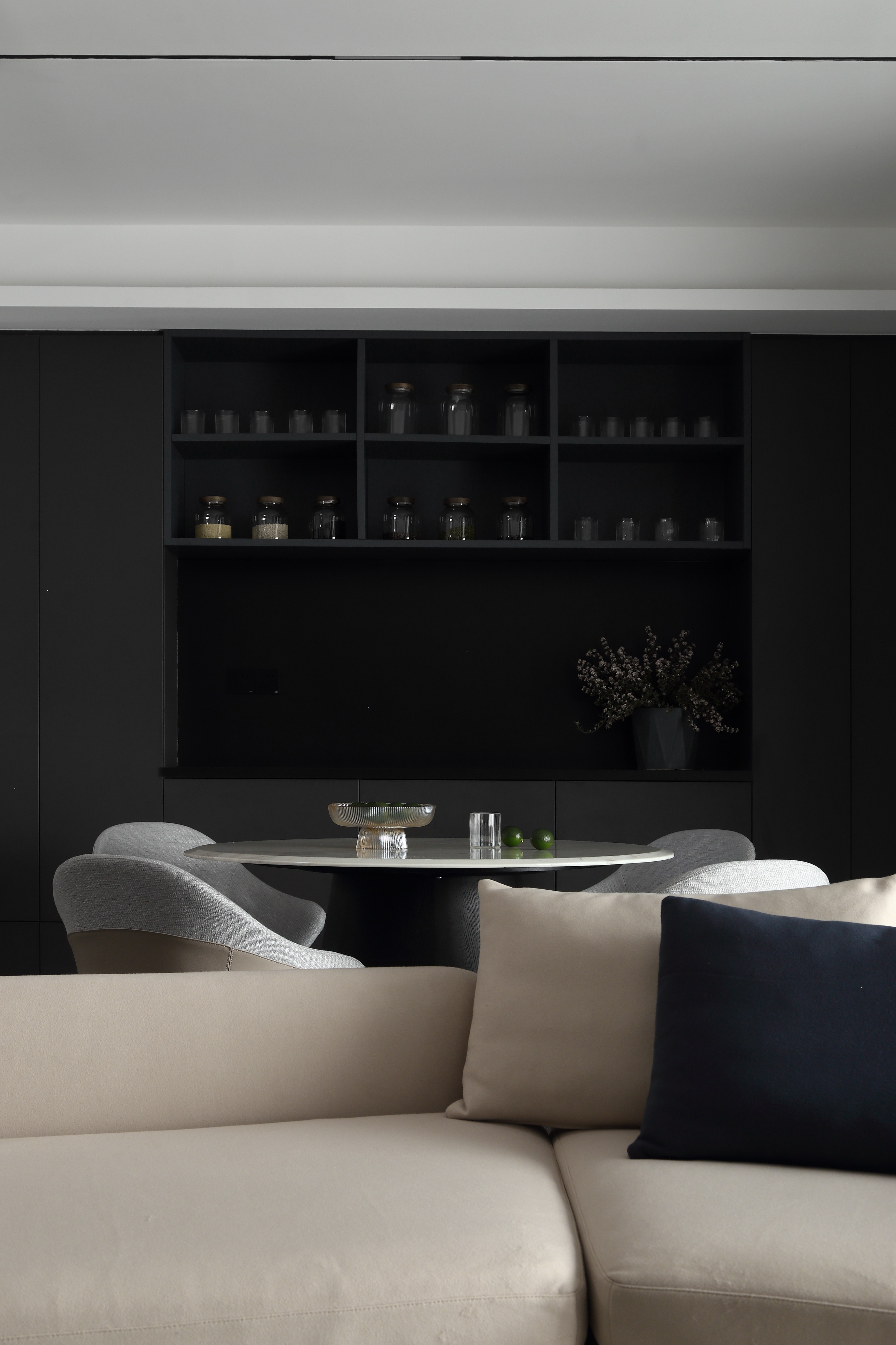 空间意境:黑白灰基调增添一抹蓝,在理性中孕育温情