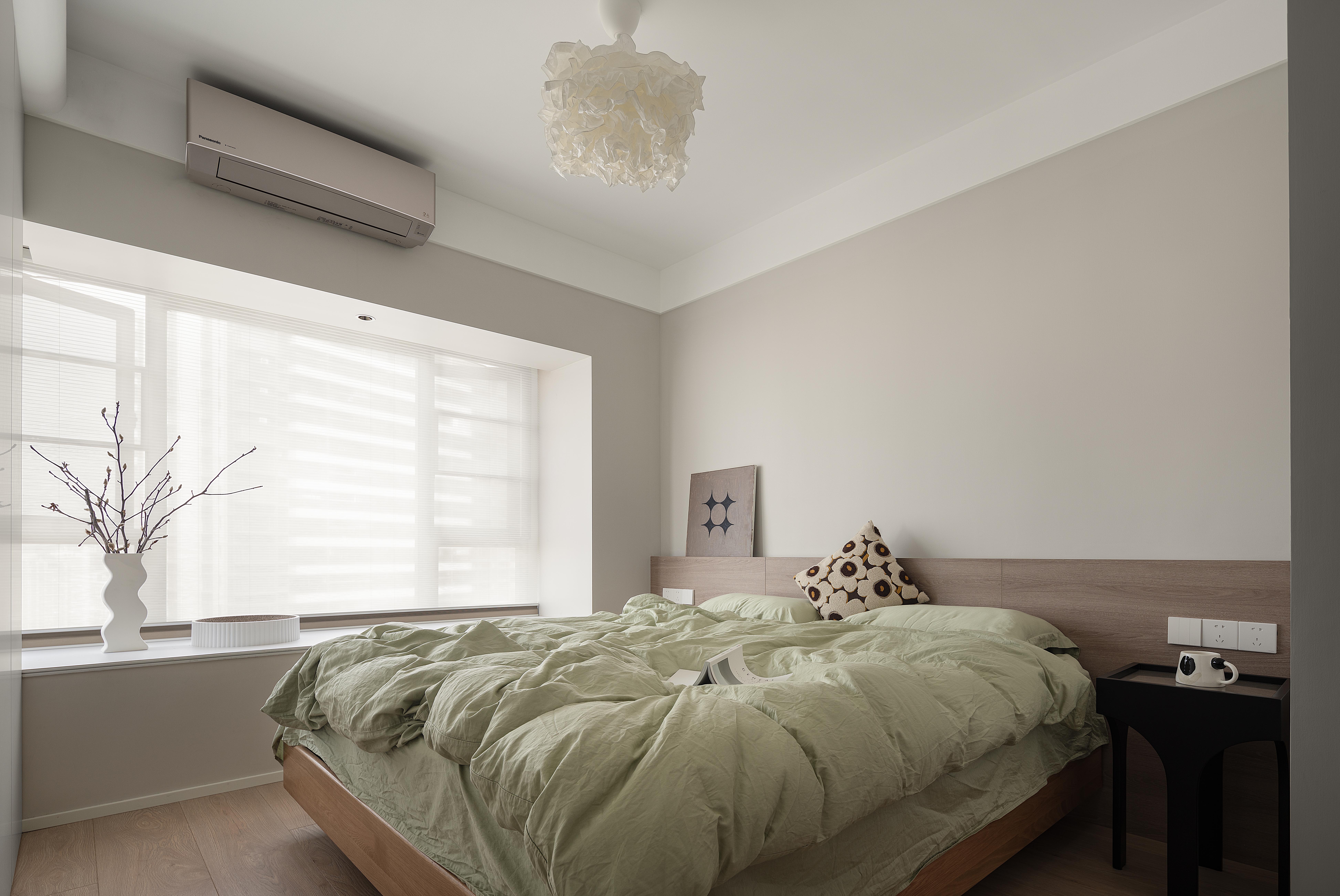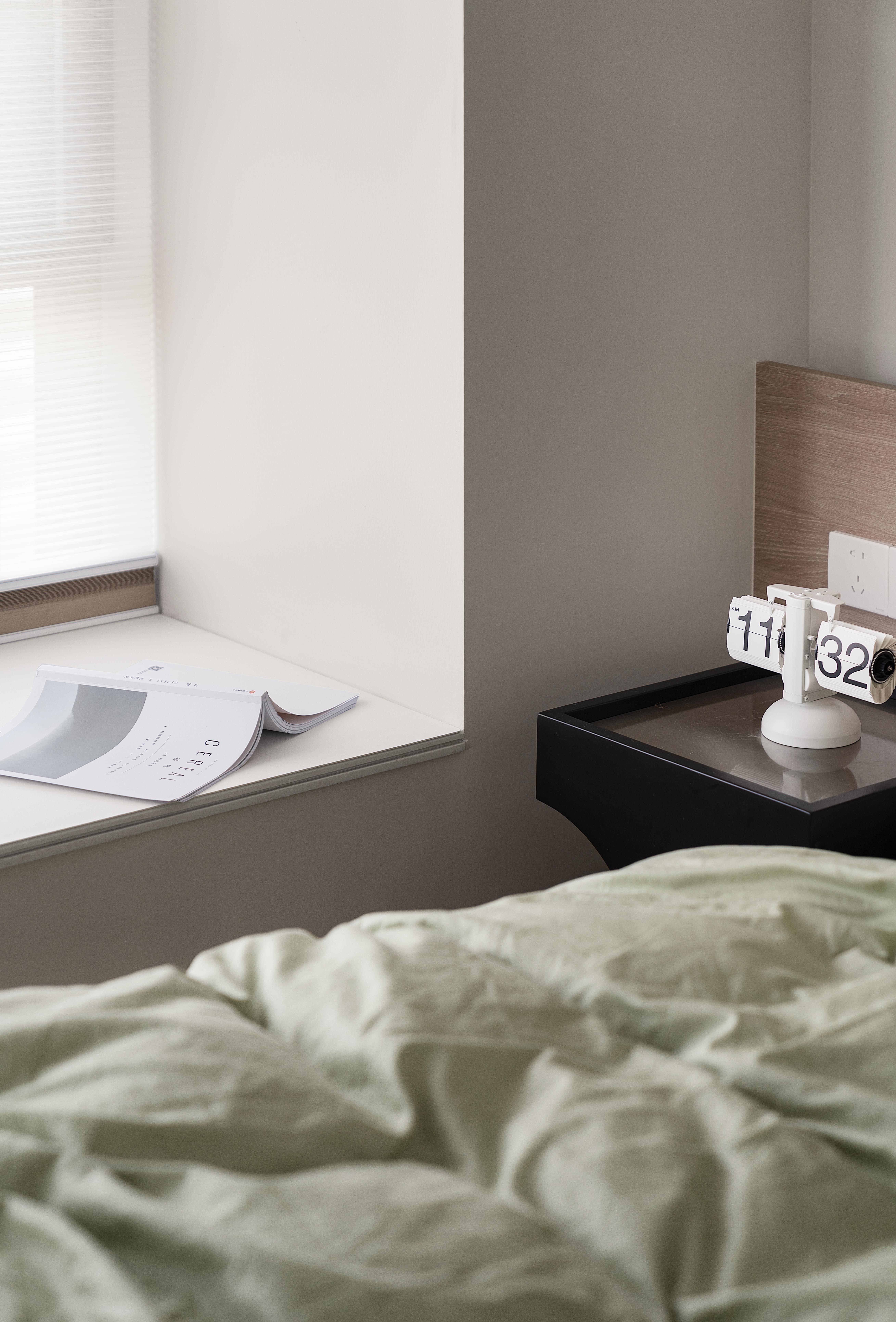 木地板半墙铺贴,代替传统床靠背,为卧室留出更多自由活动空间。大尺幅木板,让空间变得感性而温暖,最大限度地让居住者得享自然与人文意趣。