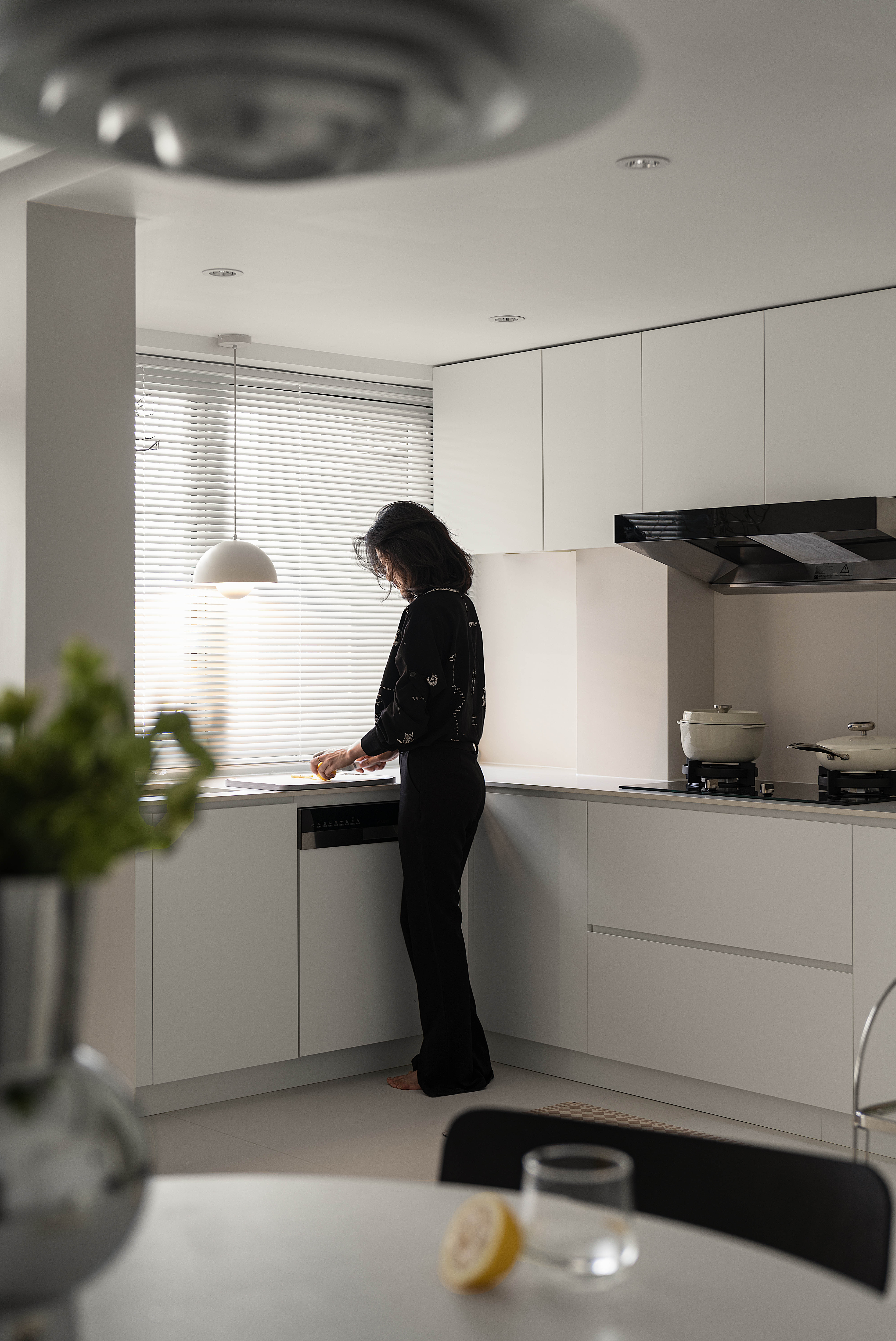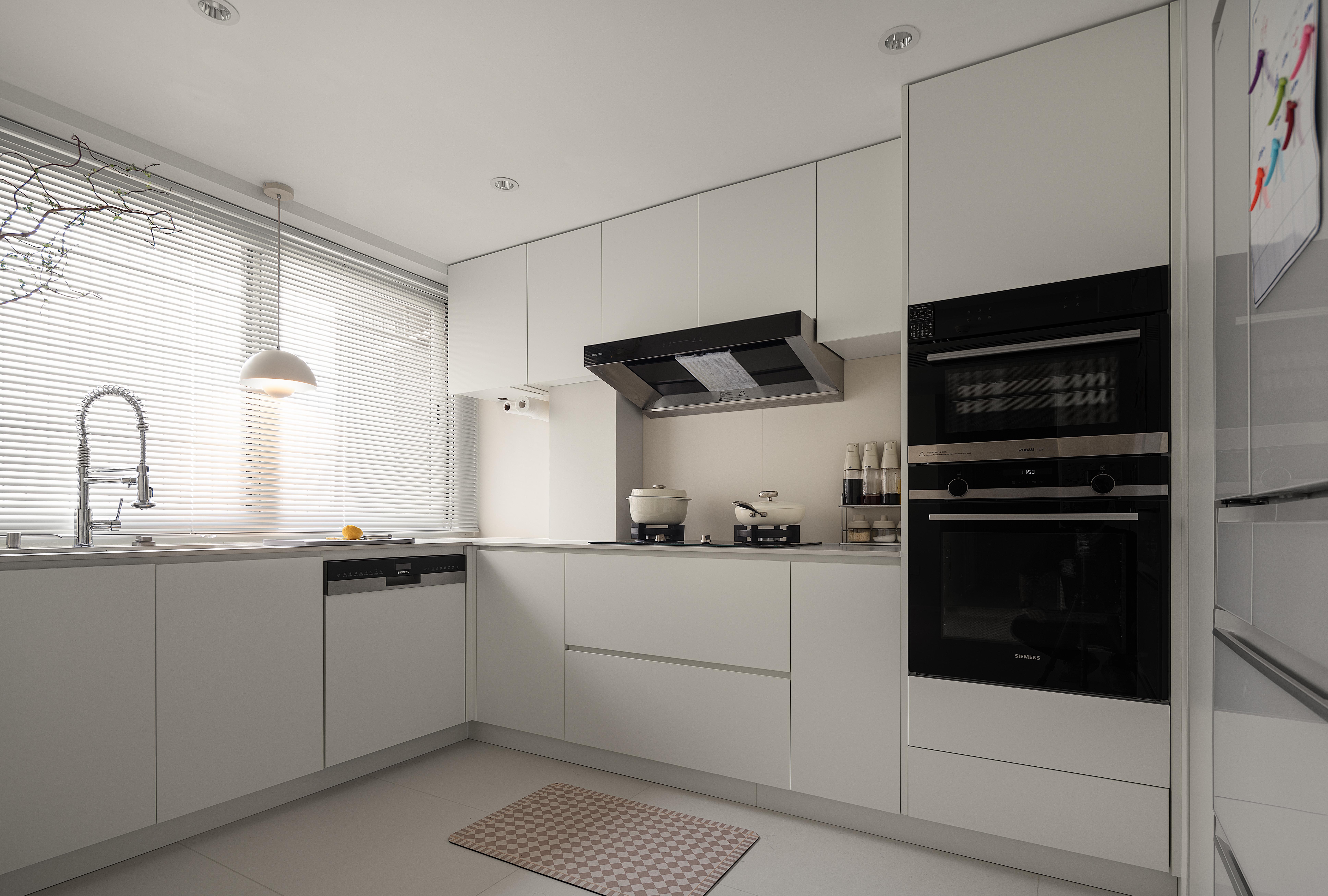 厨房墙体拆改,做开放式设计,拓展空间视野,烹饪就餐动线更加简短。L形厨房,合理规划出洗菜烹饪区,制作美食,一气呵成。
