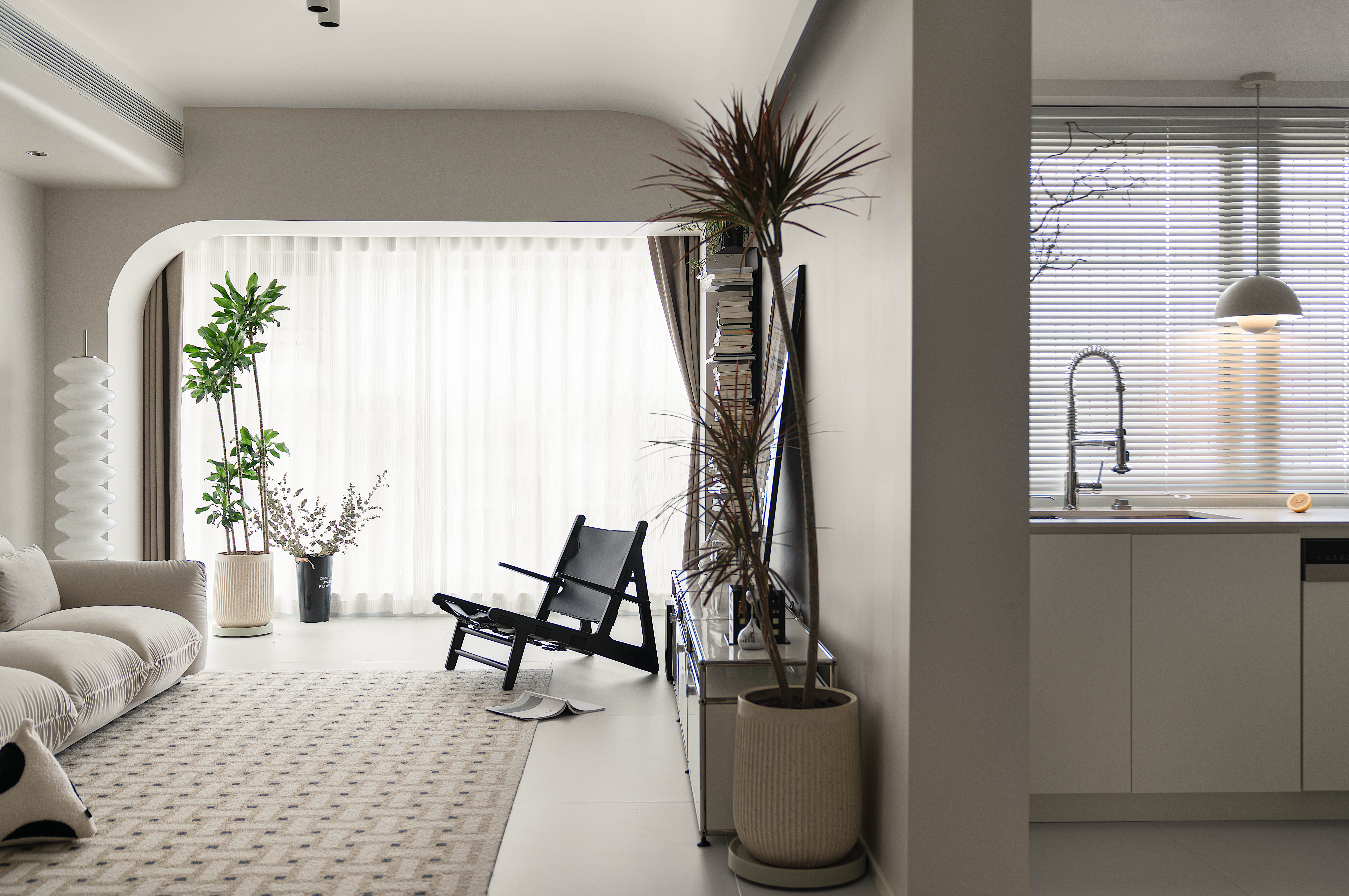 阳台纳入客厅,大面积自然光进入客厅,空间产生联动、对话,形成视野渗透。