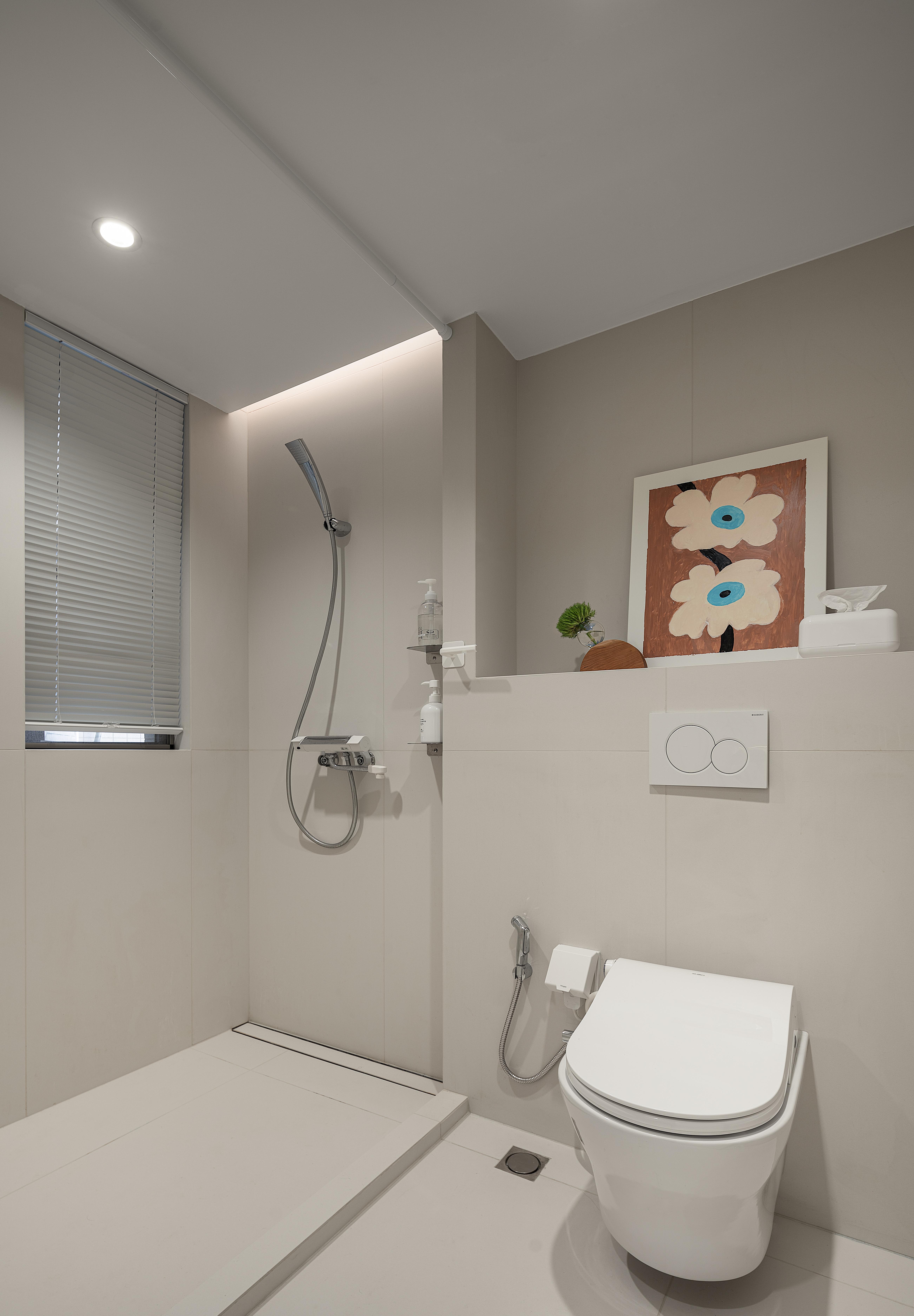 两房合并,打造宽绰的卫浴空间。将洗衣机融入卫生间,空间功能共享,实现功能的最大化发挥。