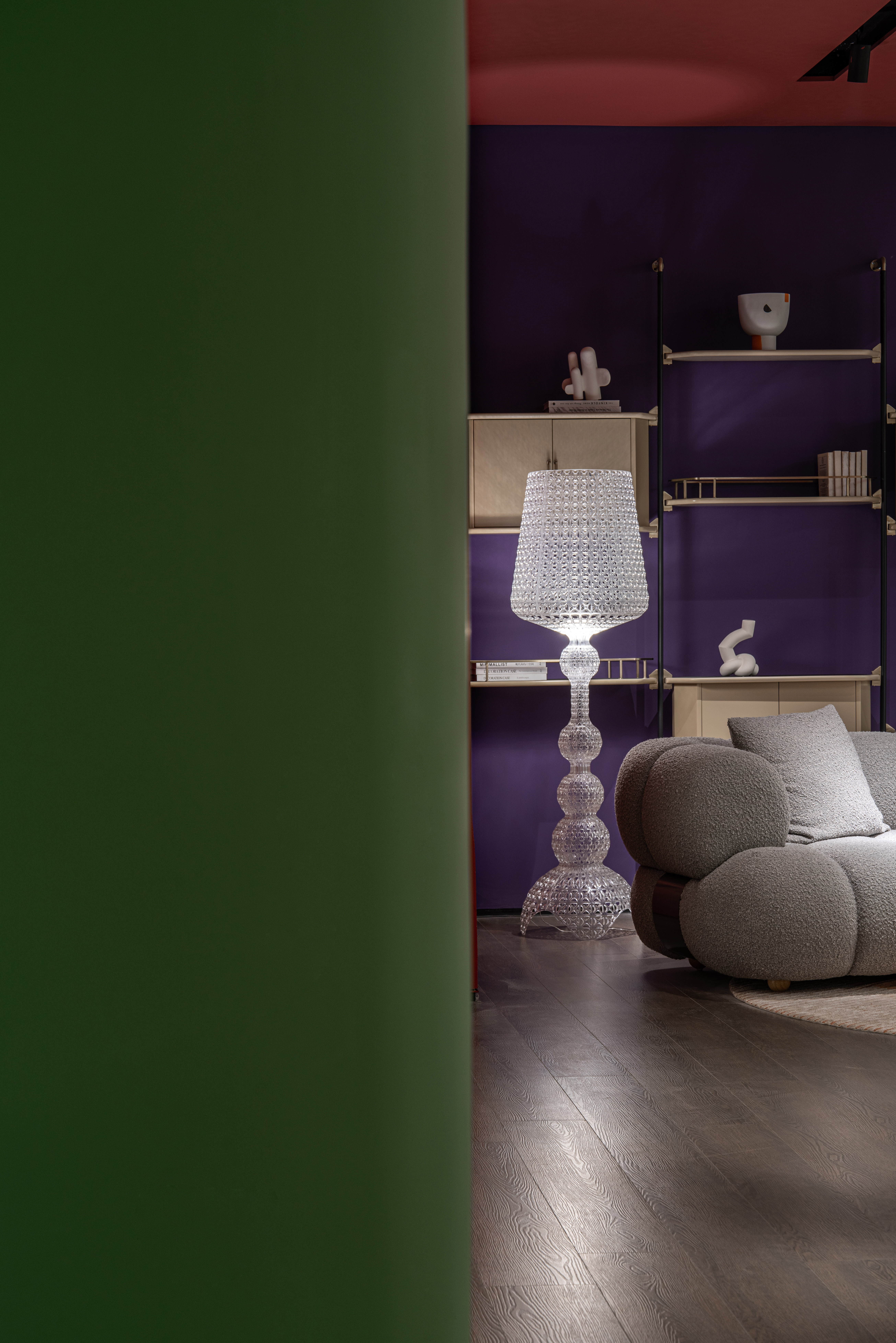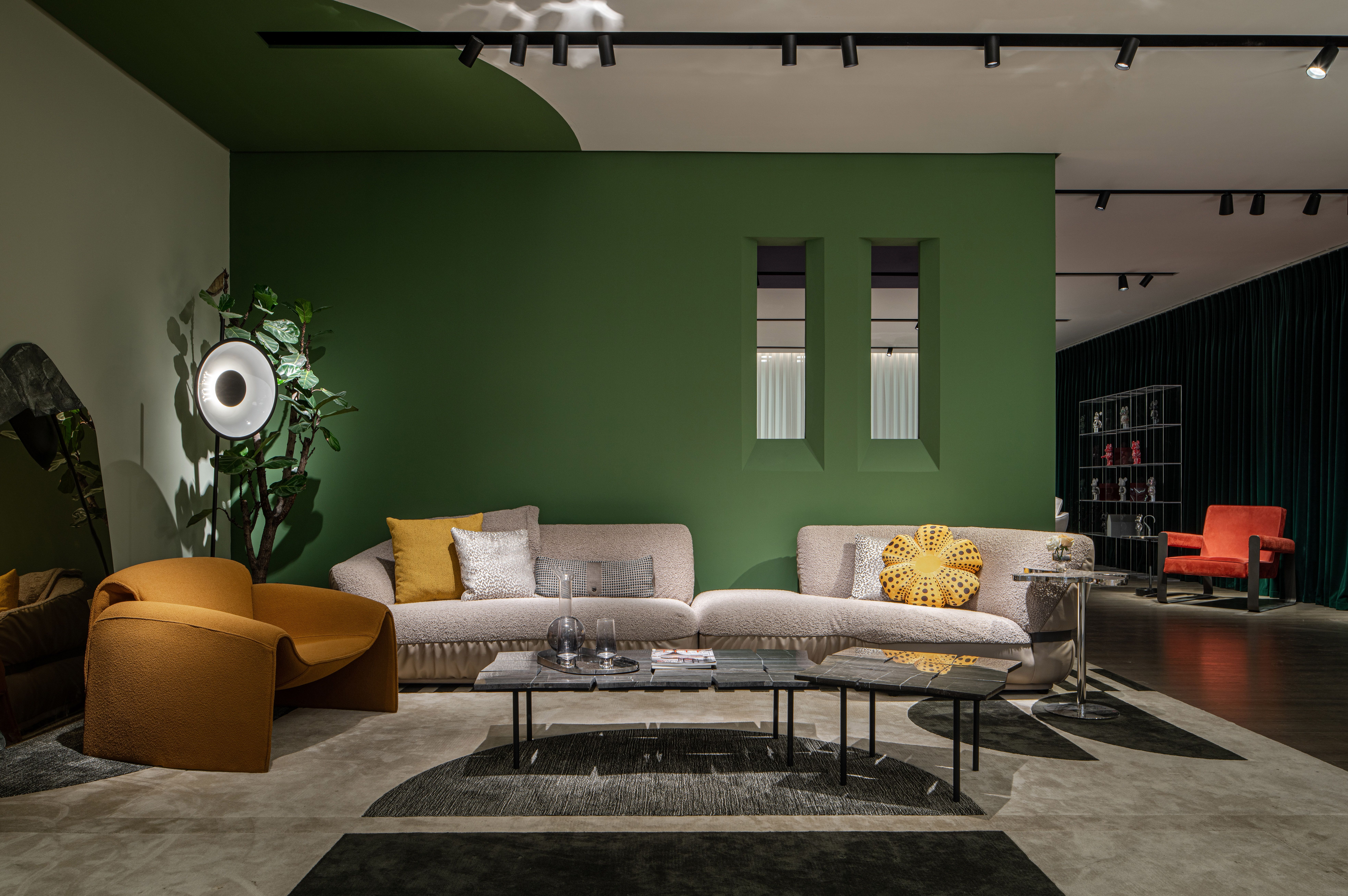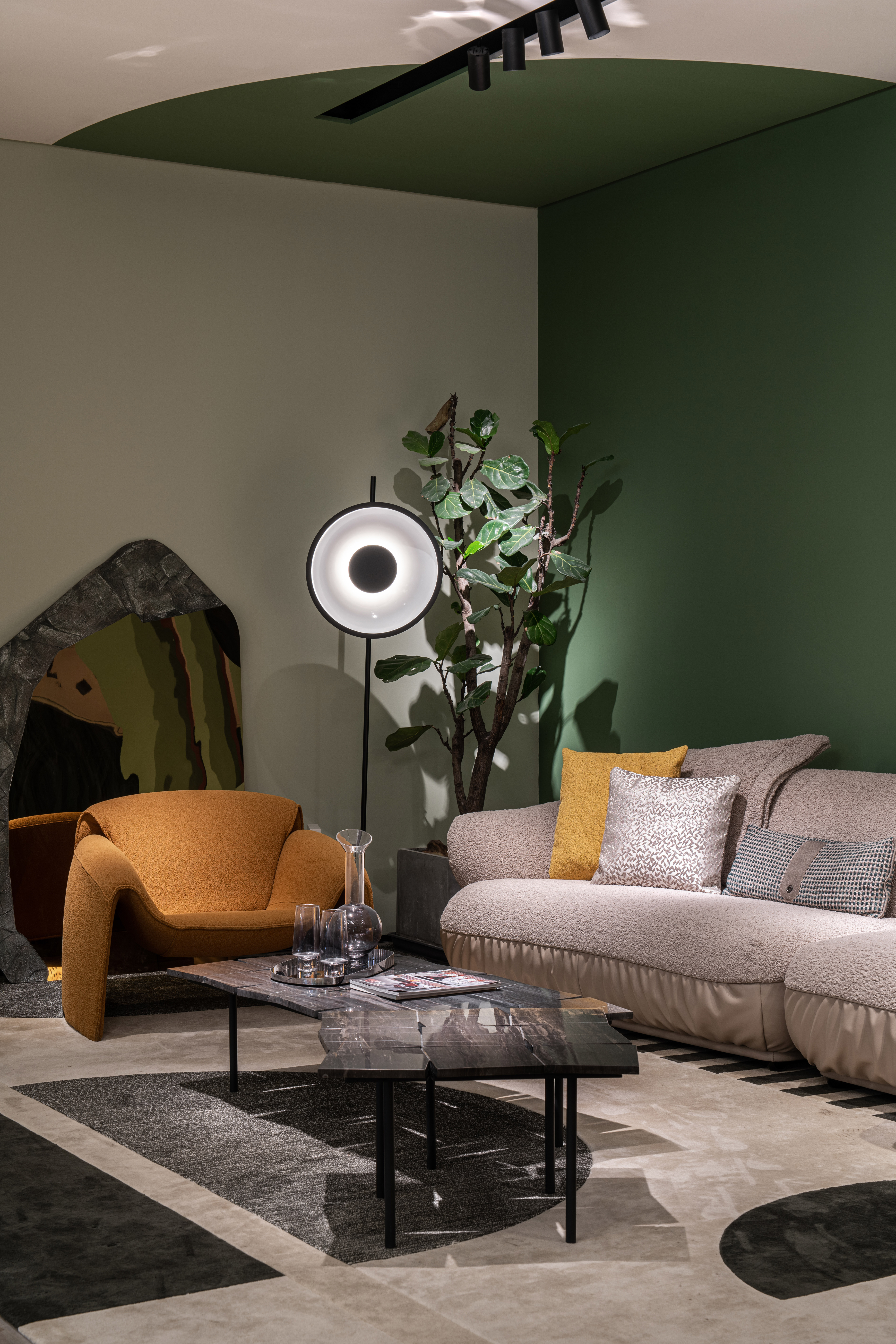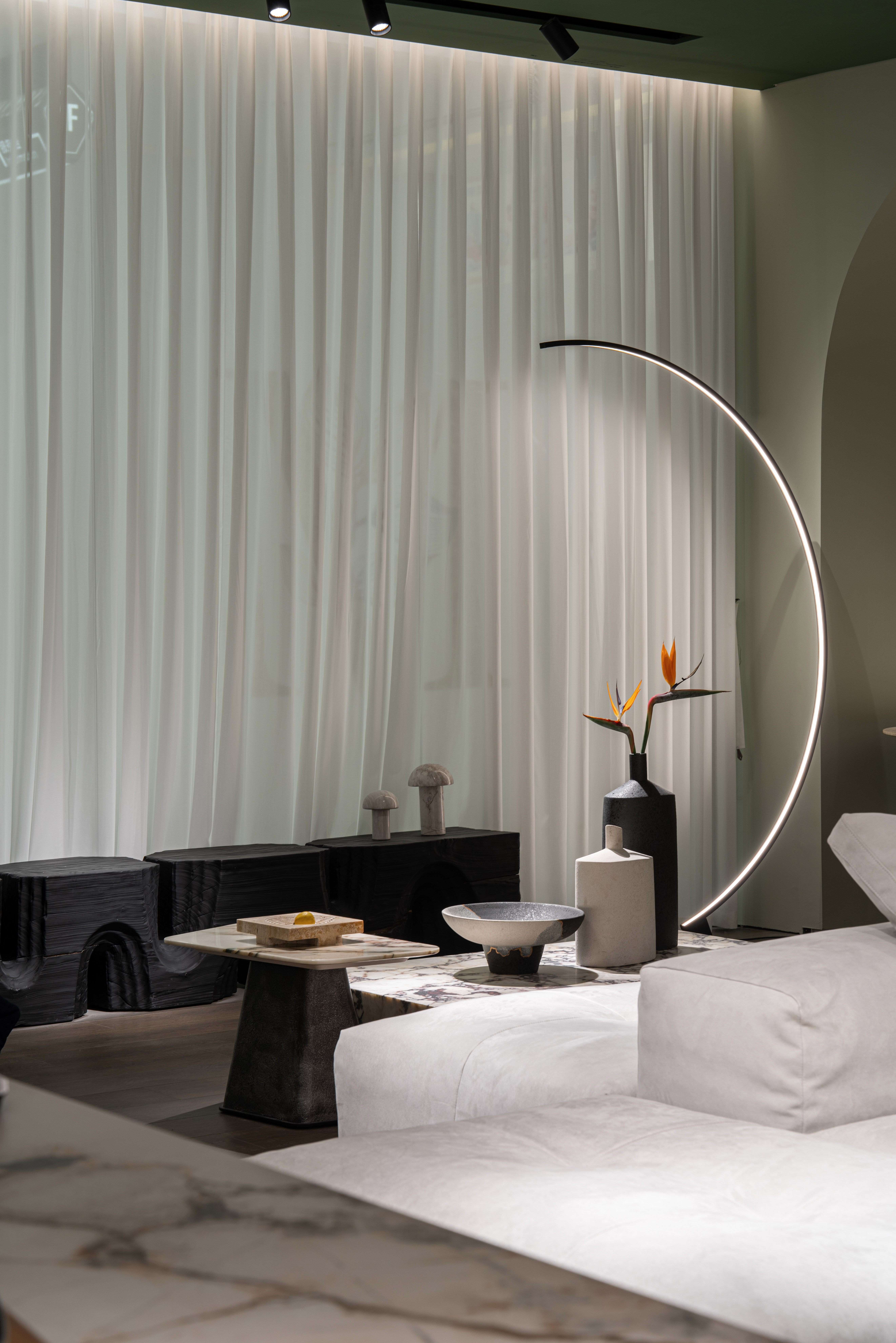 竹青秘境这一空间,绿色系的宁静清新自然,给人平静安稳的心理暗示,放置现代年轻化或者诧寂风自然系的软装家居产品,治愈人心的同时,也给消费者营造出舒适的场景。