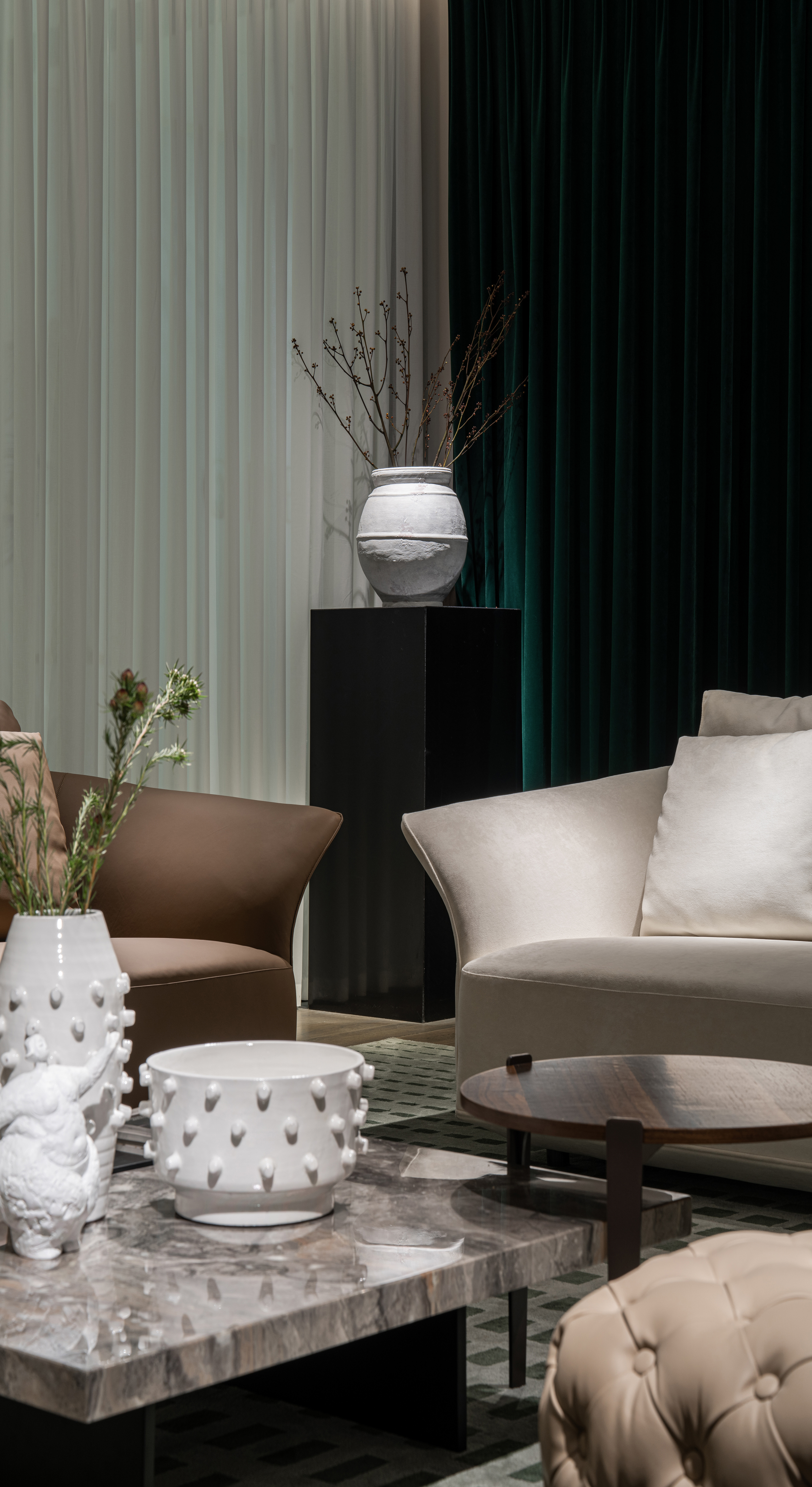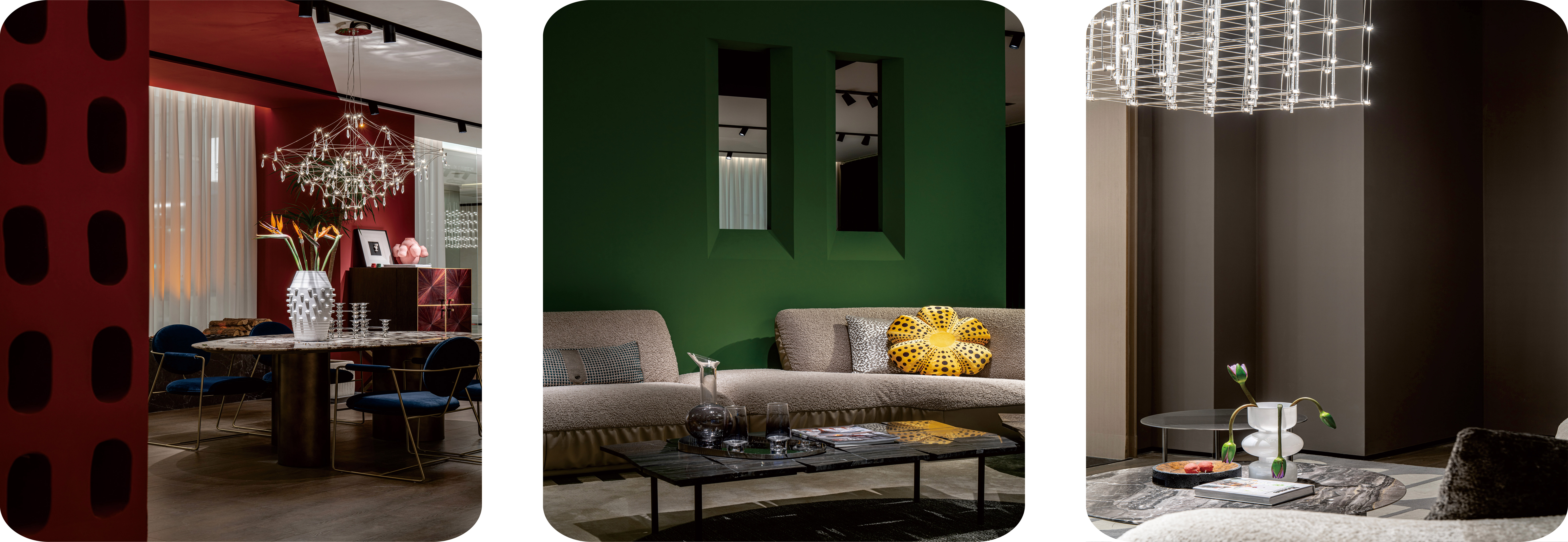 作为一个家居集合店,家居产品的内容包含了无数的风格品类,而我们需要把空间进行梳理,让每件家居产品都是一个角色,在特定的空间展现不同的面,沙发,餐桌,茶几,餐椅,地毯,吊灯,落地灯,花瓶......物件本身都是经过家居设计师无数次精心设计和调整,得到的最美的产品比列的效果,而我们需要做的,是让它们存在的空间足以支持每个不同的家居在其中展示展现,营造出不同的场景效果。