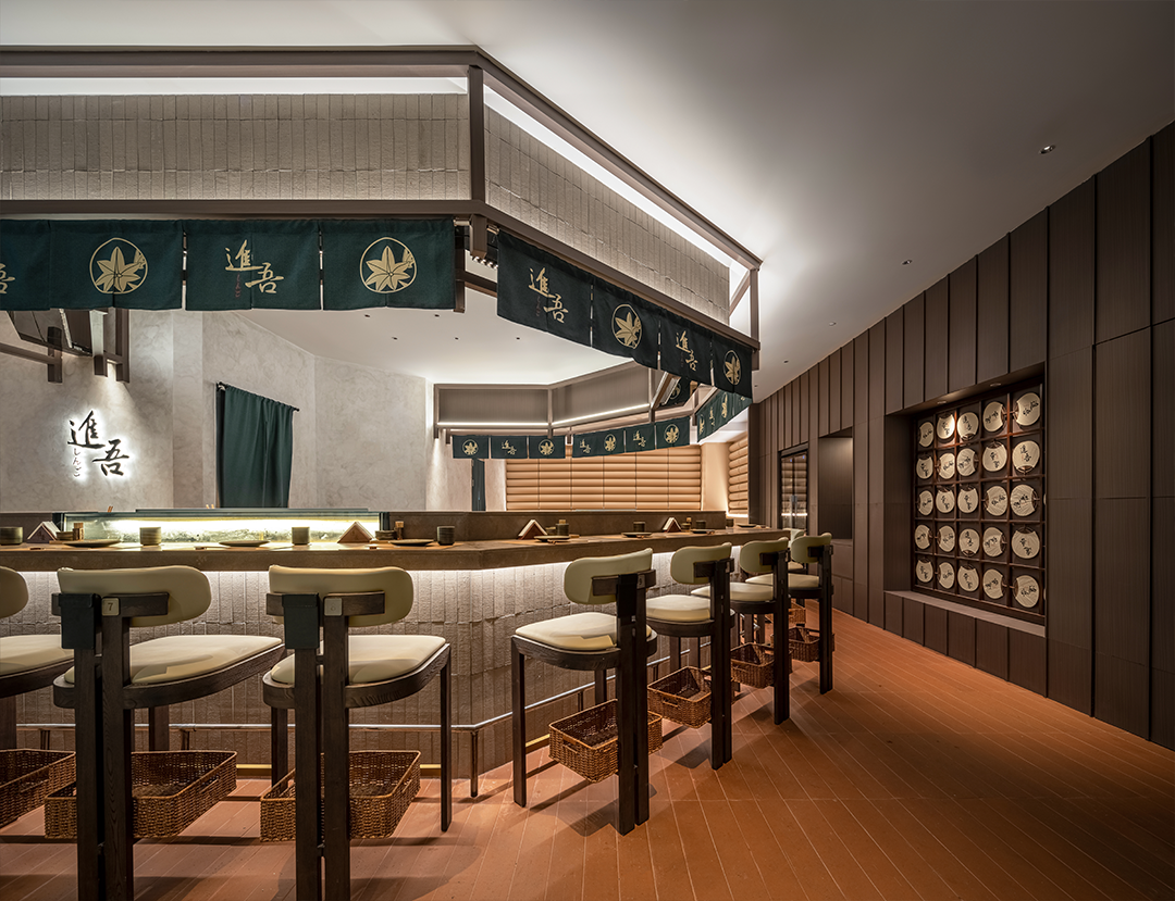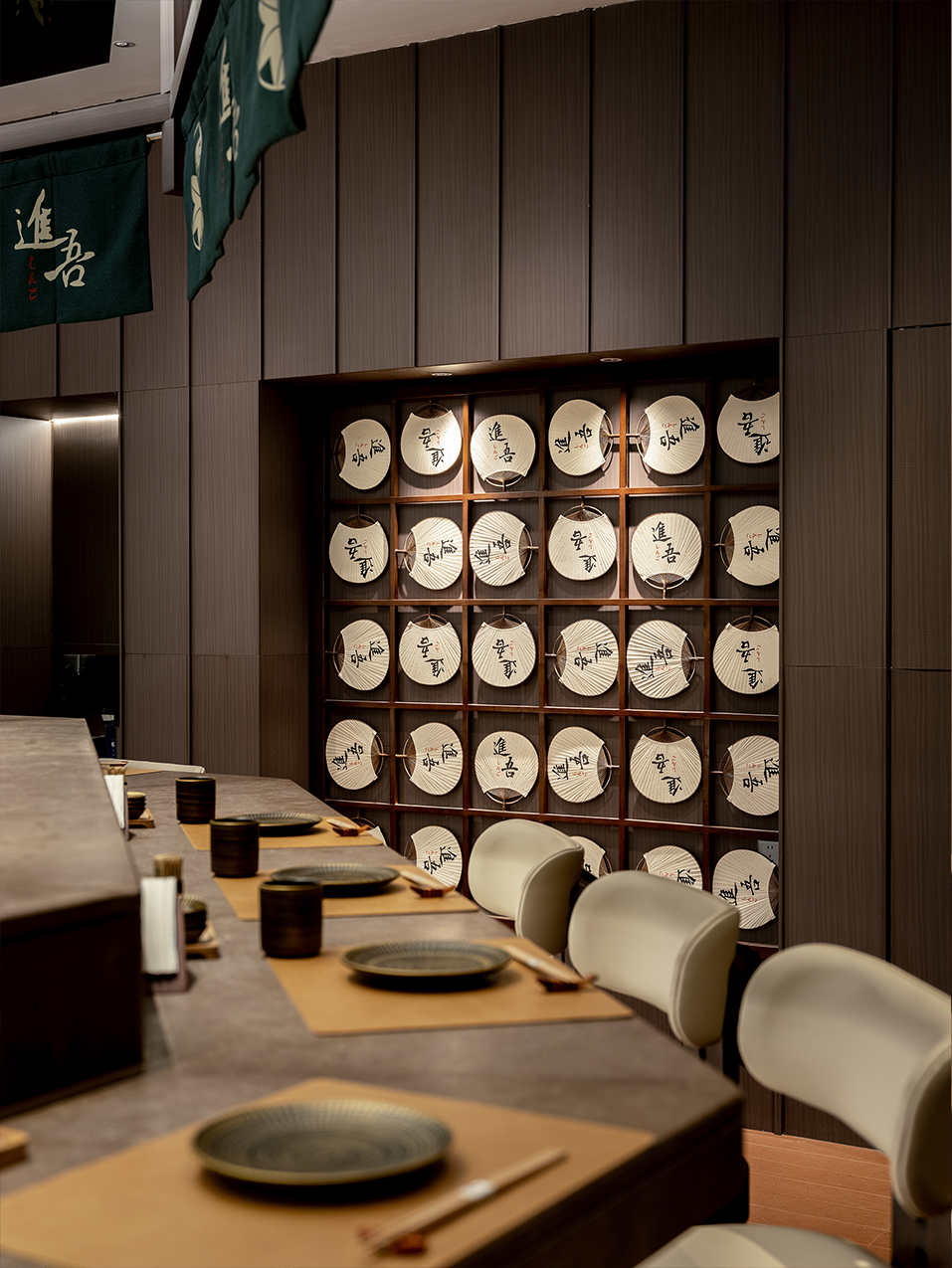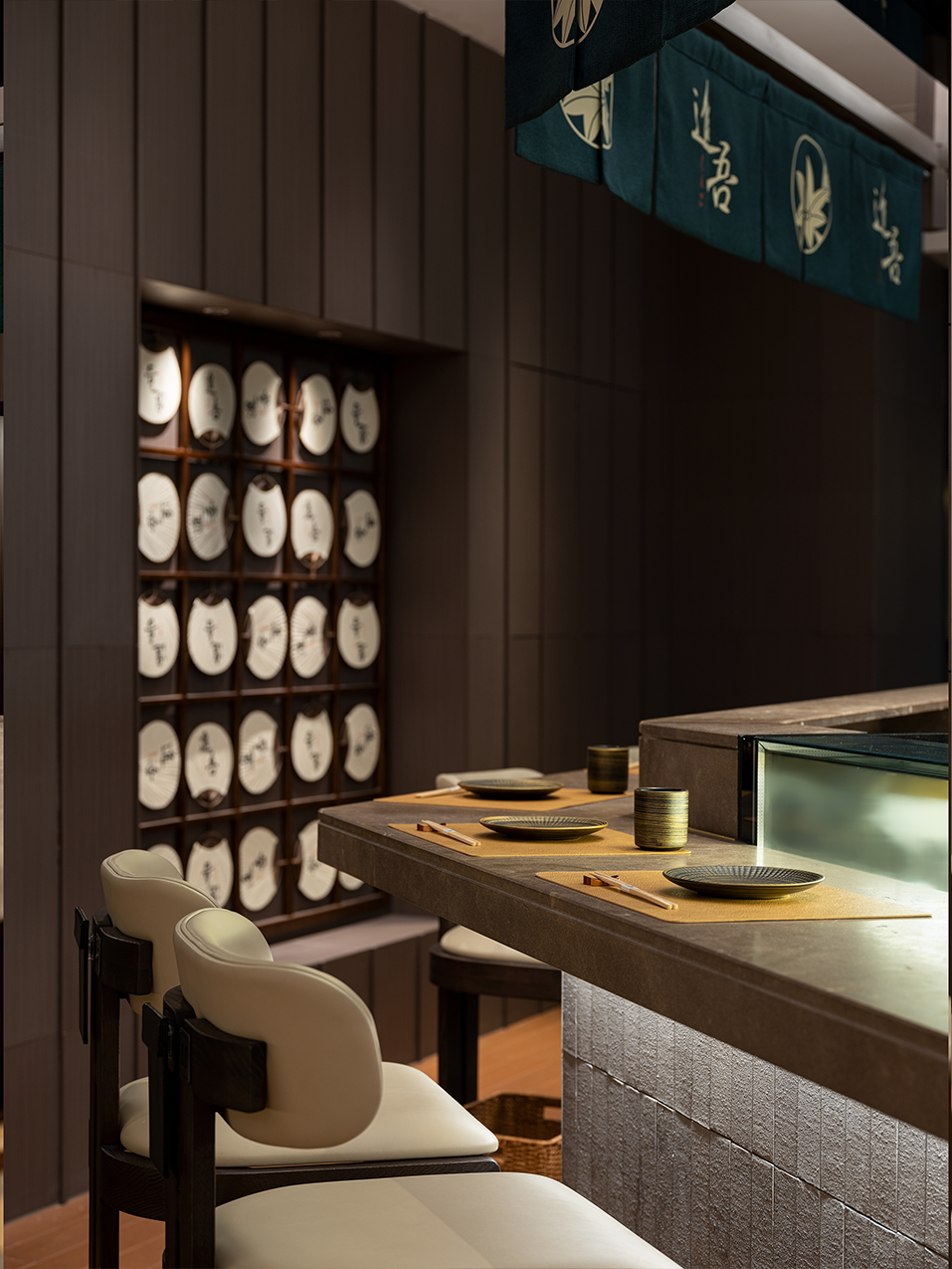 项目定位:项目位于广州CBD,『进·吾』设计在概念上和美学上延续日本料理一丝不苟、细节精致的简素之美。美食与设计的相遇,即是设计师在感悟文化与精神的内核后,以东方独有的设计笔触描绘对空间的哲学感悟。