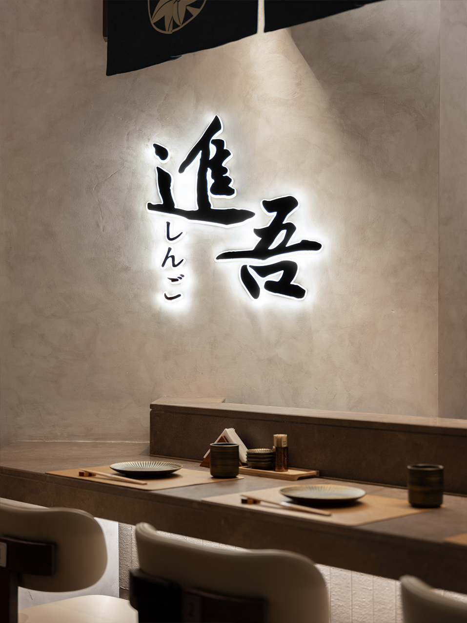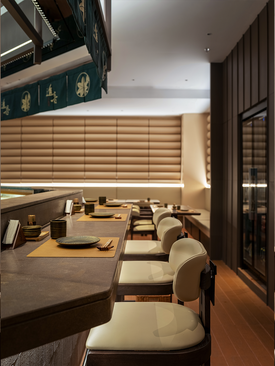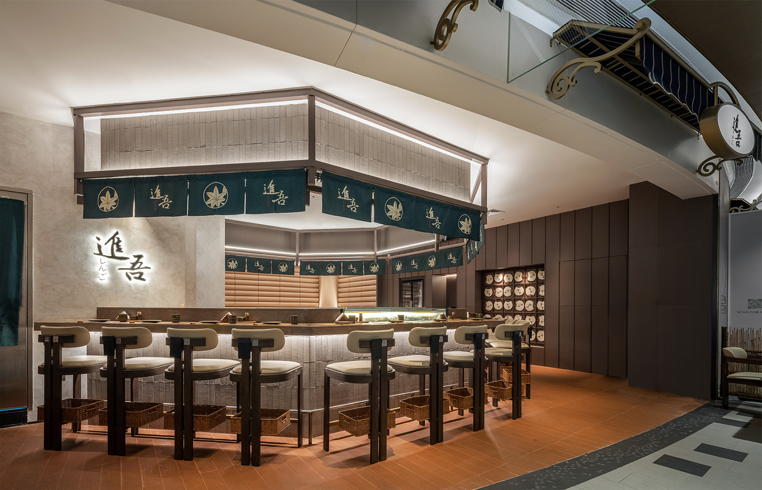 项目定位:项目位于广州CBD,『进·吾』设计在概念上和美学上延续日本料理一丝不苟、细节精致的简素之美。美食与设计的相遇,即是设计师在感悟文化与精神的内核后,以东方独有的设计笔触描绘对空间的哲学感悟。