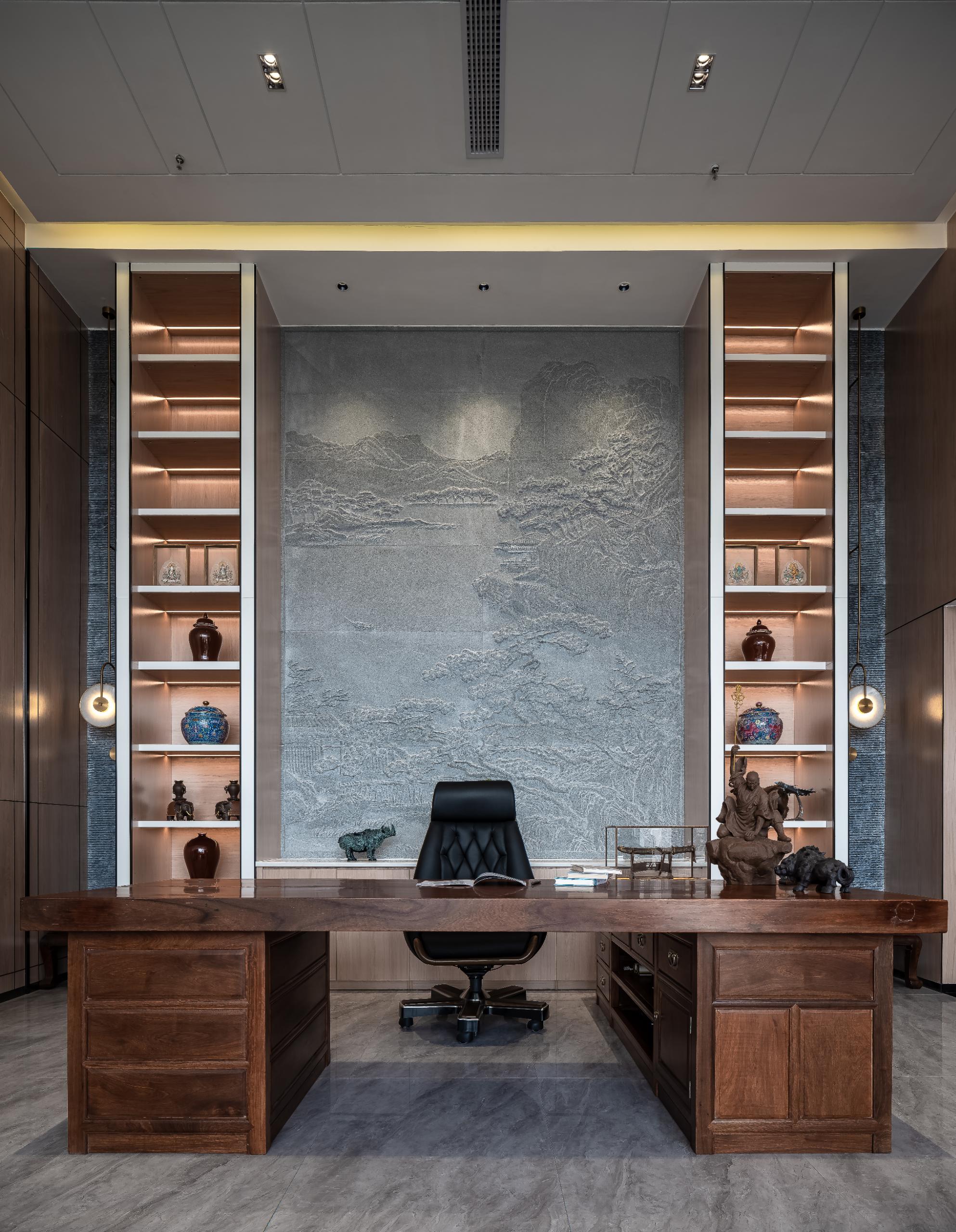 团队延续了匠人精神,以精巧细密为原则;融斗拱、鲁班锁、水墨等为设计语言;聚传统与创新为思路;携艺术与技术多角度共同打造一个气象万千的办公空间。对应甲方企业的工匠化行业属性,以及其追求精益求精的服务理念。