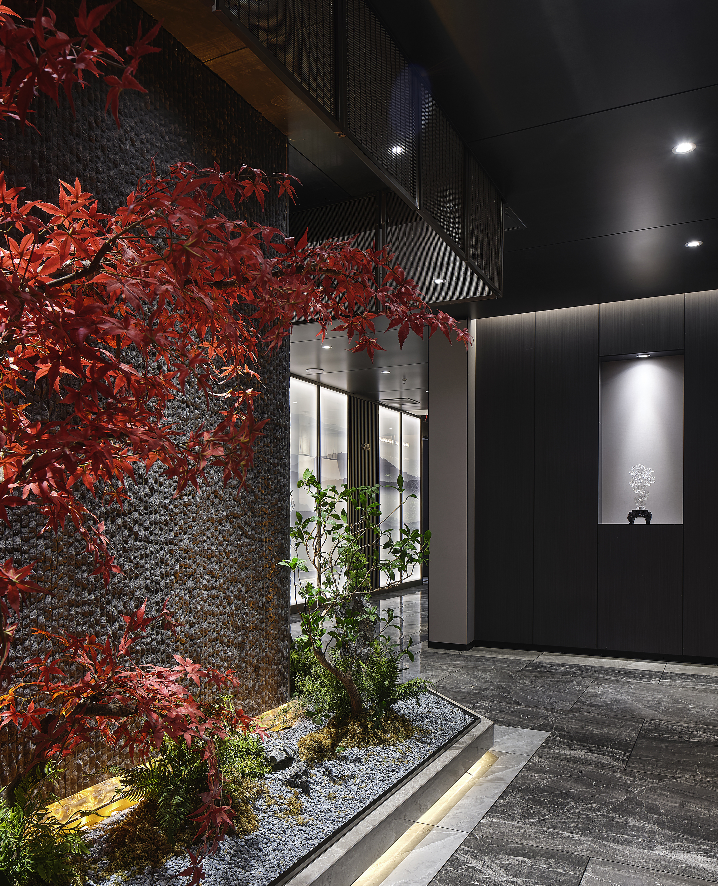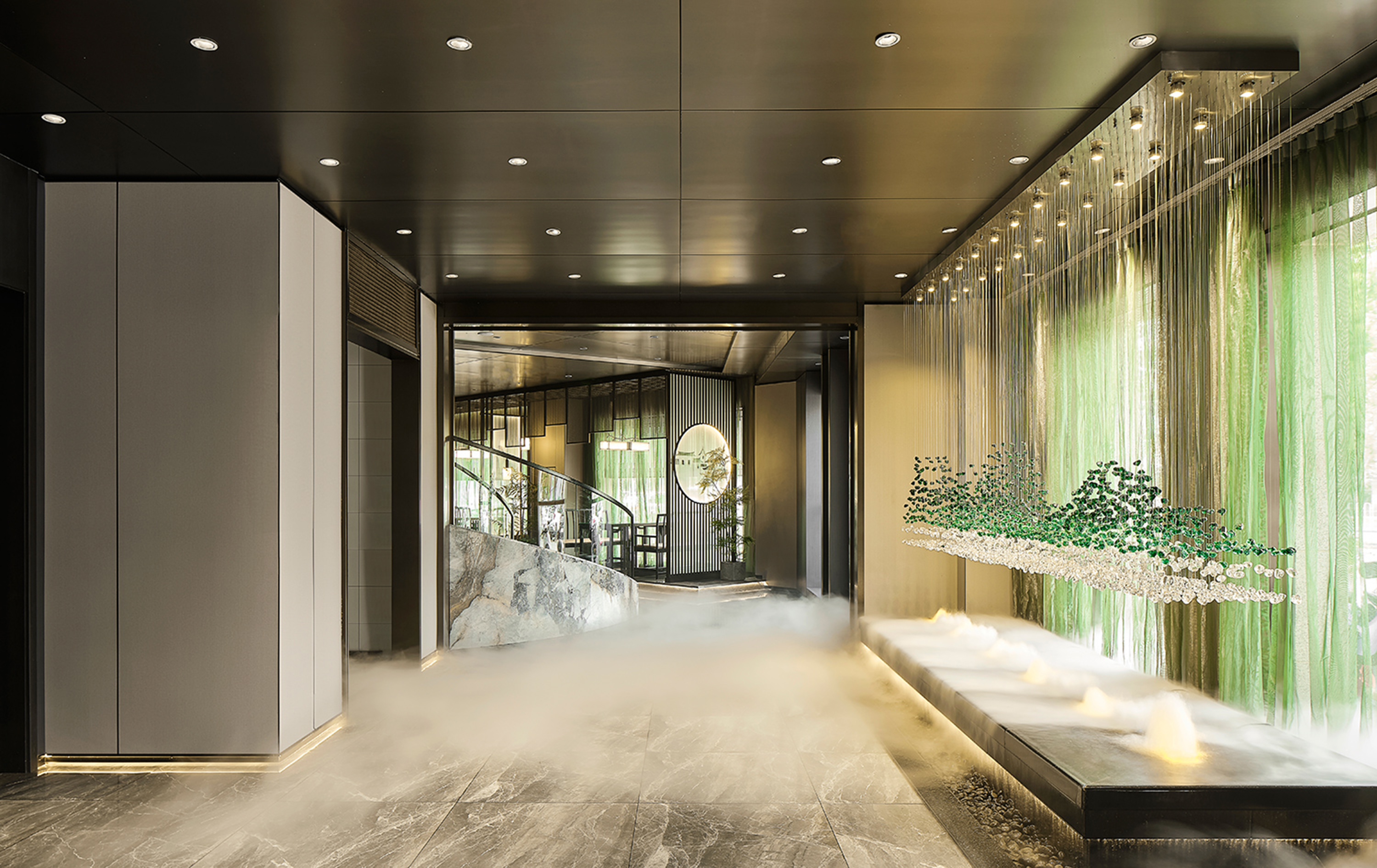 用户体验:以水入境,造一涌泉,垒一座山,筑一间舍,似水流年,未入室内,潺潺流水已入侧耳,还原东方审美下的自然美景。