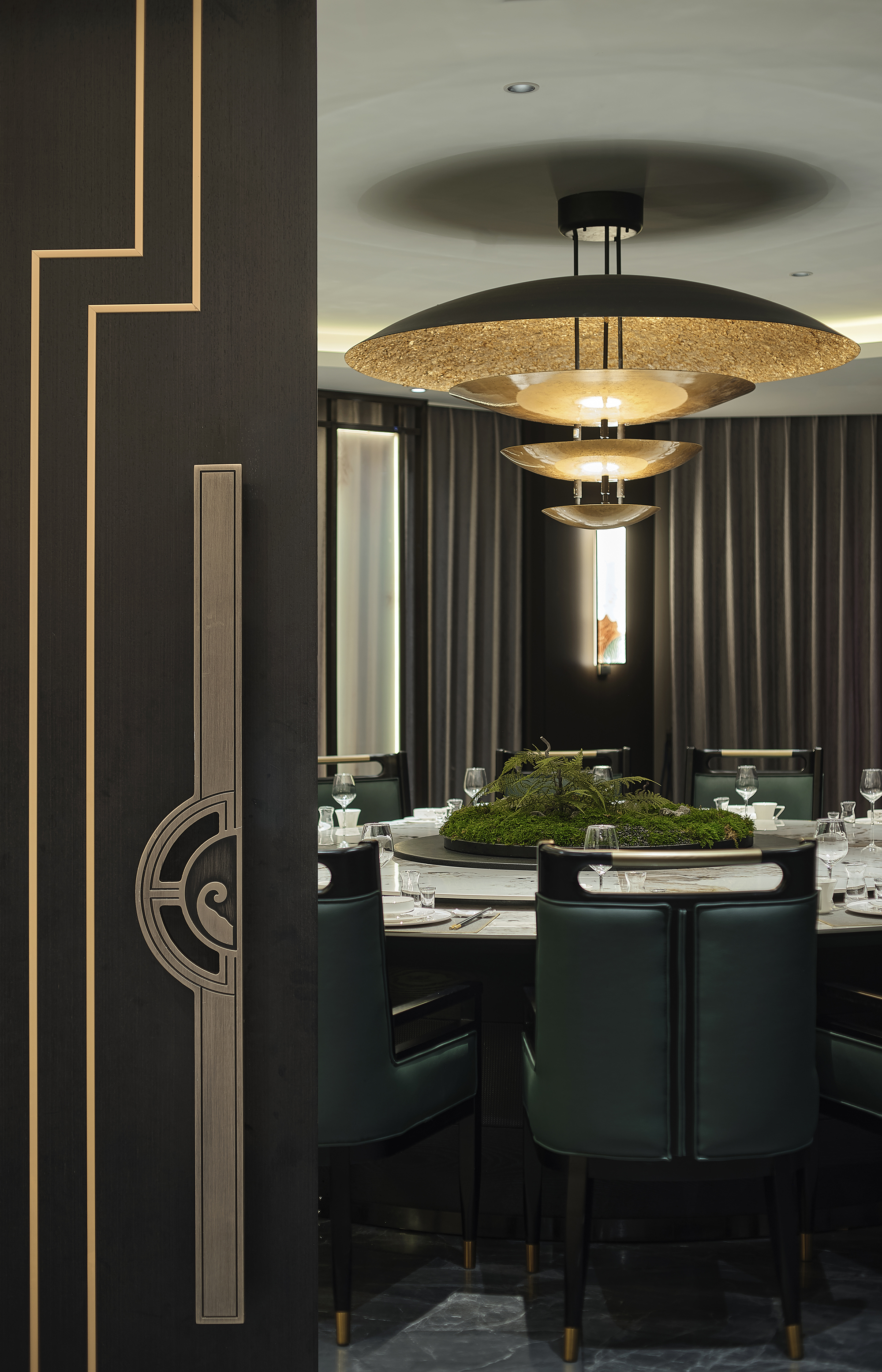 空间布局:整体空间动线流畅,可视化厨房,增加互动性,包间分布突出重要空间,廊道绿化,增加延伸感和呼吸之感,水墨晕染的石材楼梯,精致矗立。