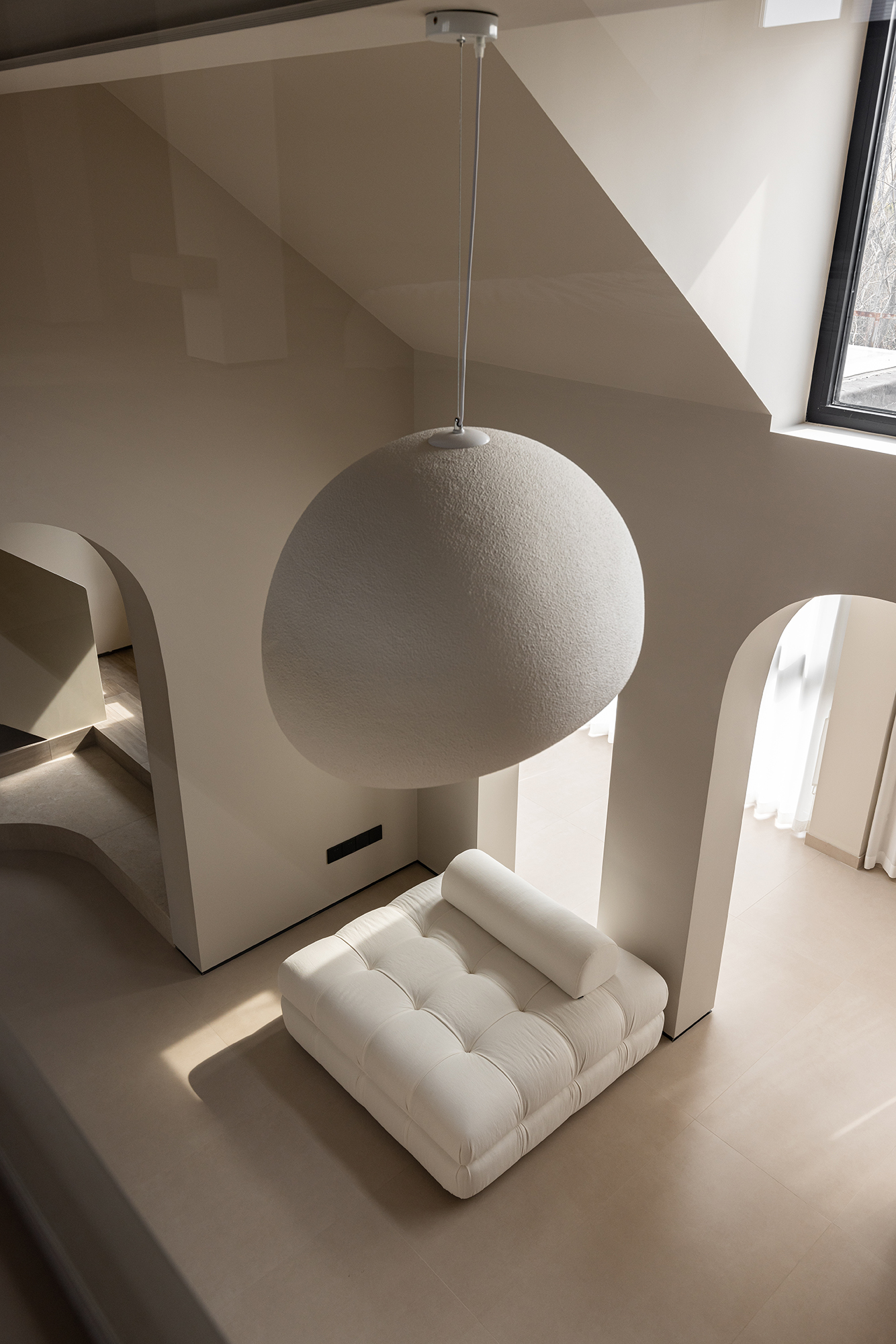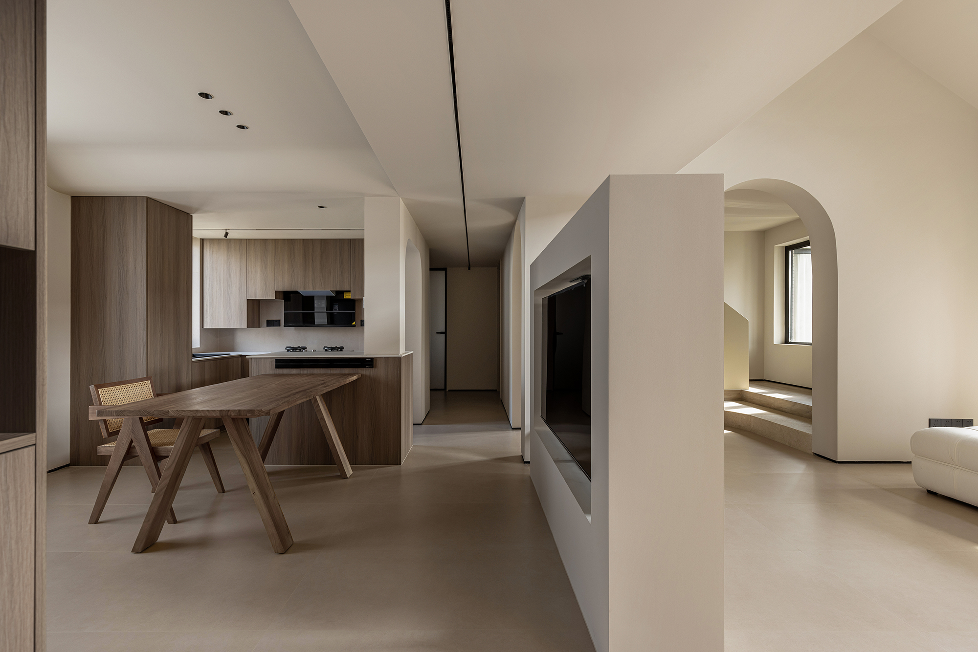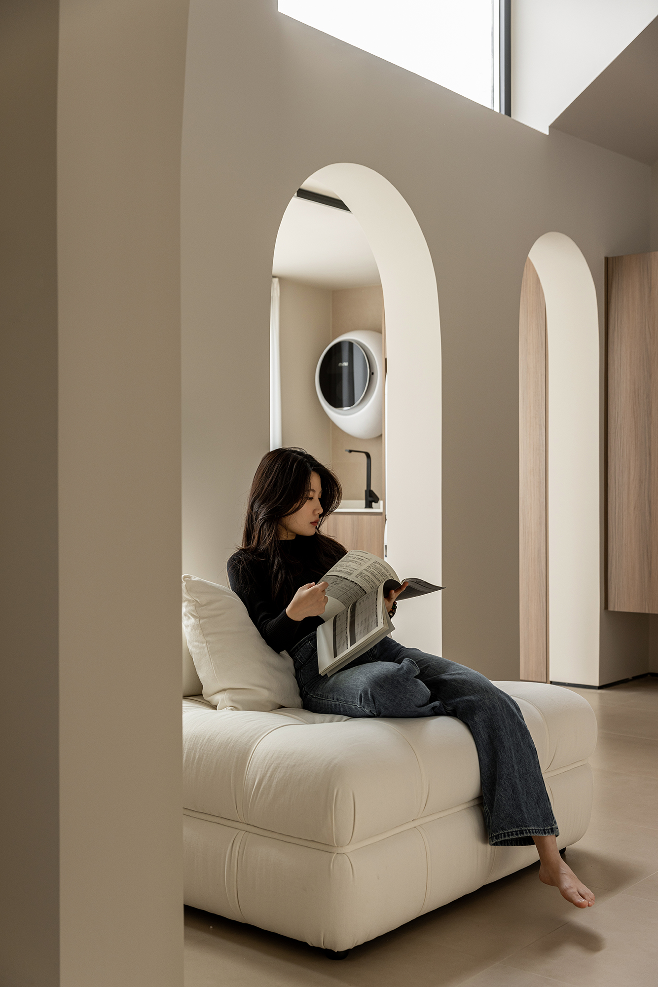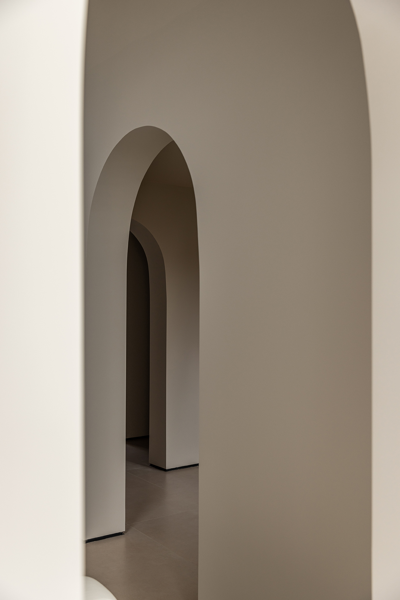 2.使用圆拱门为空间注入弧形的柔美,保留直线引导视线增强空间感;