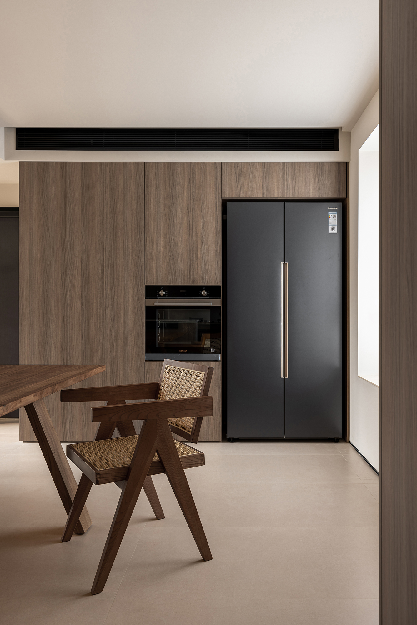 3.用吧台+餐桌的形式,形成餐厨软隔断,打造开放式厨房;