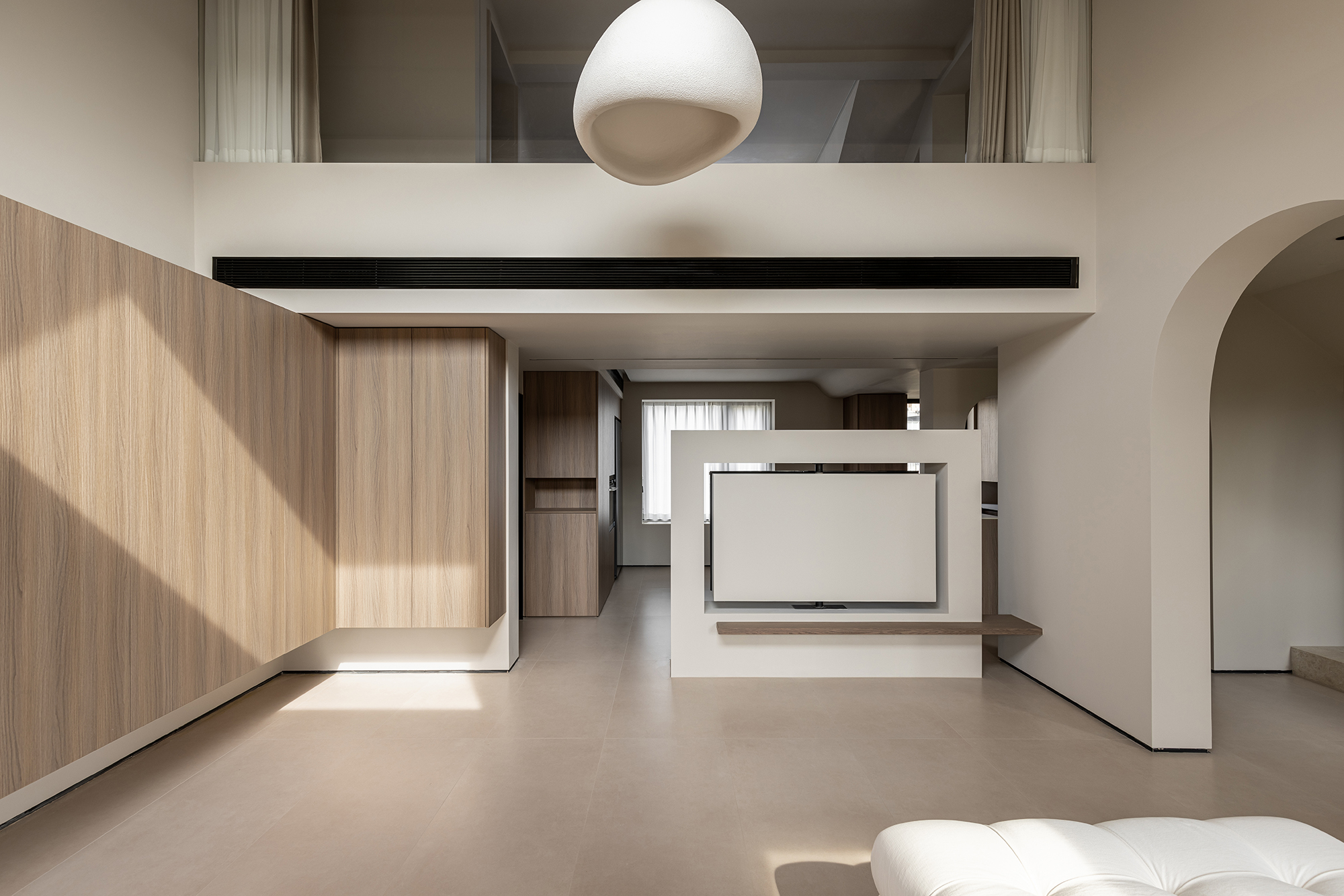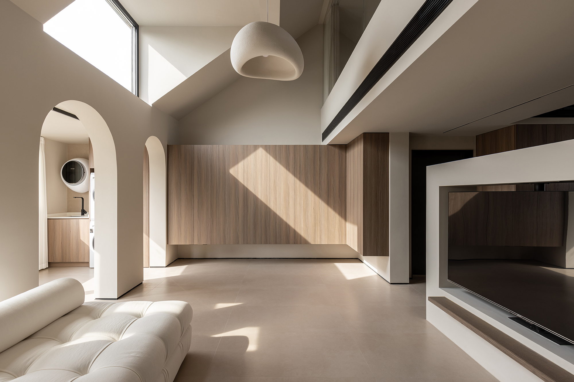 项目定位:柔美圆拱门打造极简阳光宅,翻转电视墙成就高级感