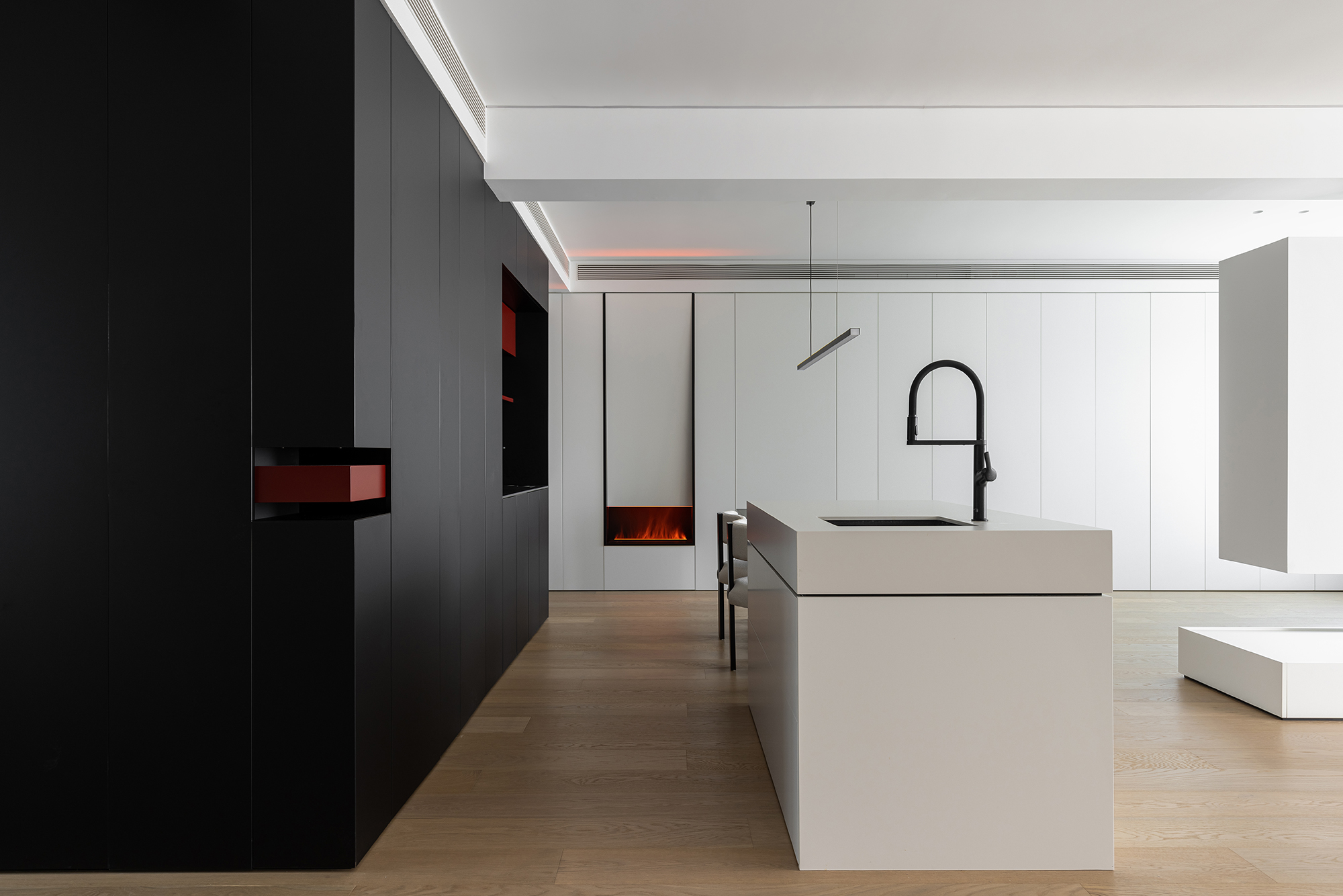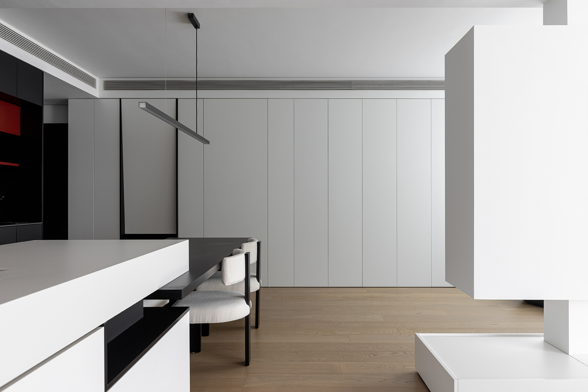 5.中岛餐桌和中央储物区形成的「双岛」洄游,给空间通透与动线便捷更多加分;