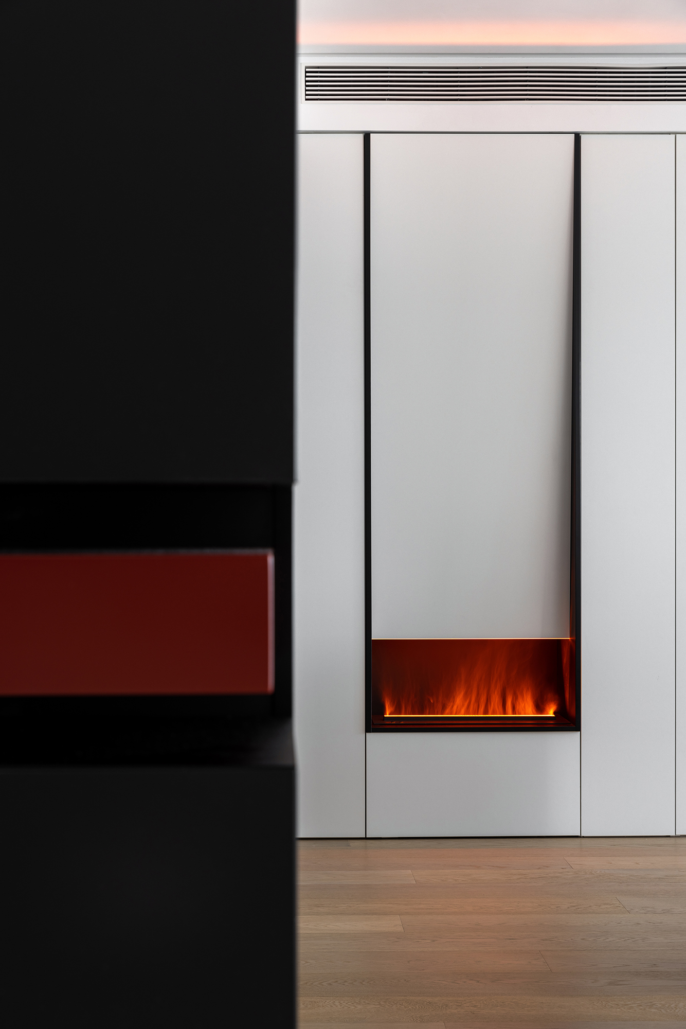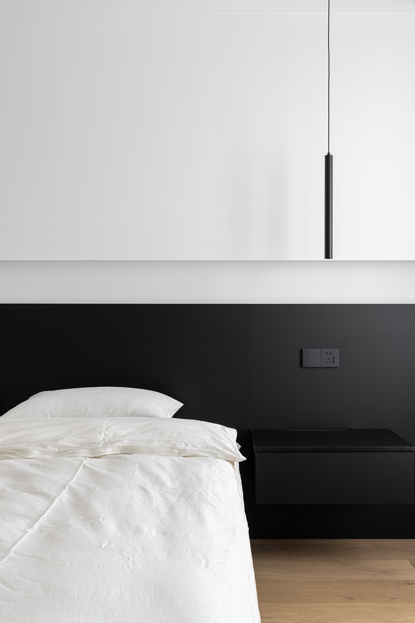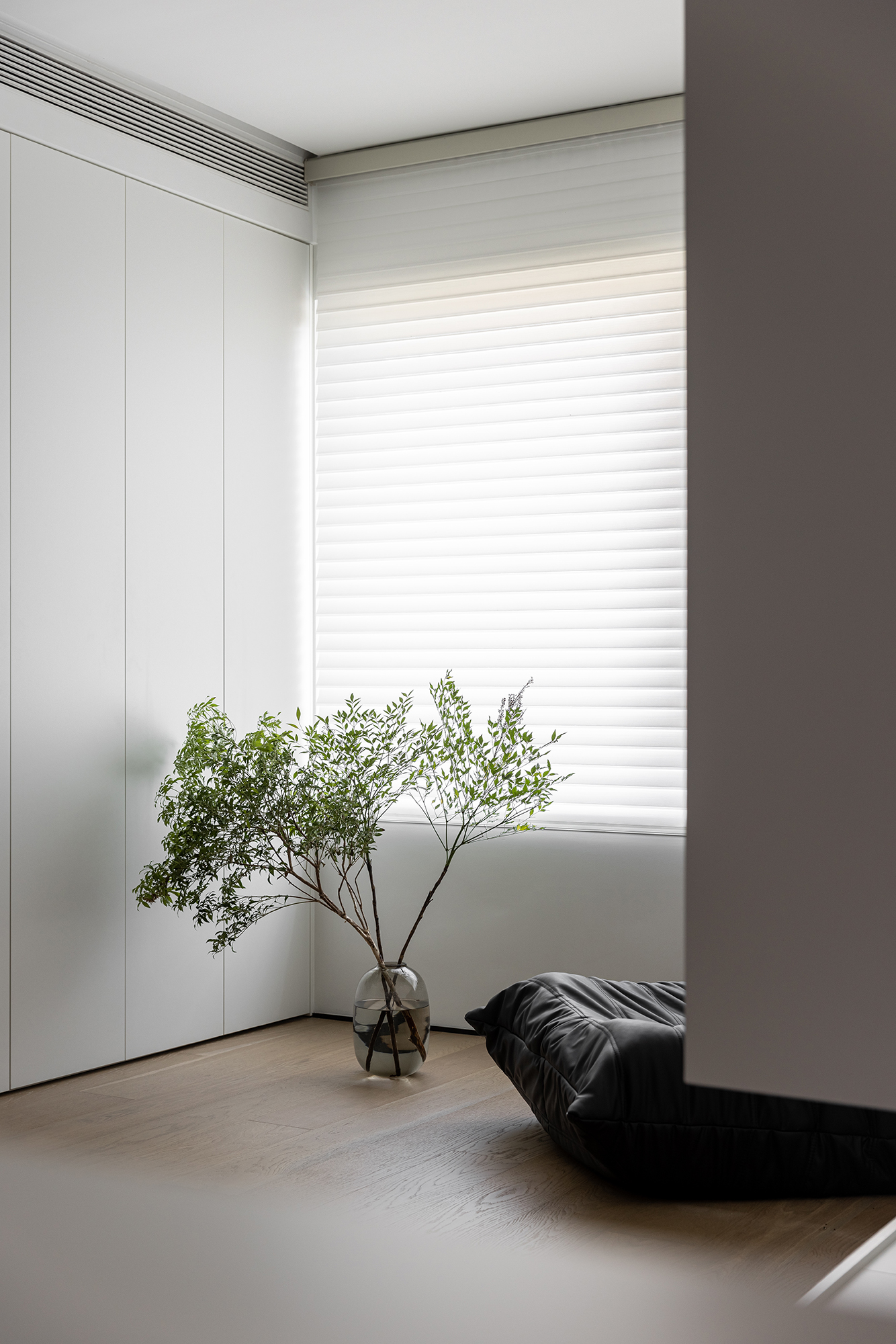 4.整屋采用白色基底+原木色,佐以黑红点缀,营造清新通透简约大气的居所氛围;