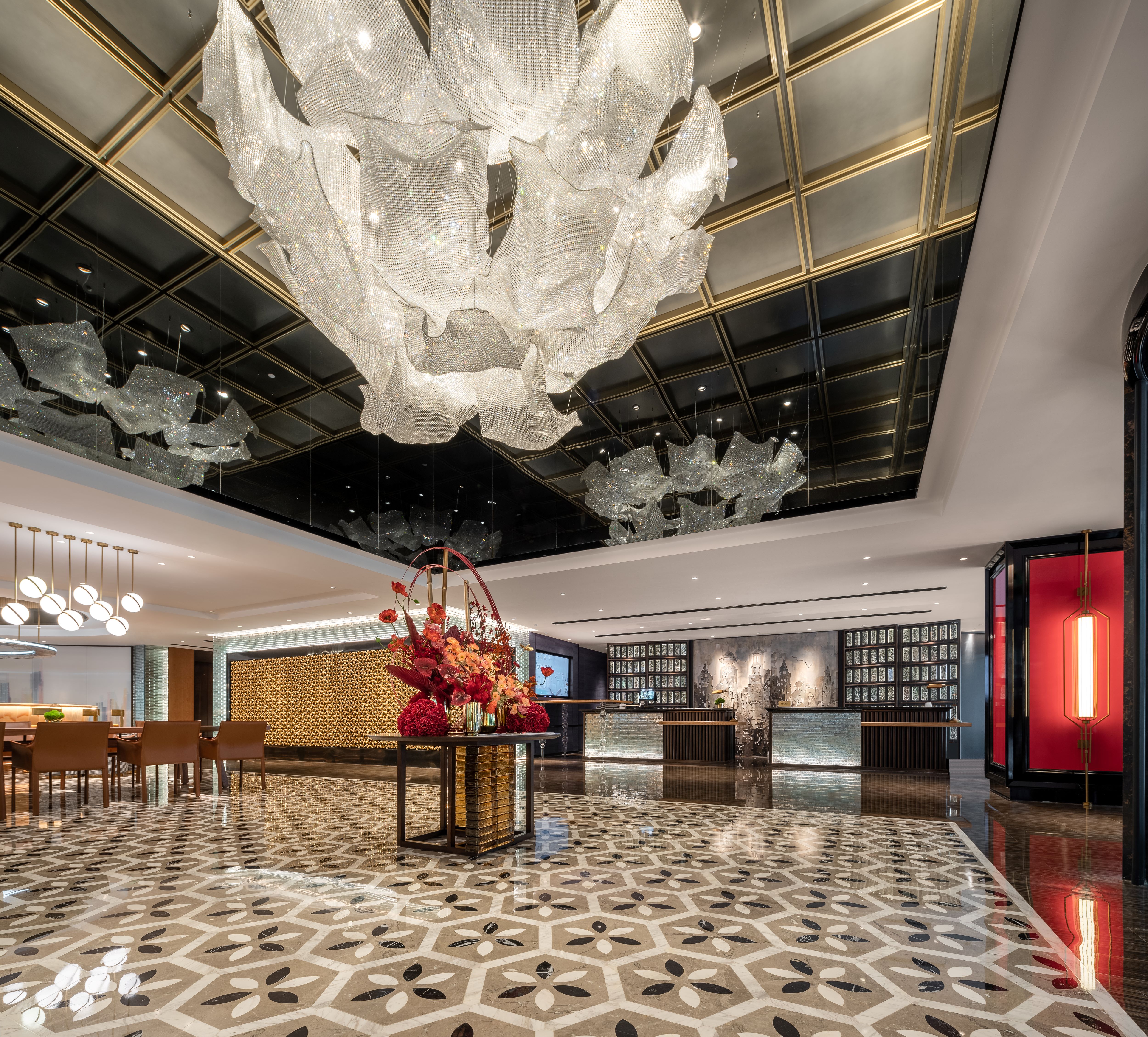 东方的气度在于闲而逸,心境恬然自得;顺应东方文化肌理,并萃取其精华彰显其场域精神。我们在大堂吧顶面运用水晶布的艺术吊灯,如同兰花花瓣盛开的场景,将海派文化与东方文化相结合,体现出东方低调奢华的韵味,也能给客人带来丰富的视觉感受。