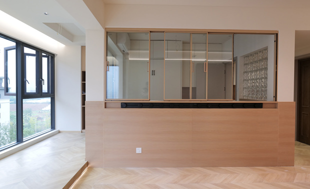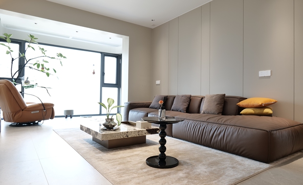 空间意境:项目设计概念围绕露台庭院的主题展开,以土/木/砖/树/石/五个象征性元素打造的微型庭院作为公共场所将空间以此划分,并以&型双通道结合,让整个庭院更加丰富多彩。