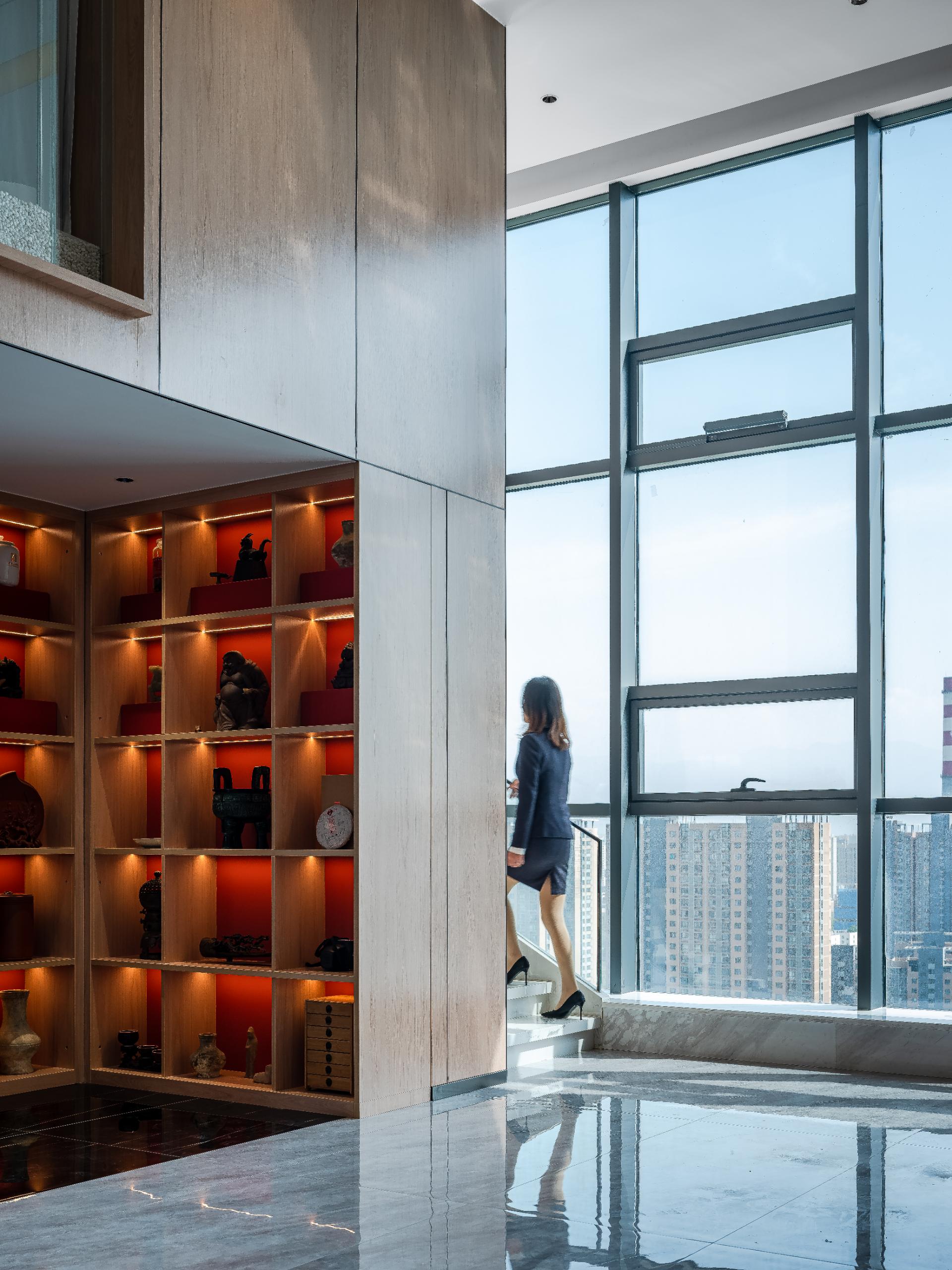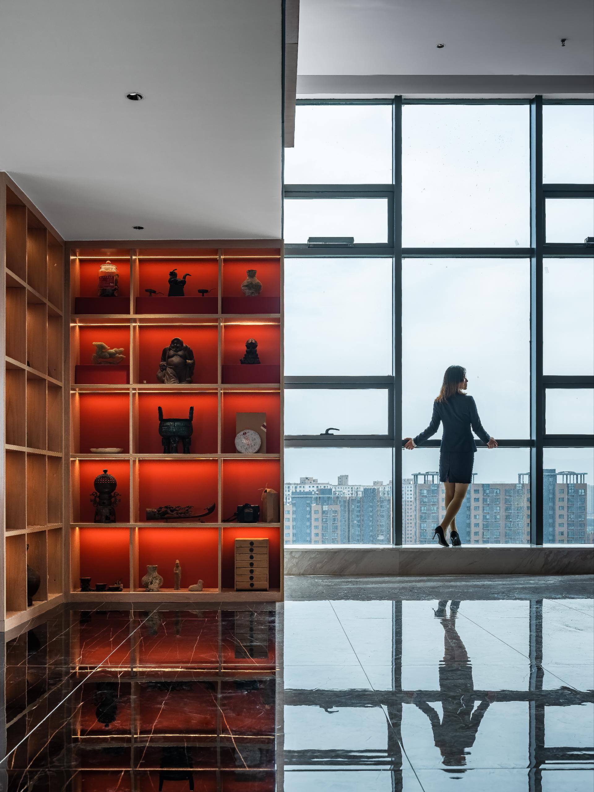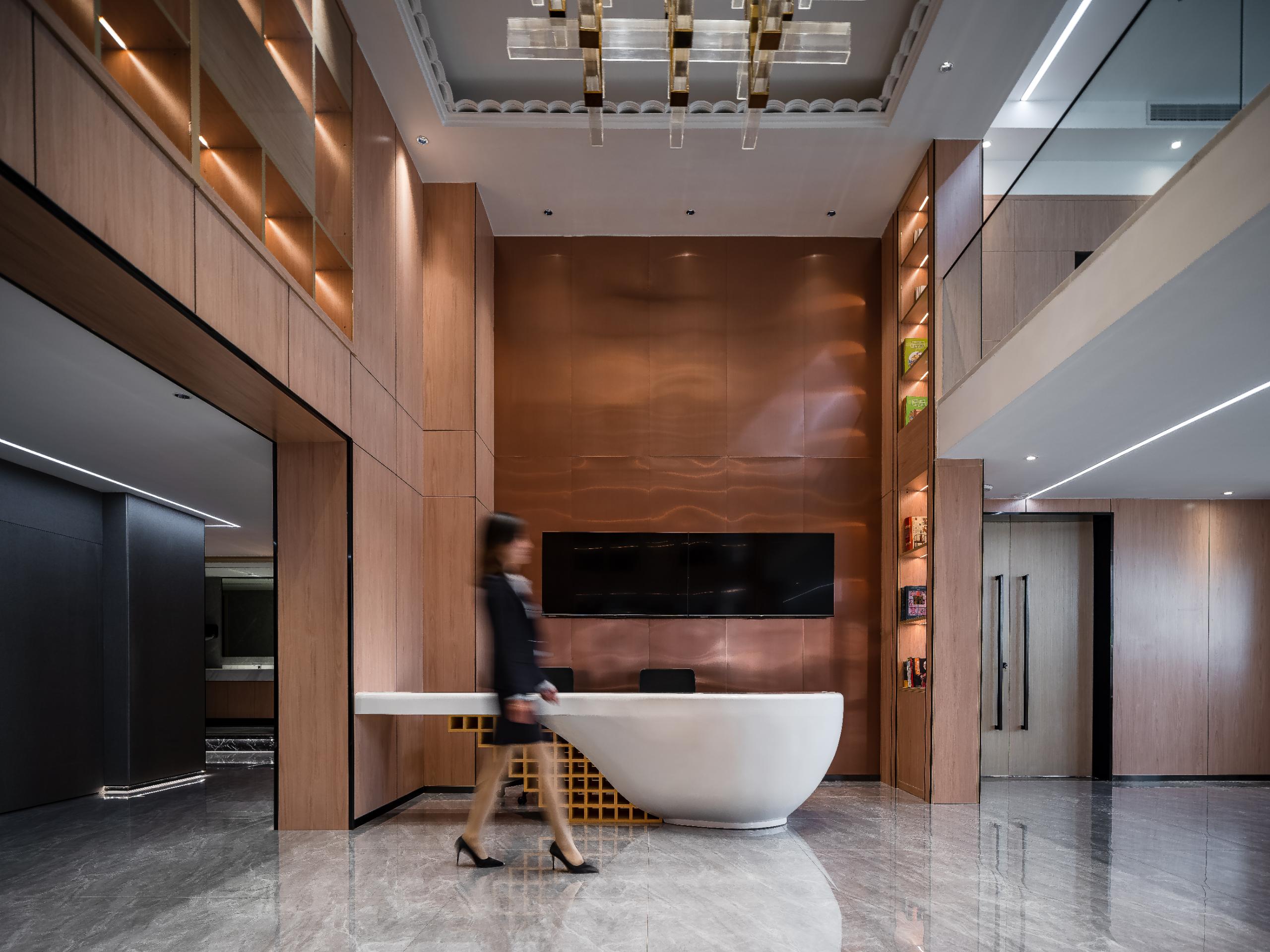 项目定位:本项目延续建筑工程锐意进取、开拓创新的精神,将传统文化传承与创新,以现代化的设计手法表达, 达到空间最大化的利用,同时具有现代、艺术、高效便捷的办公空间,将传统元素传承与创新,打造出具有文化艺术特色、个性、舒适、活力的现代化办公空间。
