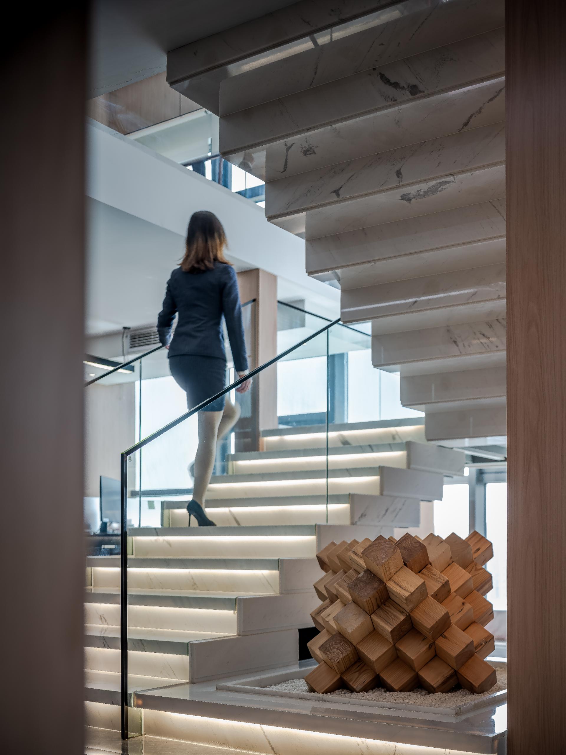 空间布局:本项目设计中延续建筑工程锐意进取,开拓创新的精神,将传统文化融入空间设计,再将“五感”体验做为衡量空间尺度的标准,展现艺术与技术的完美结合,在达到空间最大化的利用的同时,也让其成为具有现代、艺术、高效便捷的办公空间。