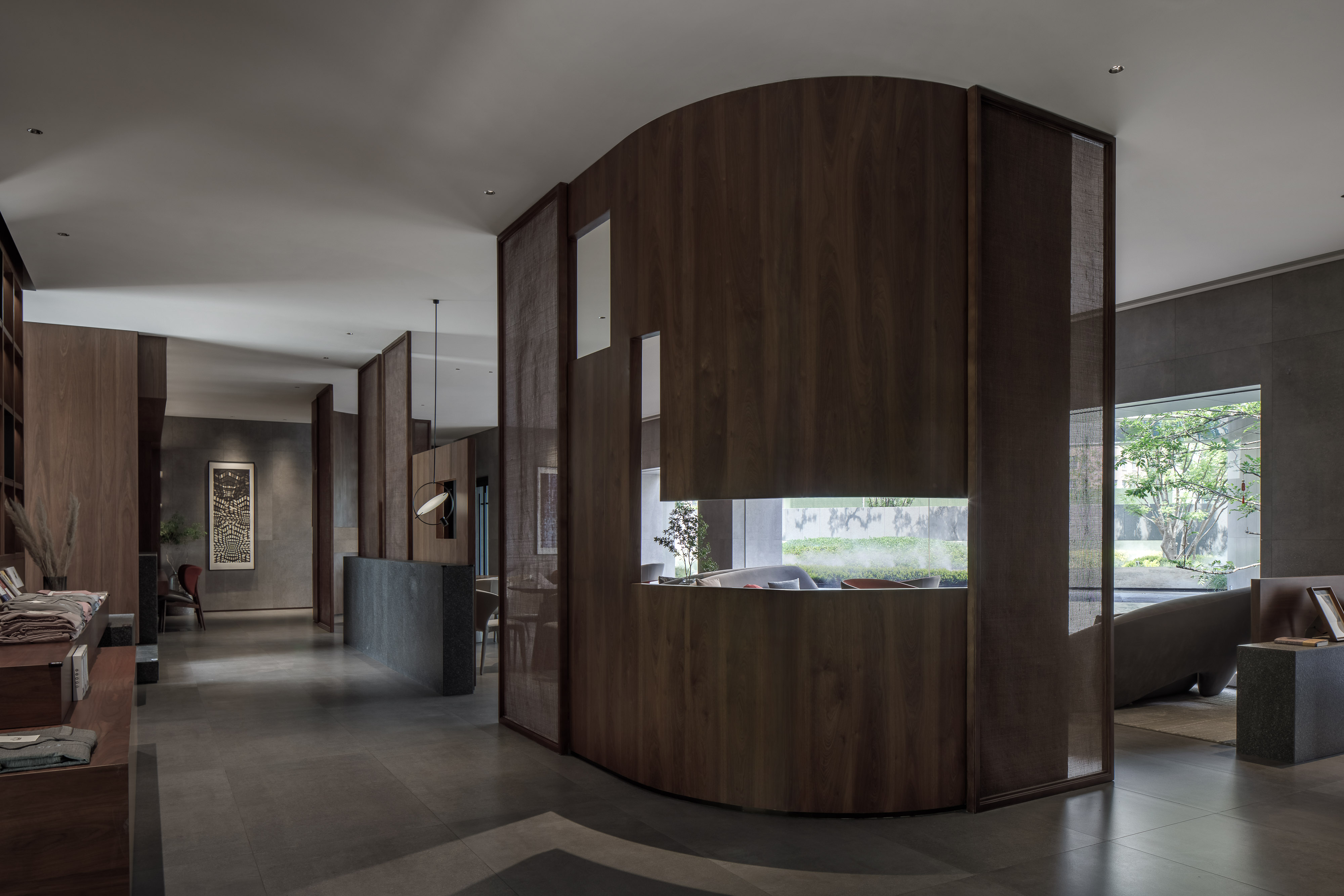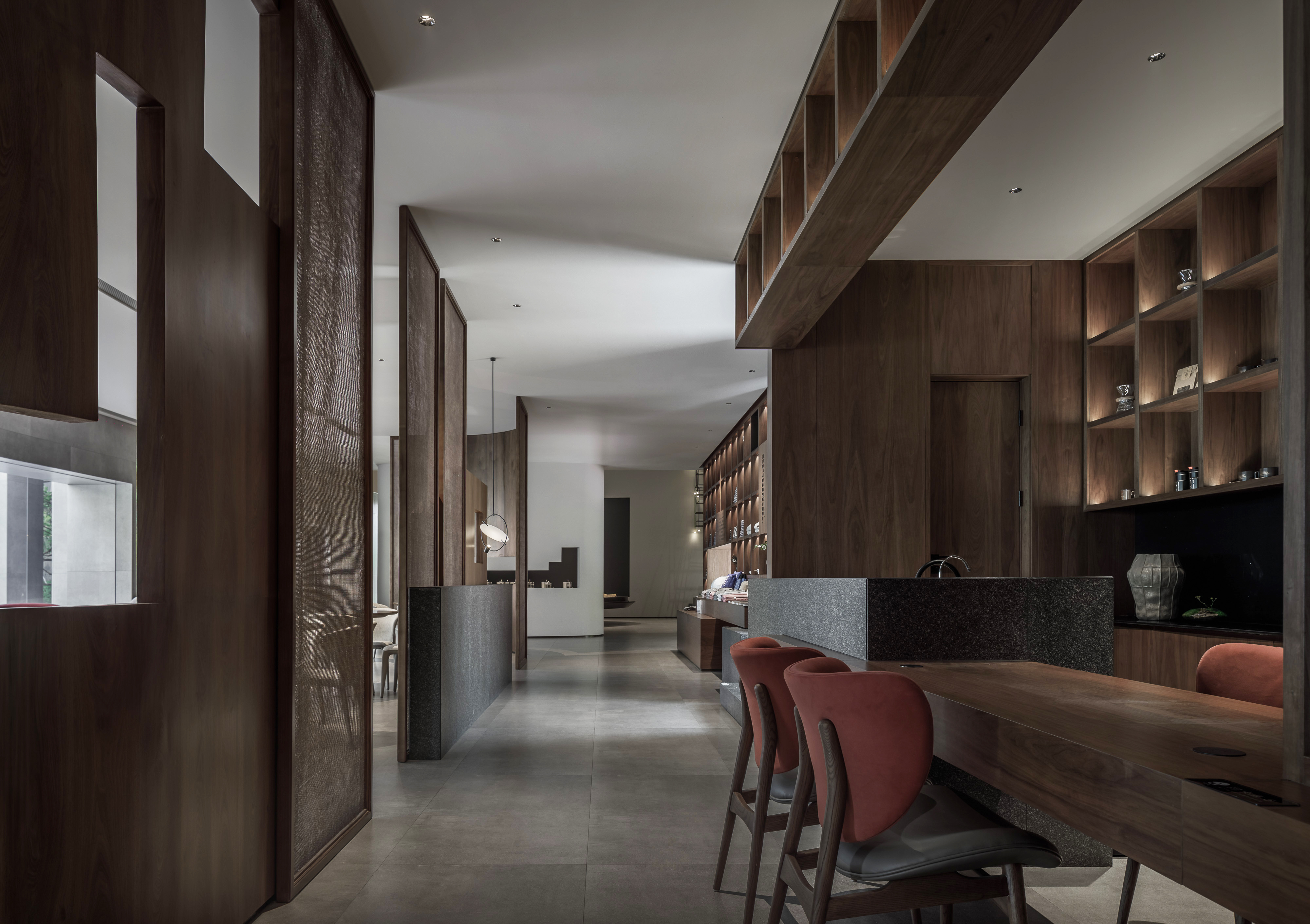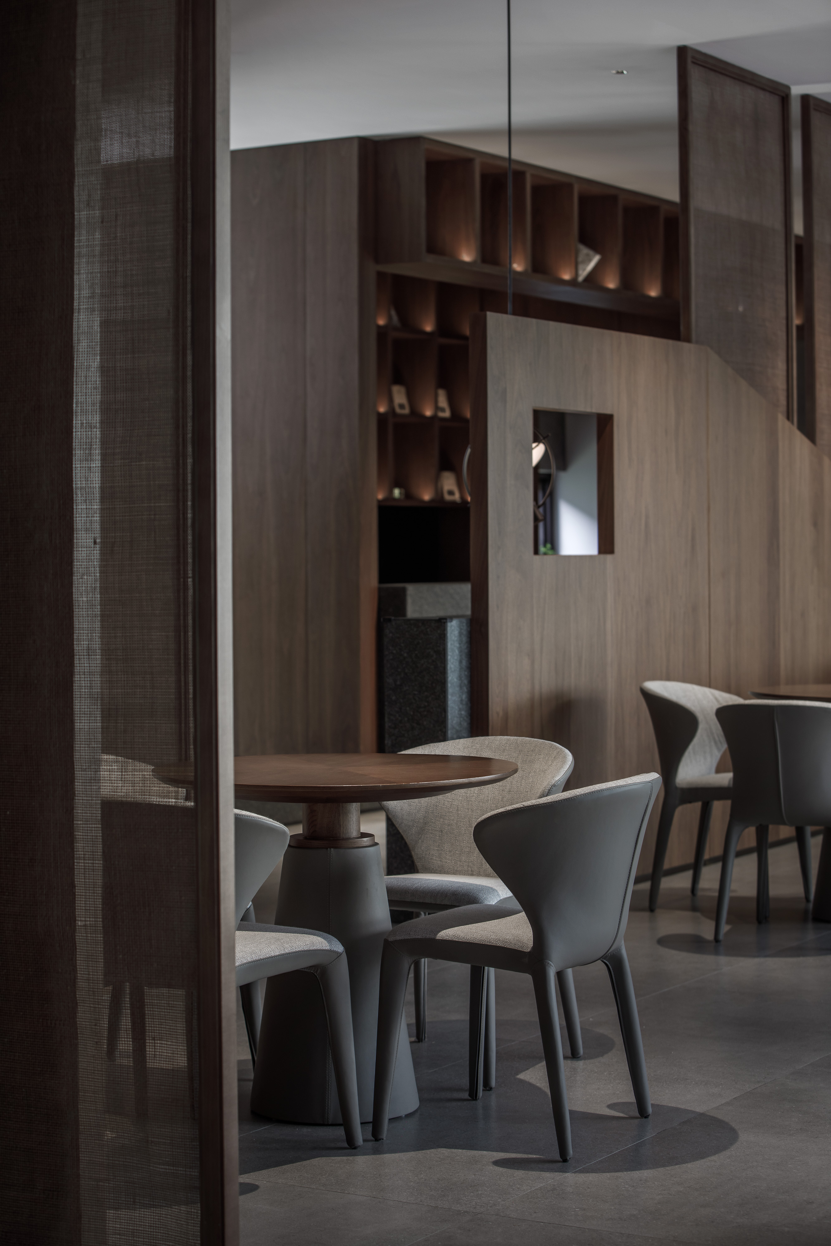 空间中质朴的材料、单纯的几何结构,不过分依赖物质而在空间中达到精神的纯粹性。同时,空间以质朴的木色和连绵不绝的浅灰色,给都市人带来内心深处的虚怀与平静。