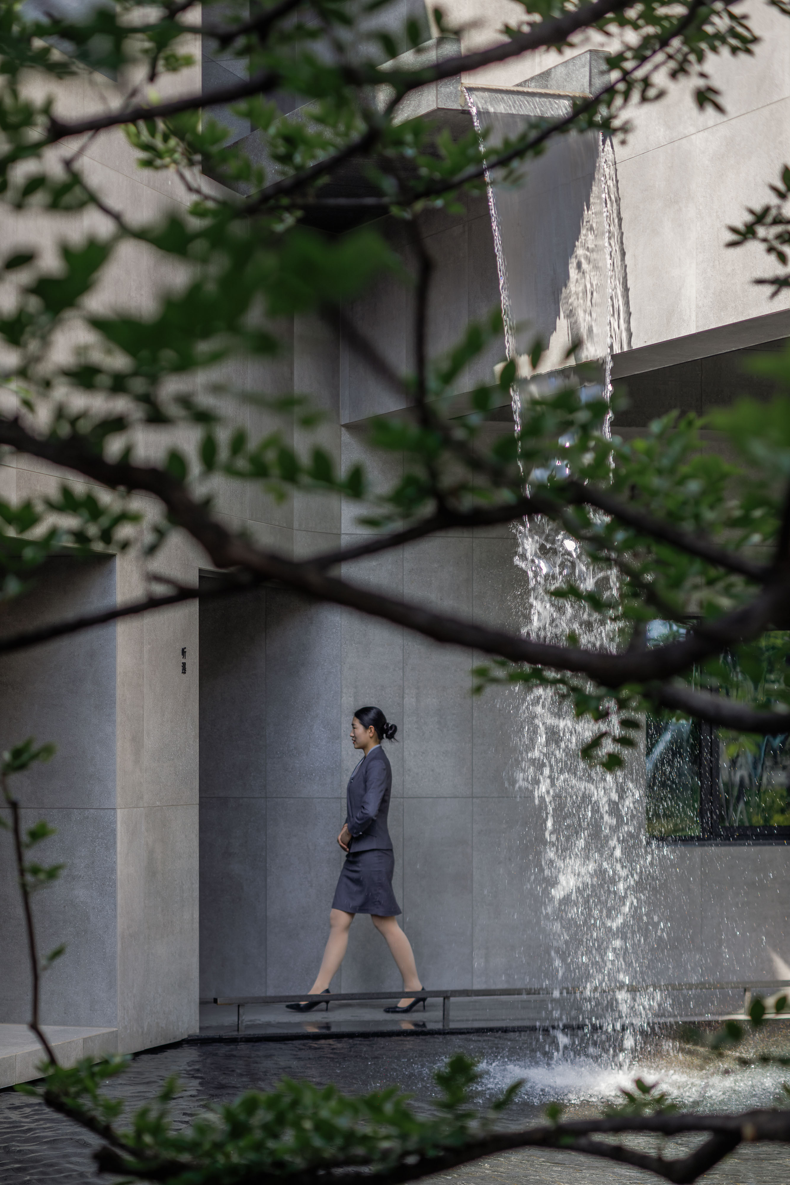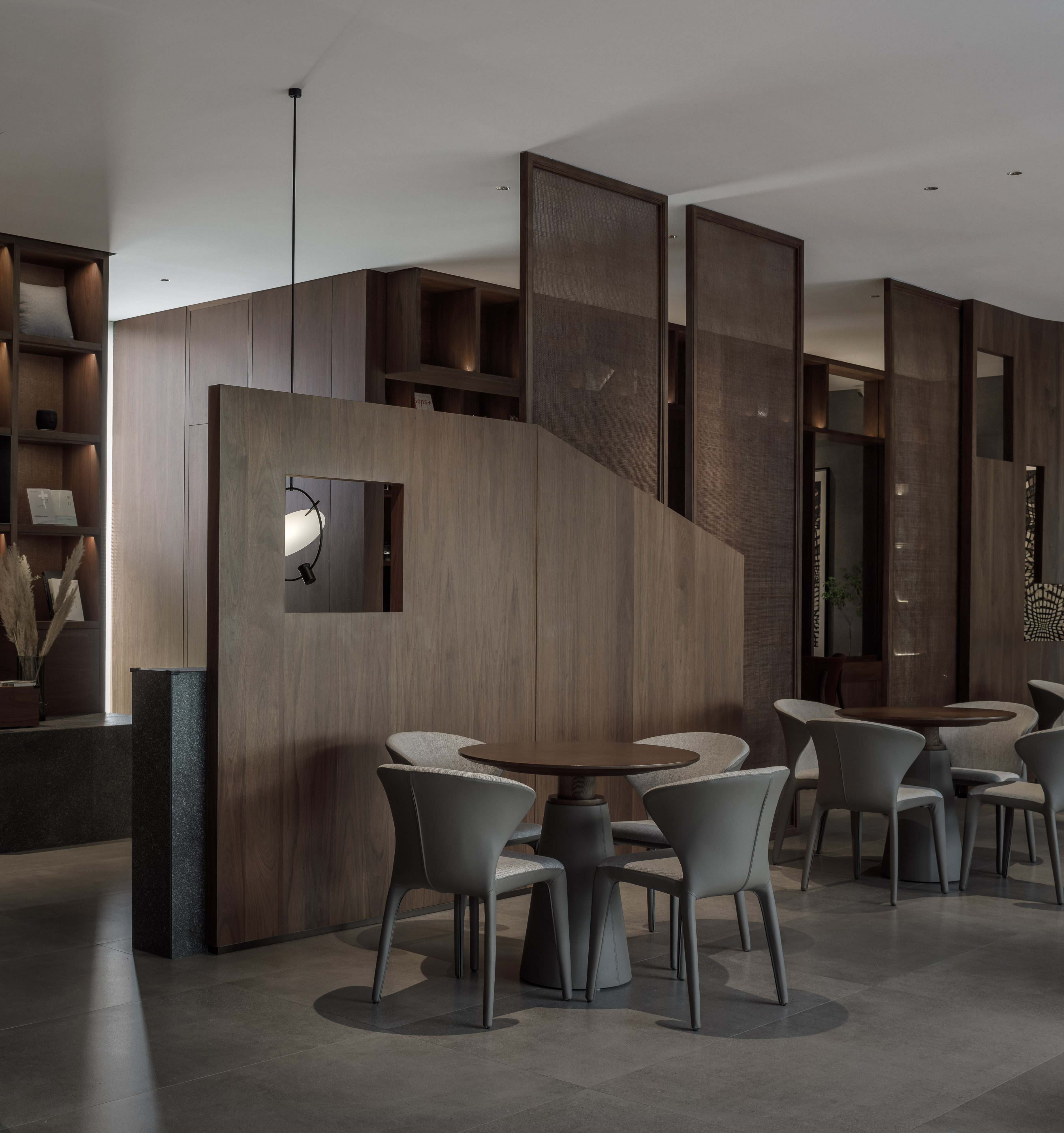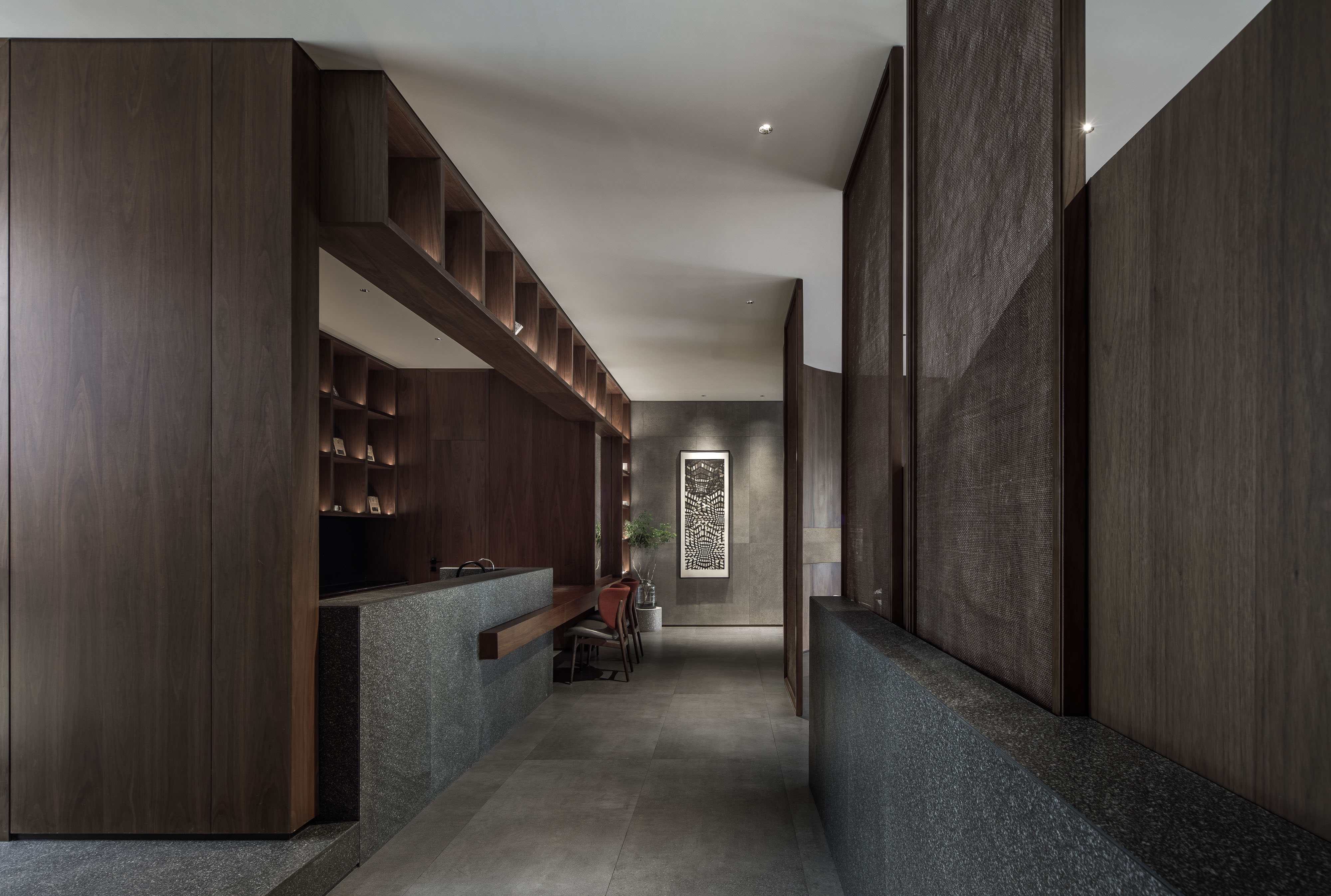 空间中质朴的材料、单纯的几何结构,不过分依赖物质而在空间中达到精神的纯粹性。同时,空间以质朴的木色和连绵不绝的浅灰色,给都市人带来内心深处的虚怀与平静。
