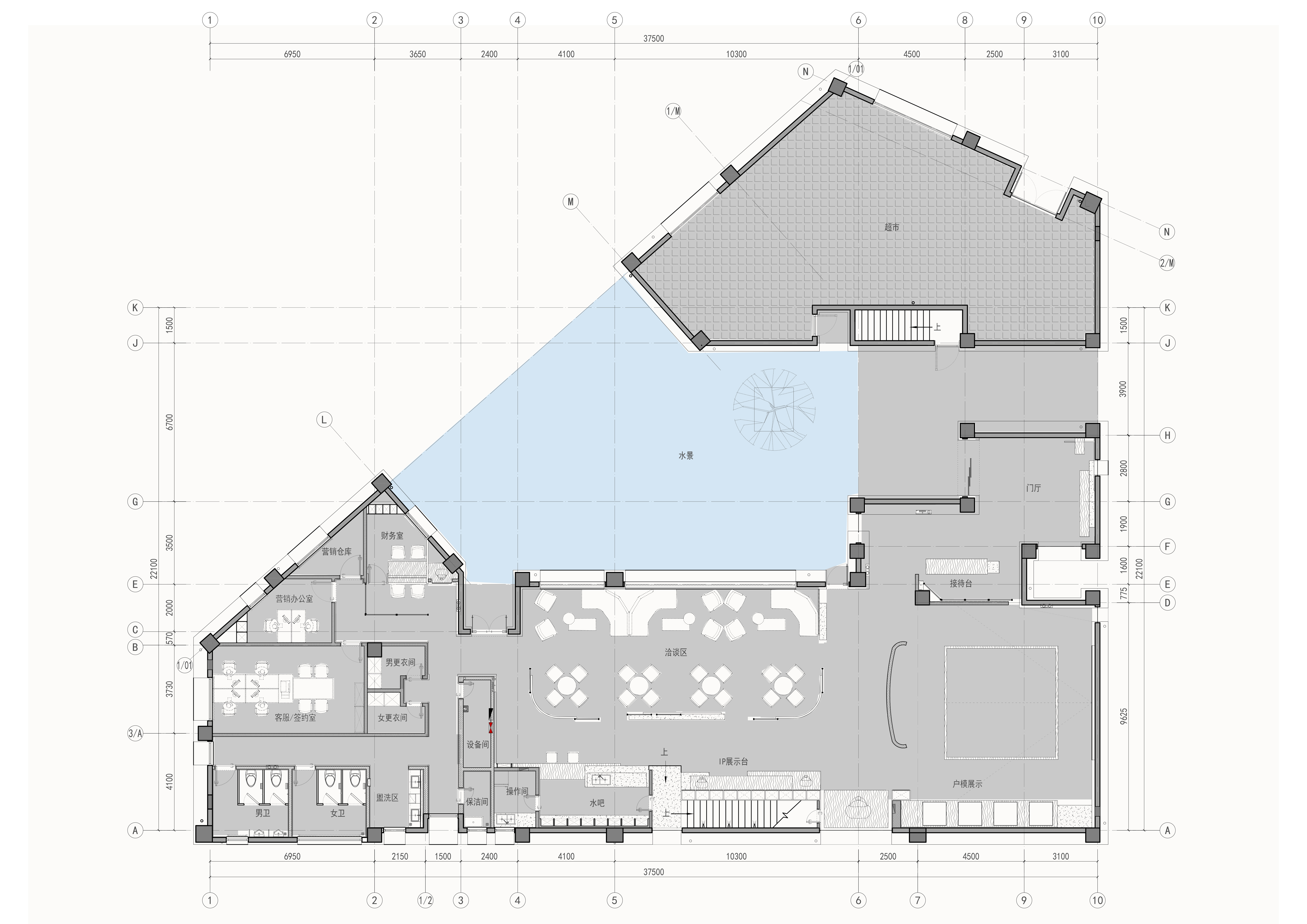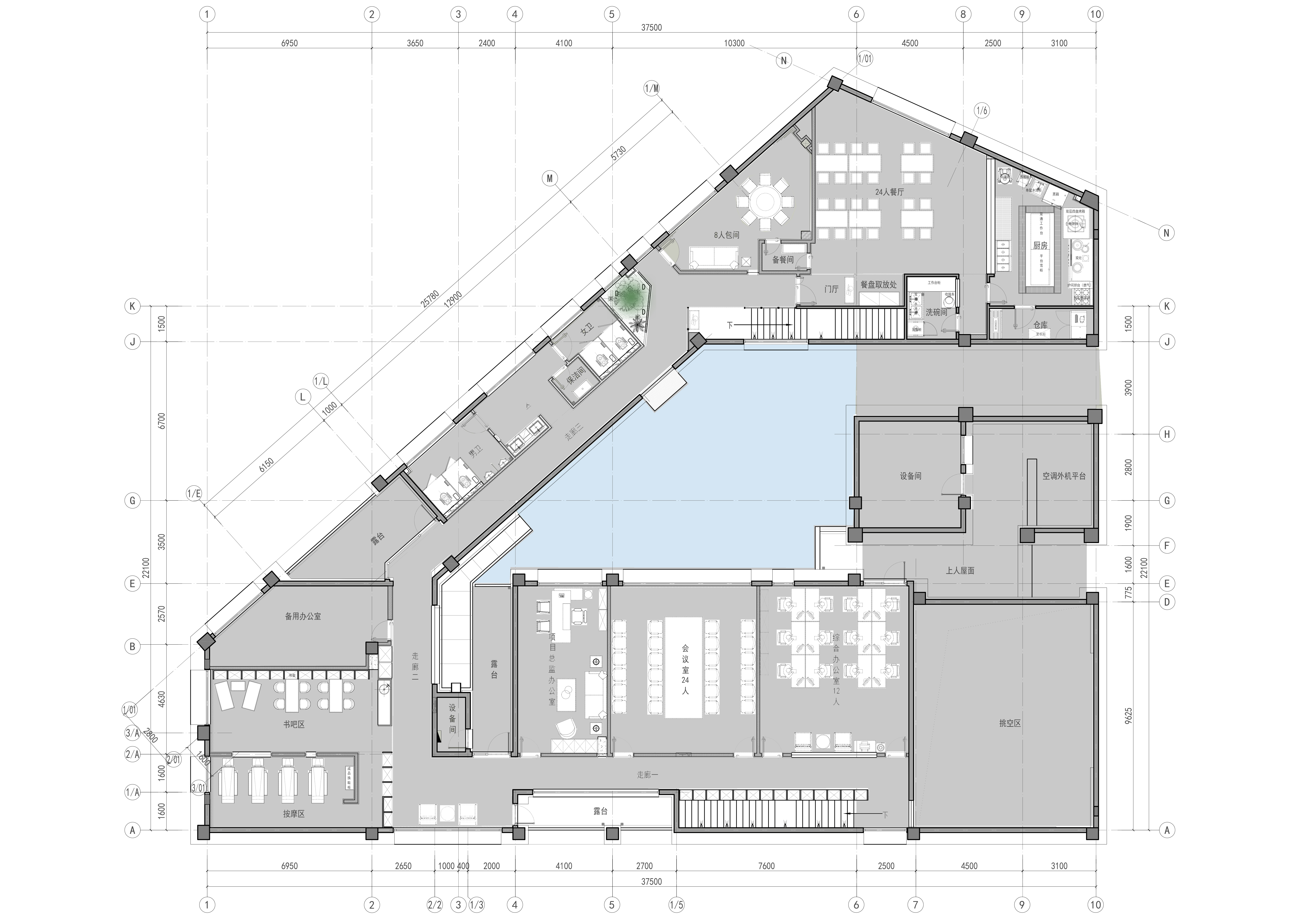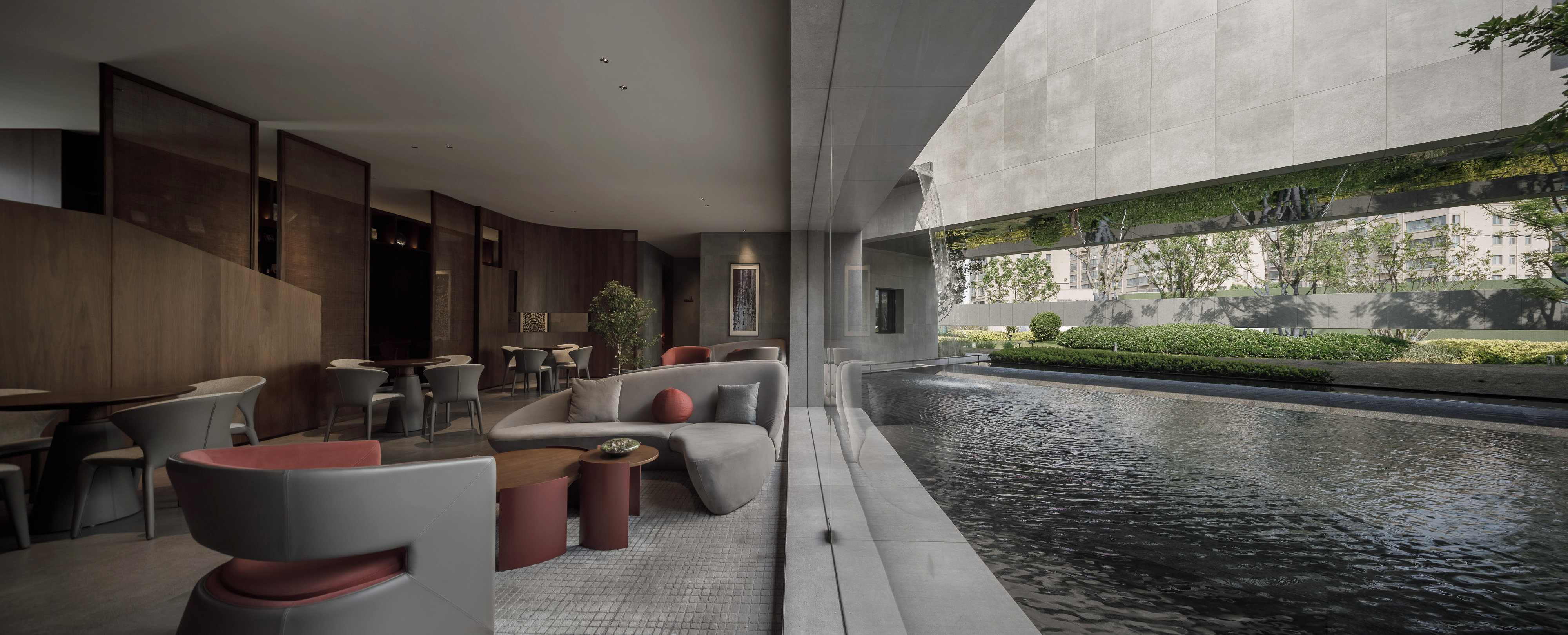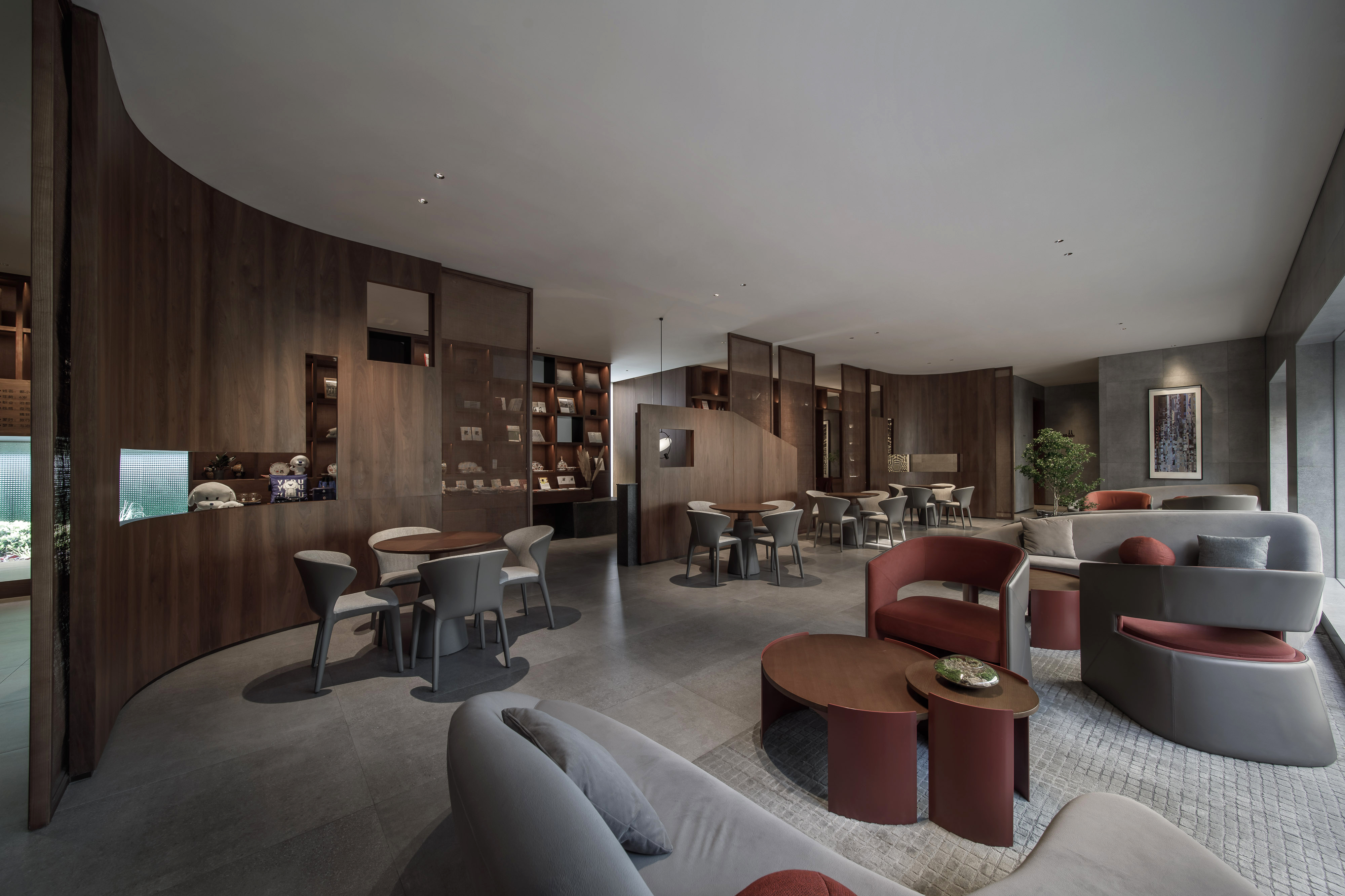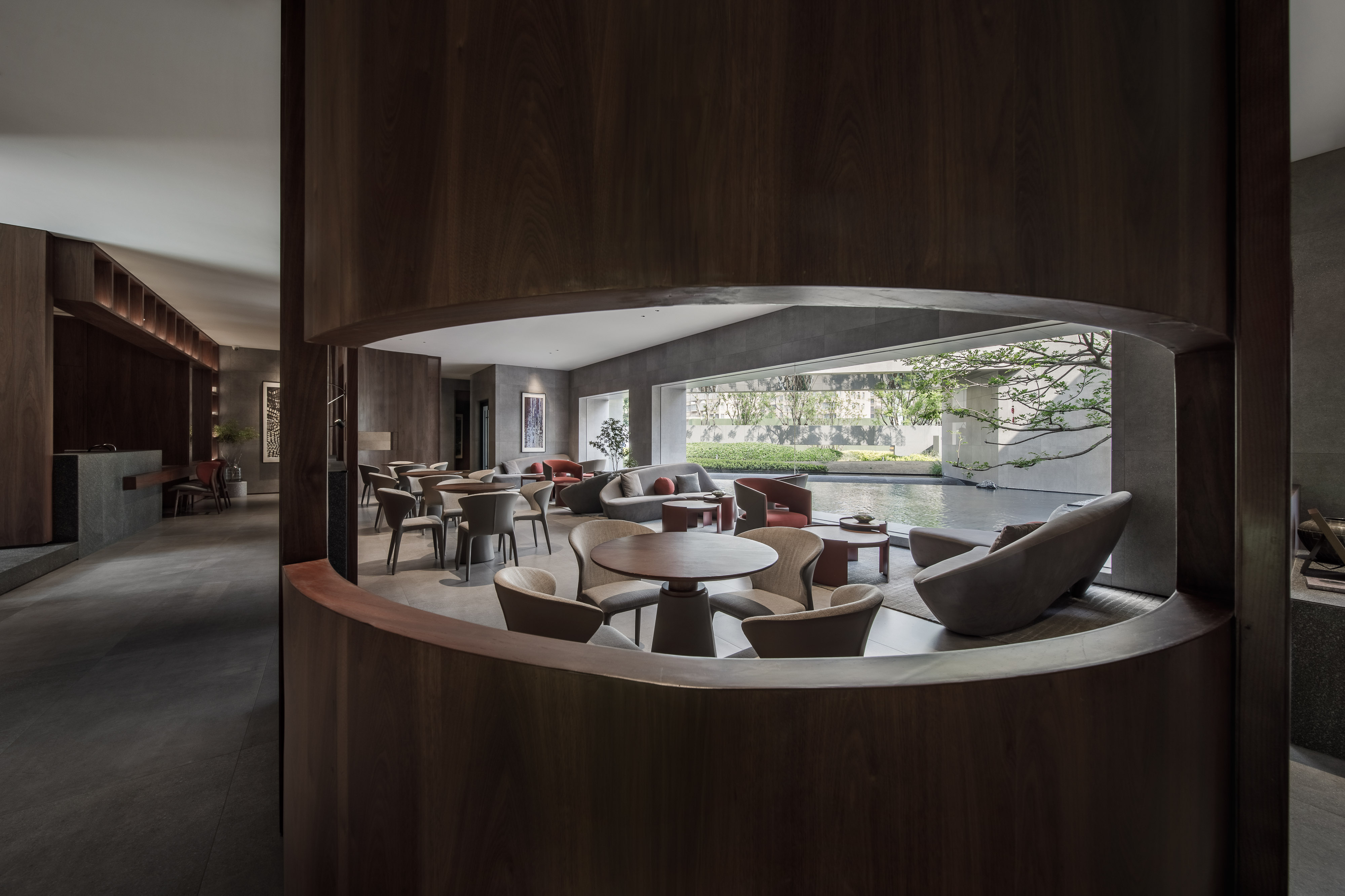 临窗而坐,窗外是静谧的水面,隐约的阳光通过水面的反射,斑驳的洒向室内,氛围感十足,使客户可以在这个环境中愉快的畅谈。