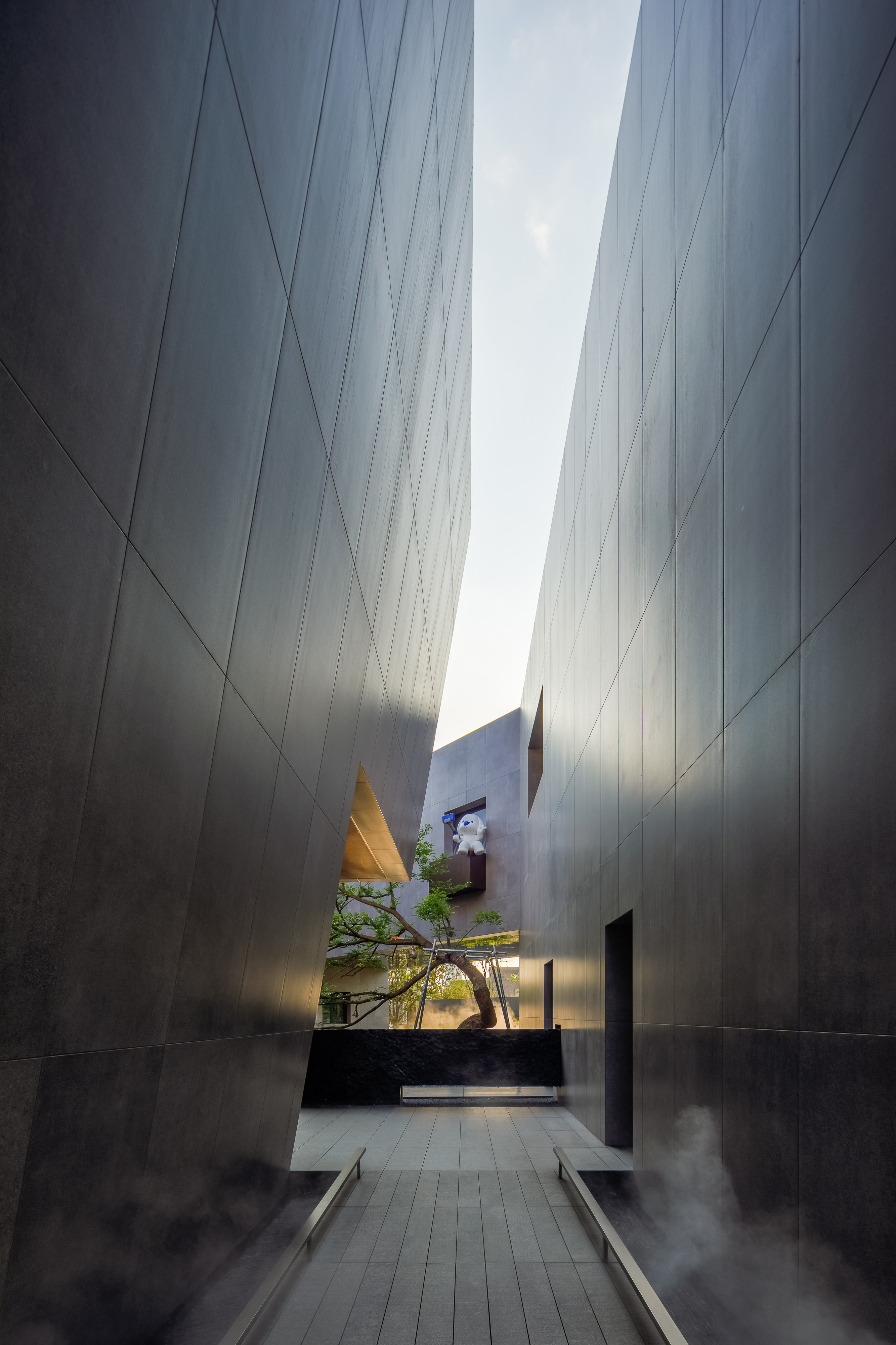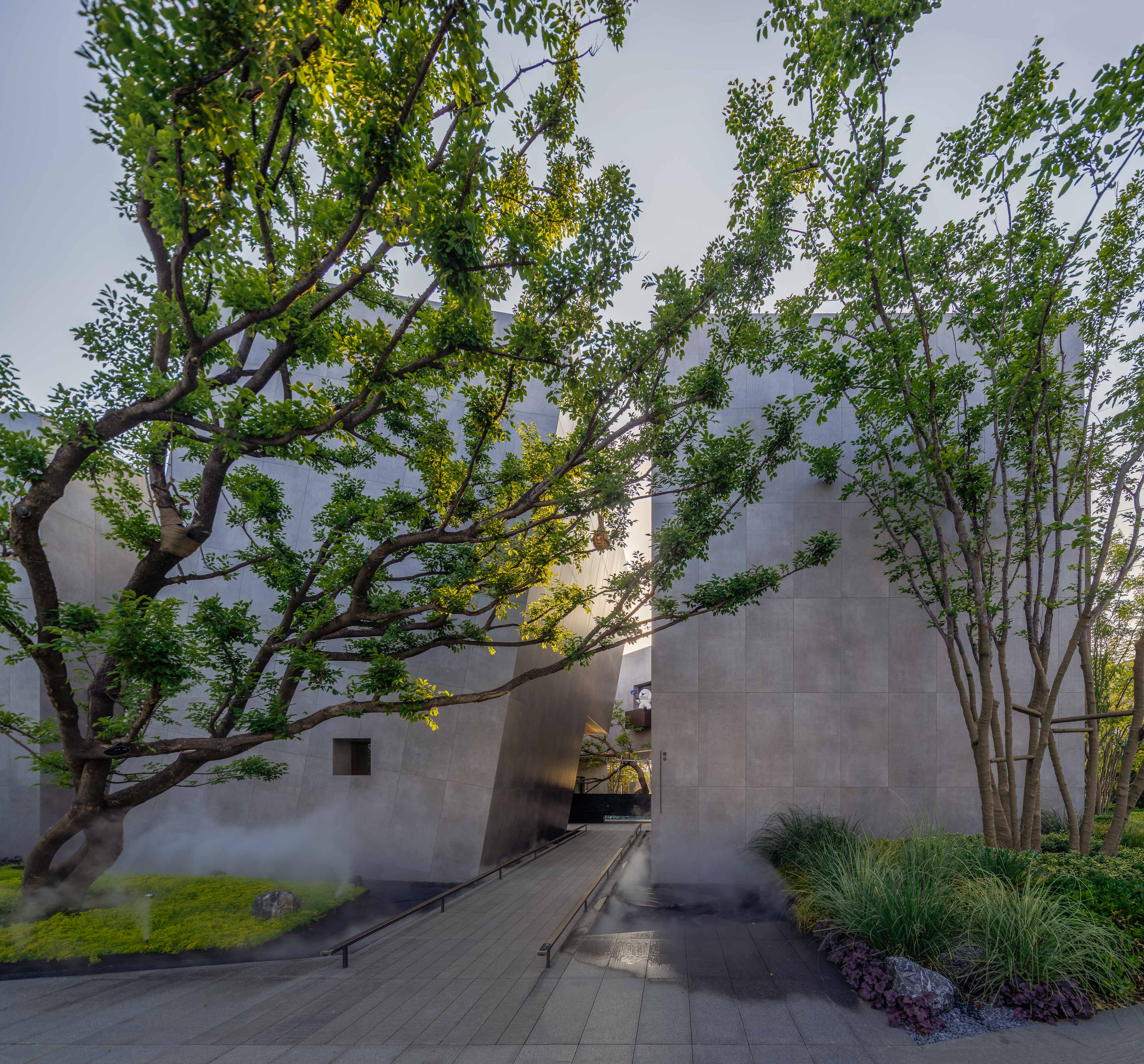 美好生活馆位于两条路的交叉口,外部环境略显嘈杂,建筑设计的初衷是让项目能“隐于闹市”。