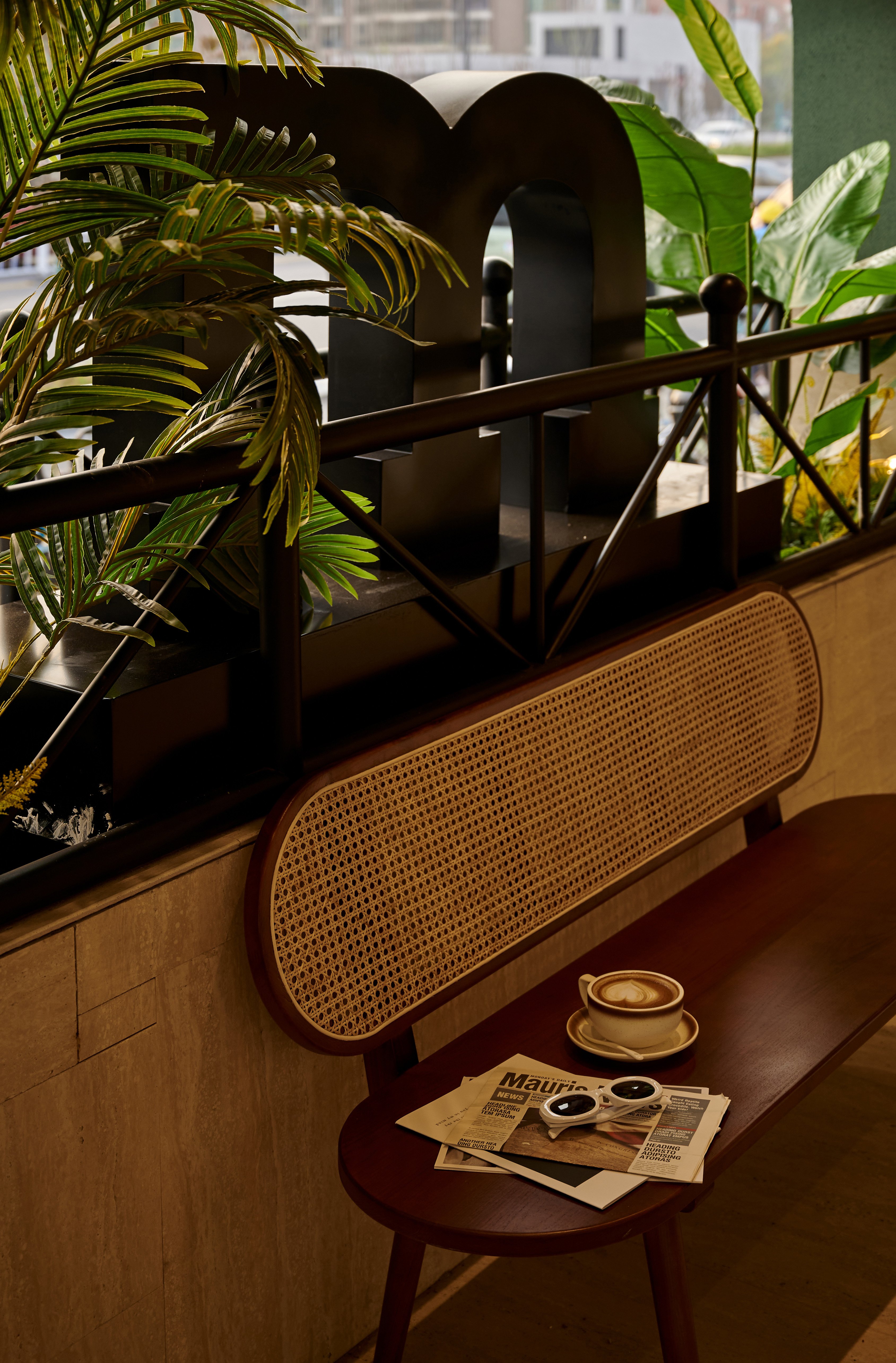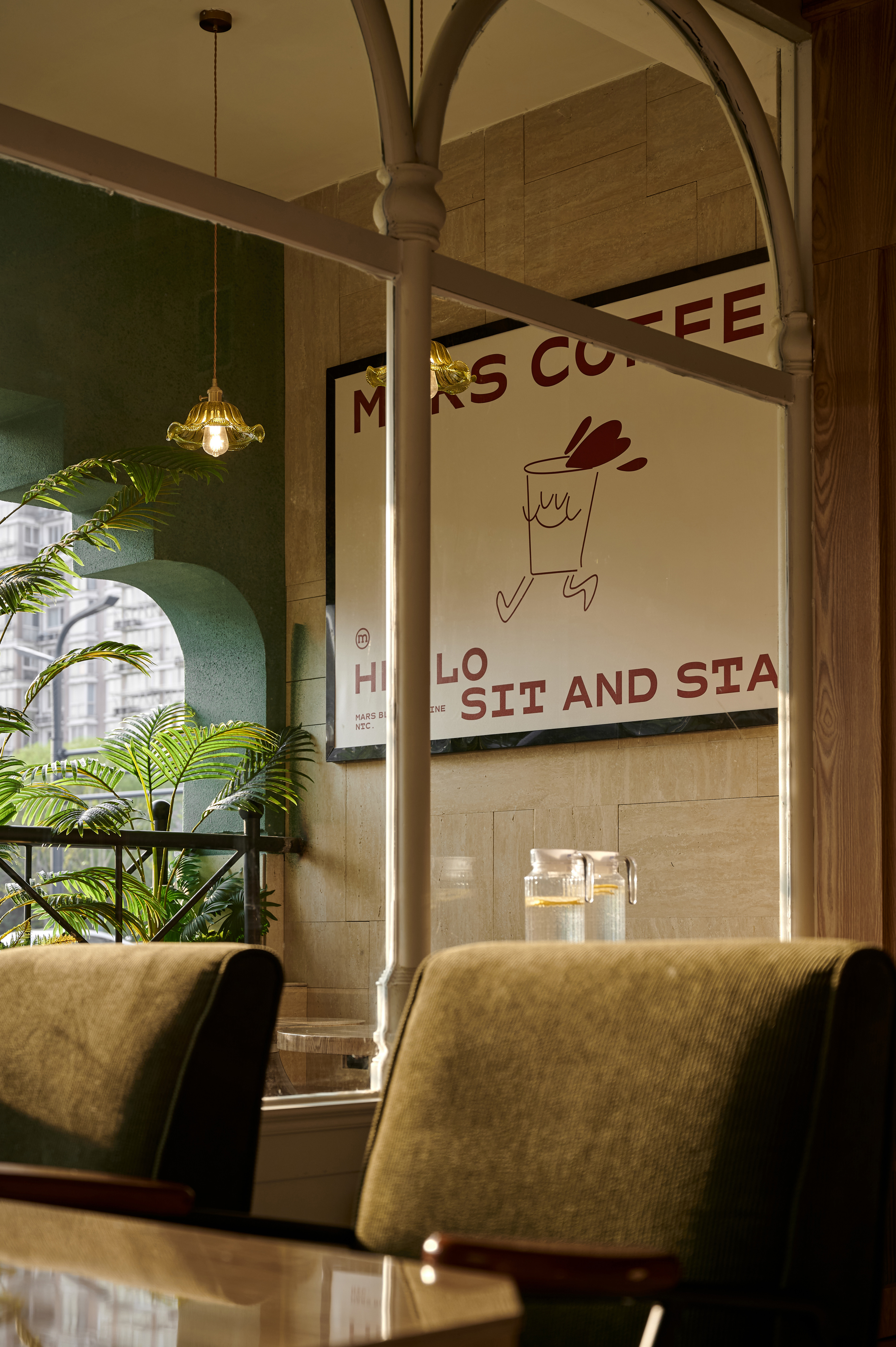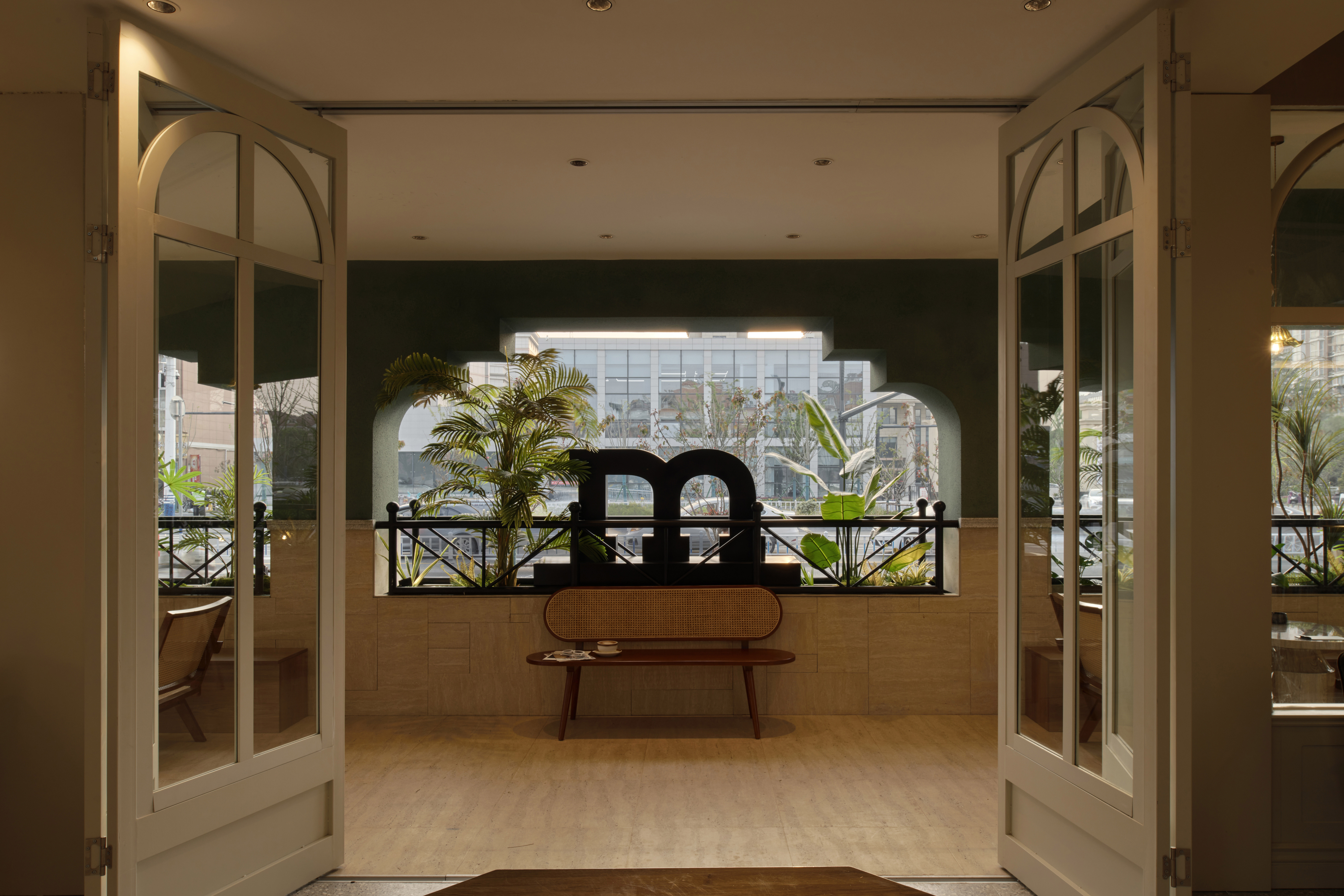 采用斯卡帕解构主义的手法,通过将各个元素进行分解和重构,建筑与视觉艺术紧密结合在一起。 视觉上平稳均衡,充满秩序感,这种秩序感会给人带来心理上的舒适感和愉悦感,打造出一个具有韦斯安德森电影感的空间。