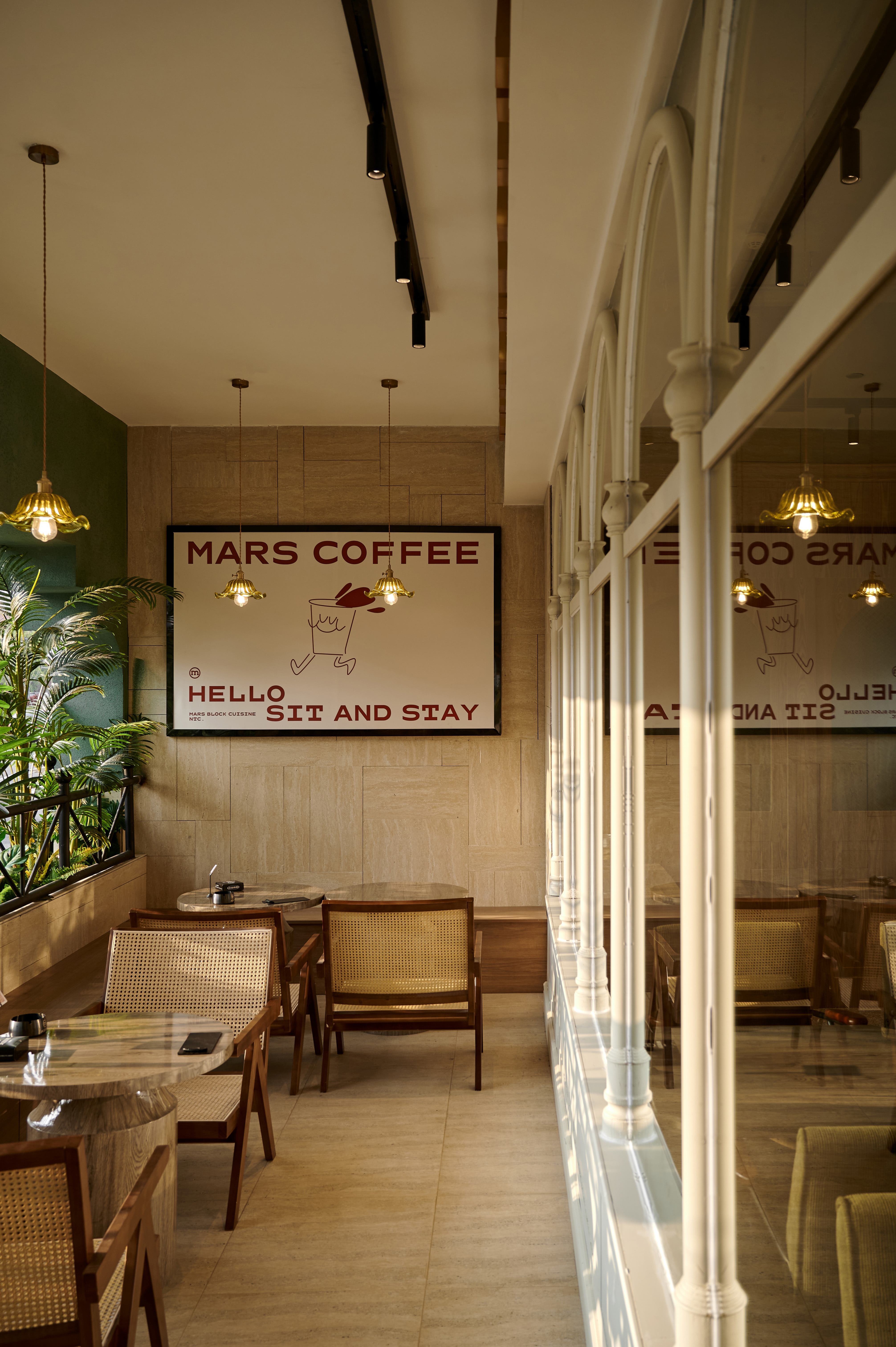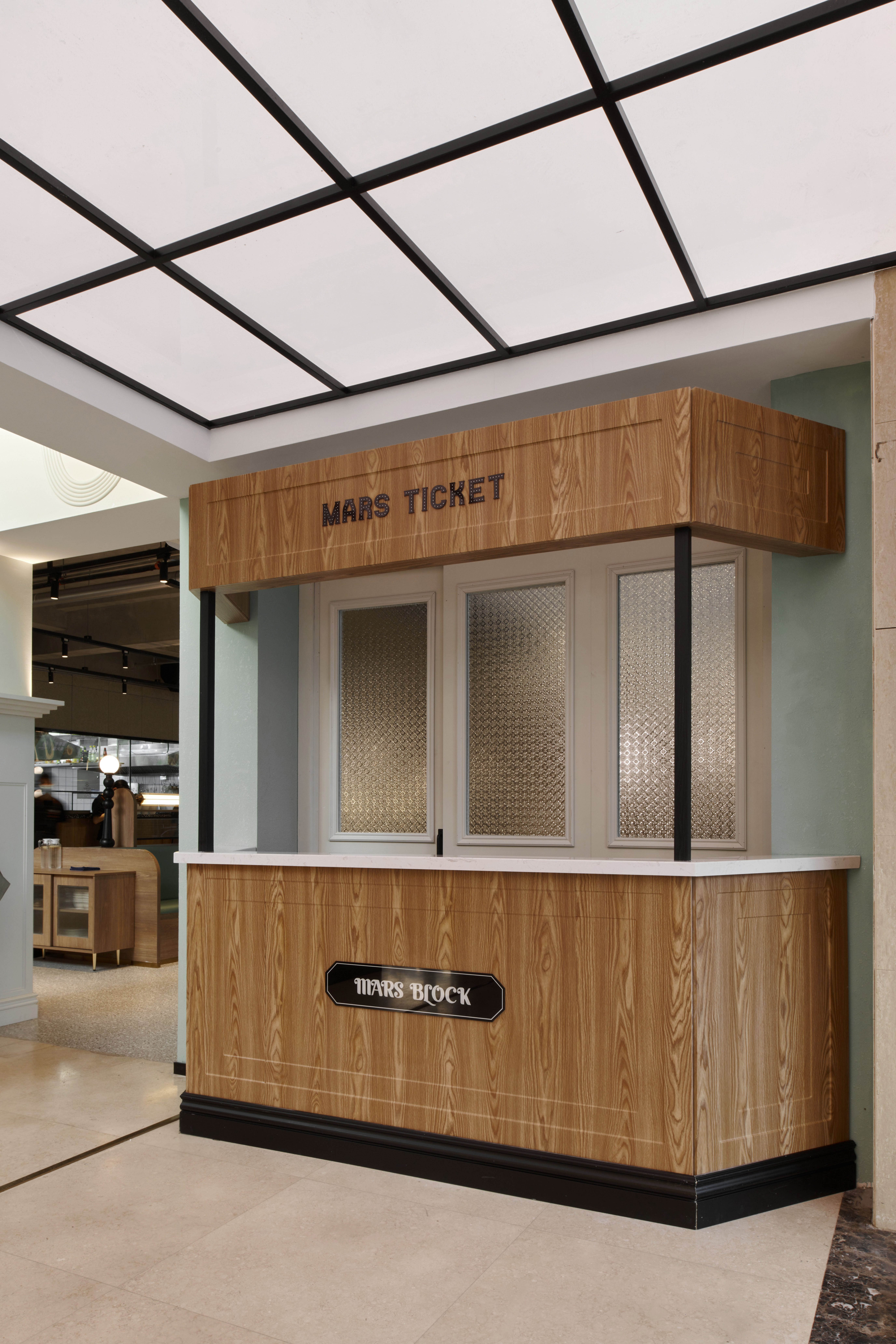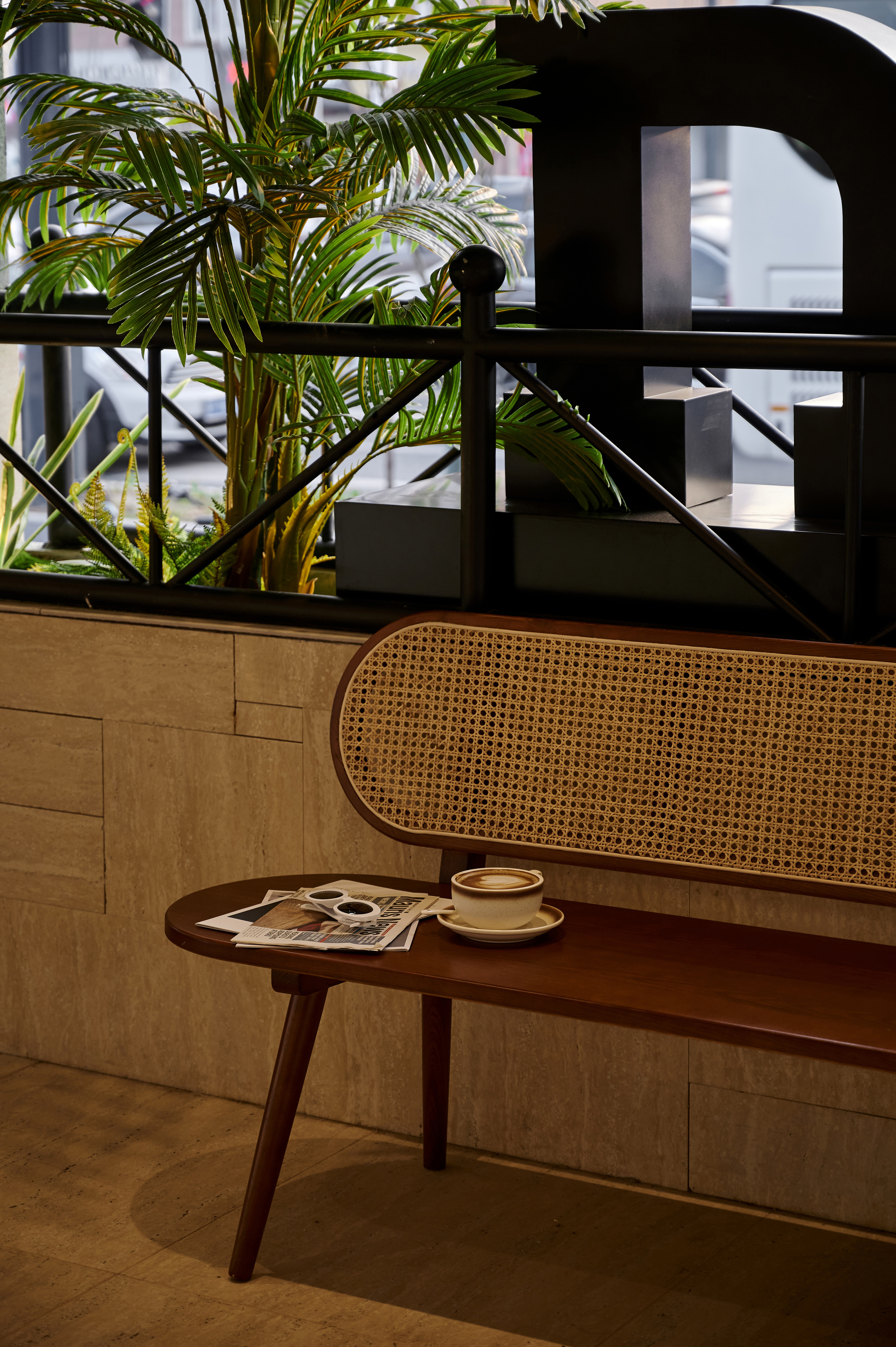 采用斯卡帕解构主义的手法,通过将各个元素进行分解和重构,建筑与视觉艺术紧密结合在一起。 视觉上平稳均衡,充满秩序感,这种秩序感会给人带来心理上的舒适感和愉悦感,打造出一个具有韦斯安德森电影感的空间。