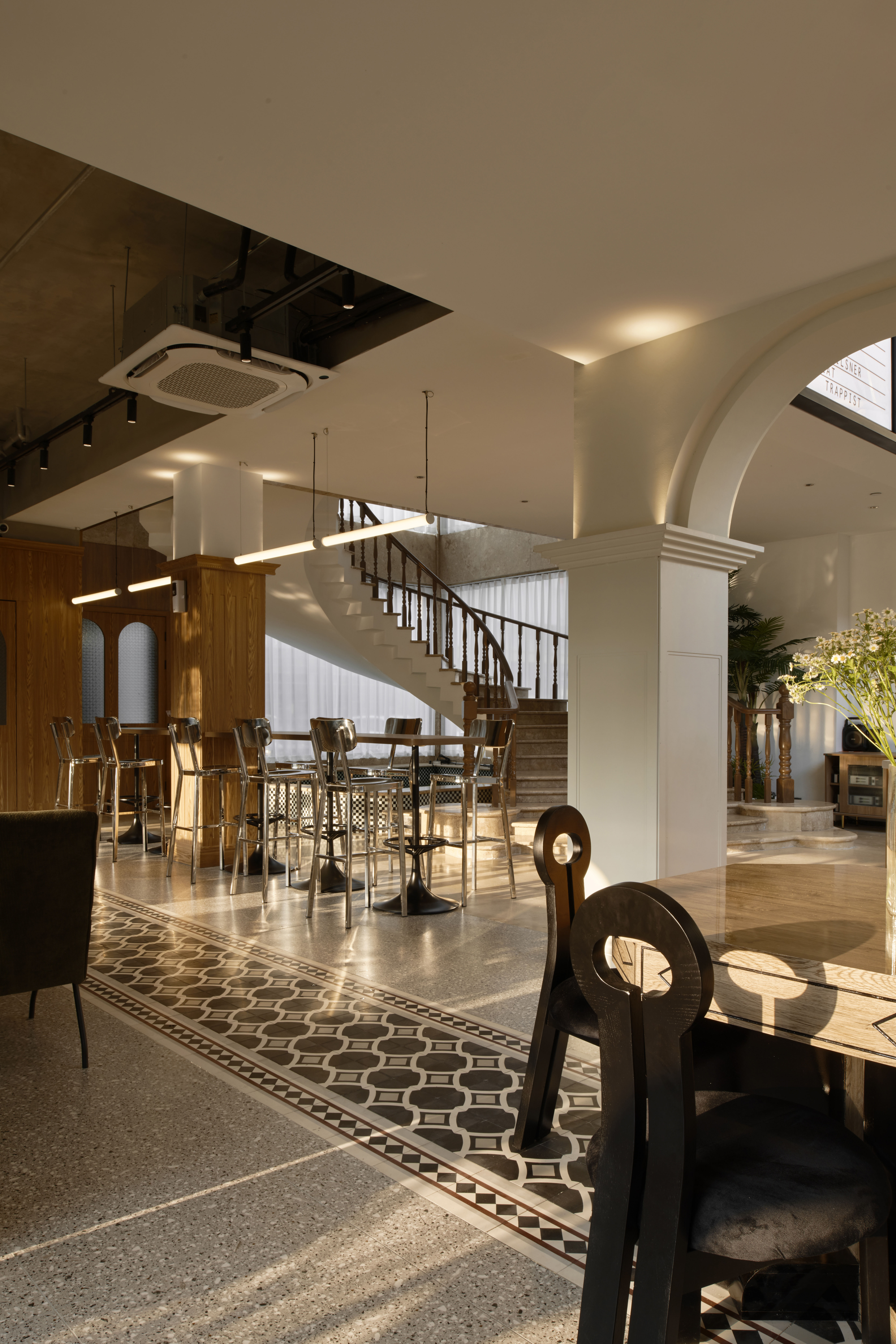 当时尚遇上中古 融合了过去和现代,传统和新颖的元素,以创造出沉稳优雅的氛围为目的,营造出一种既有古典美感又不失时尚感的空间氛围,促成了具有艺术特色和独特设计的餐厅的诞生。