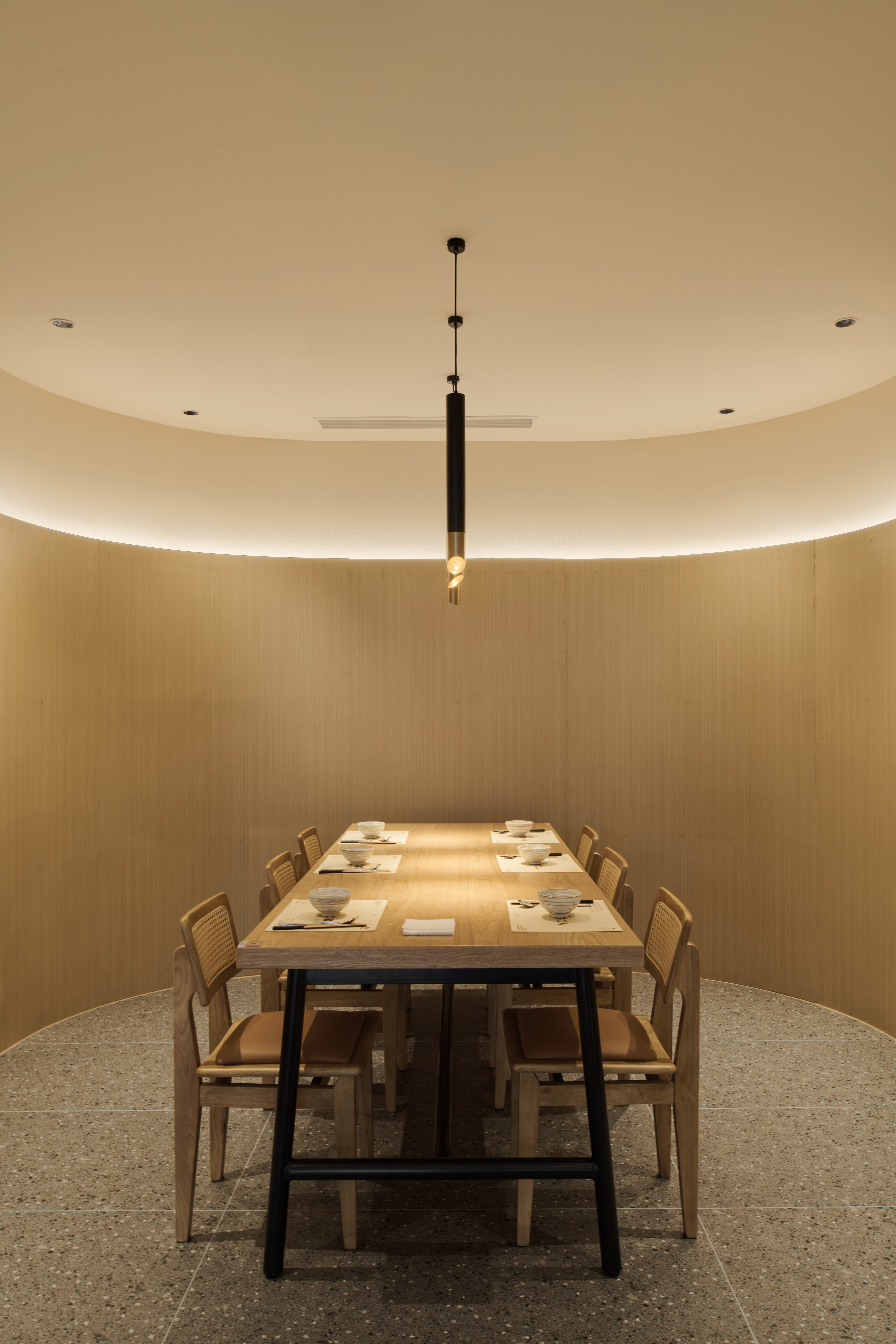 摈弃传统的日式风格与元素,保留局部具象表现以外,更多的是将这种元素转化为设计修饰。我们将不同的功能性区域都进行了明显的划分,根据角度、动线梳理成一个既边界明确又能保证整体性的空间,使空间展现更多的层次感以及给人带来更多的体验感,与品牌想要表达的张弛与利落感相契合,赋予产品和环境传达给每一位顾客。