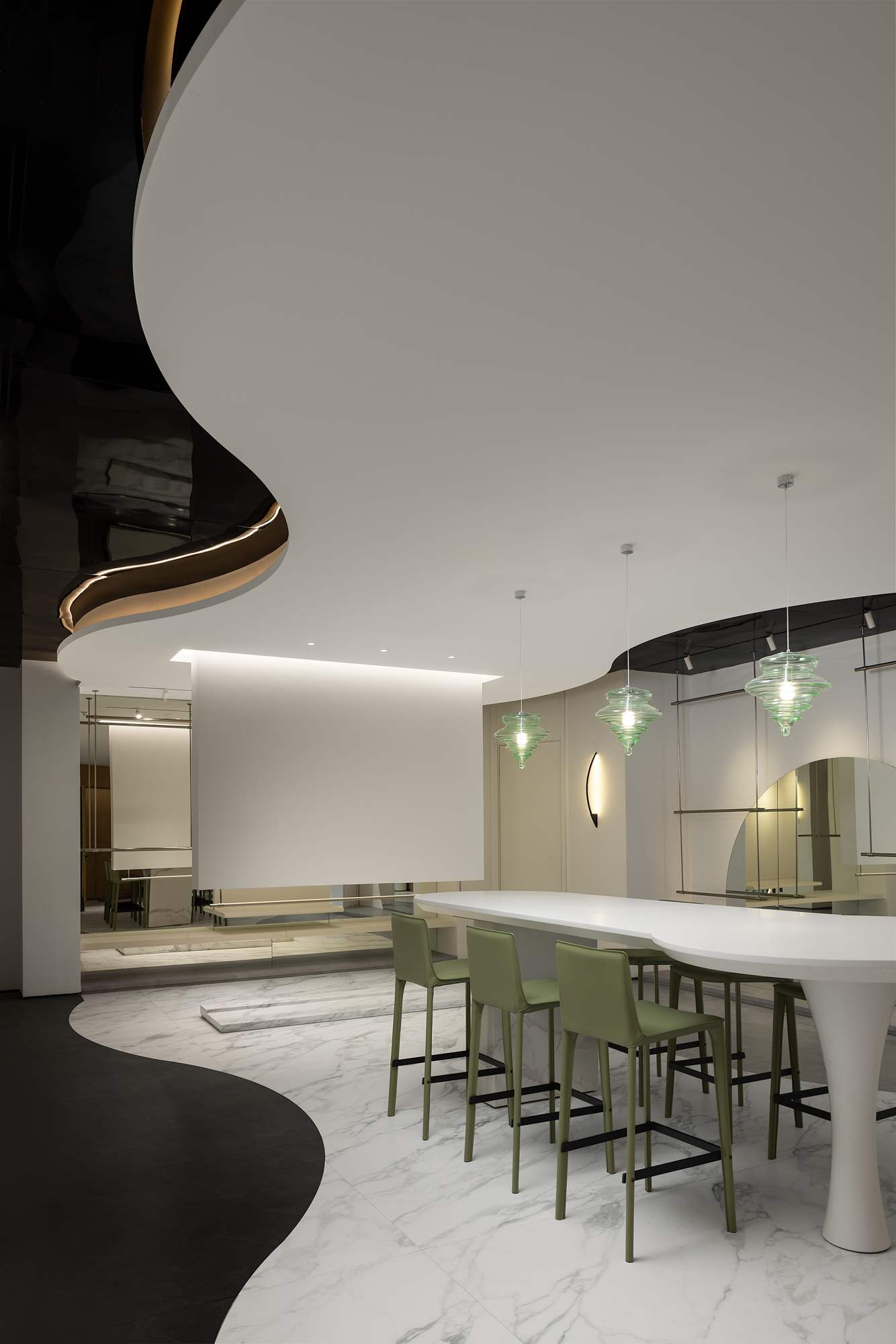 设计师办公区,爆单的产品需要认真探索和独立展示,岩板视觉中心的引导为他呈现,犹如舞台聚光下的“演员”。