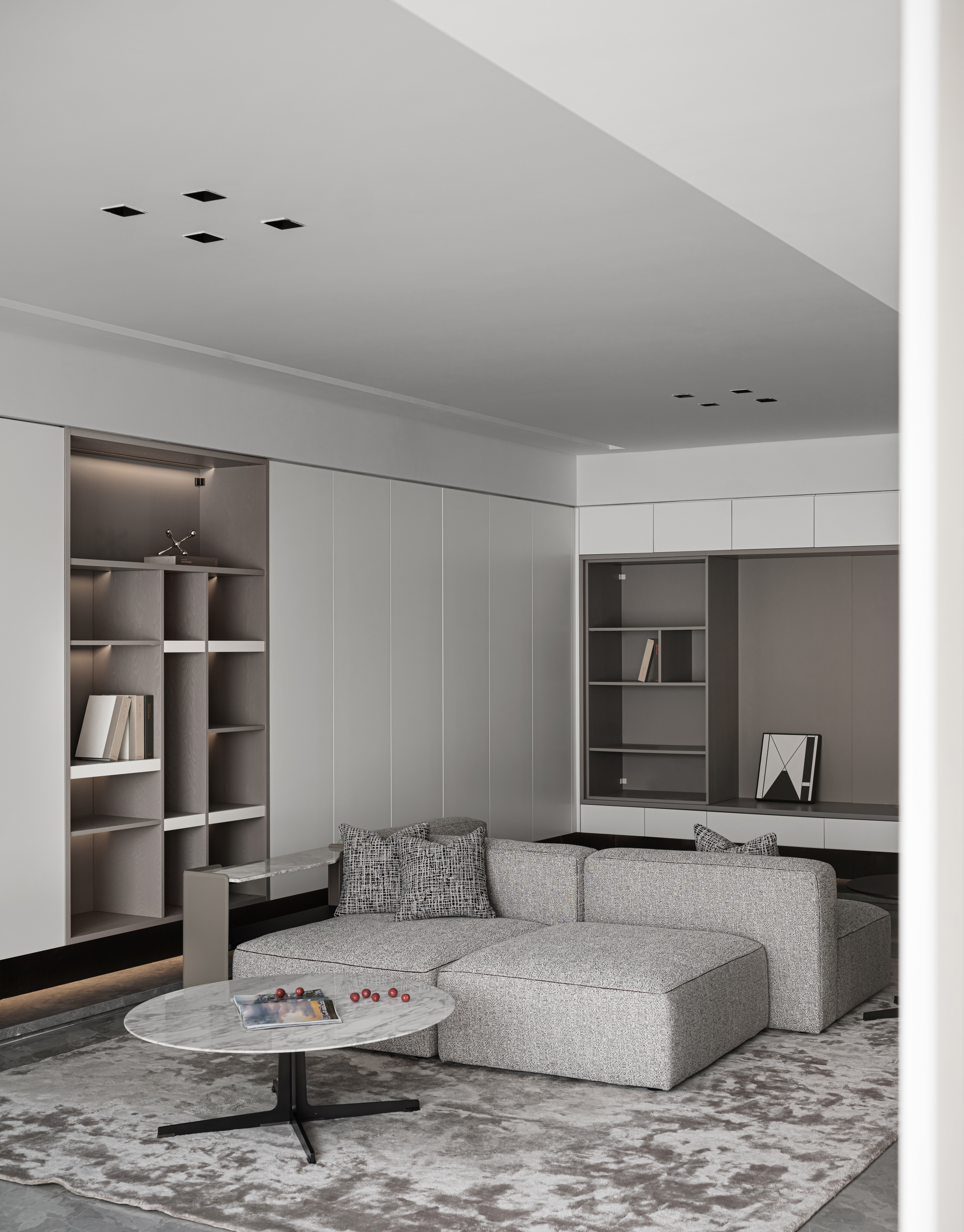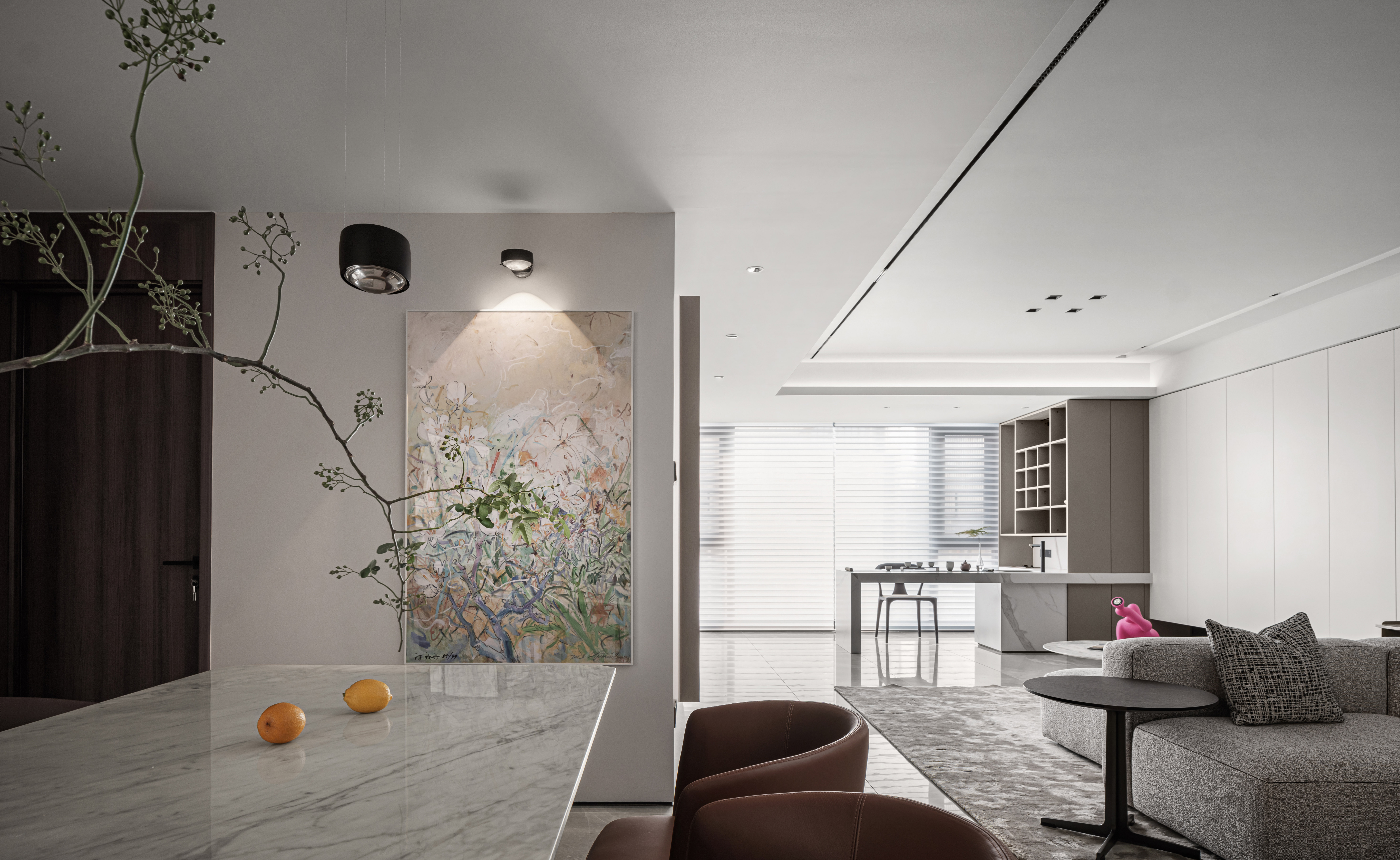 业主是一个四口之家,女主人是一位干练精致的教师,男业主是某集团副总裁,她对“理想生活诉求”有着自己的理解,即适合自己的“家”,才是最美的。因此设计师希望这套房子强调“家的体验”,更是一个从内到外探寻最开敞、舒适的体验空间。从归家的那一刻起,围绕家庭共处、亲子交流的公共空间属性展开,让他有更多的可能“融”入到这个空间。这是一个承载着一家人过去、现在和未来的居所,更是在这里演绎着每个人不同阶段的生活方式。