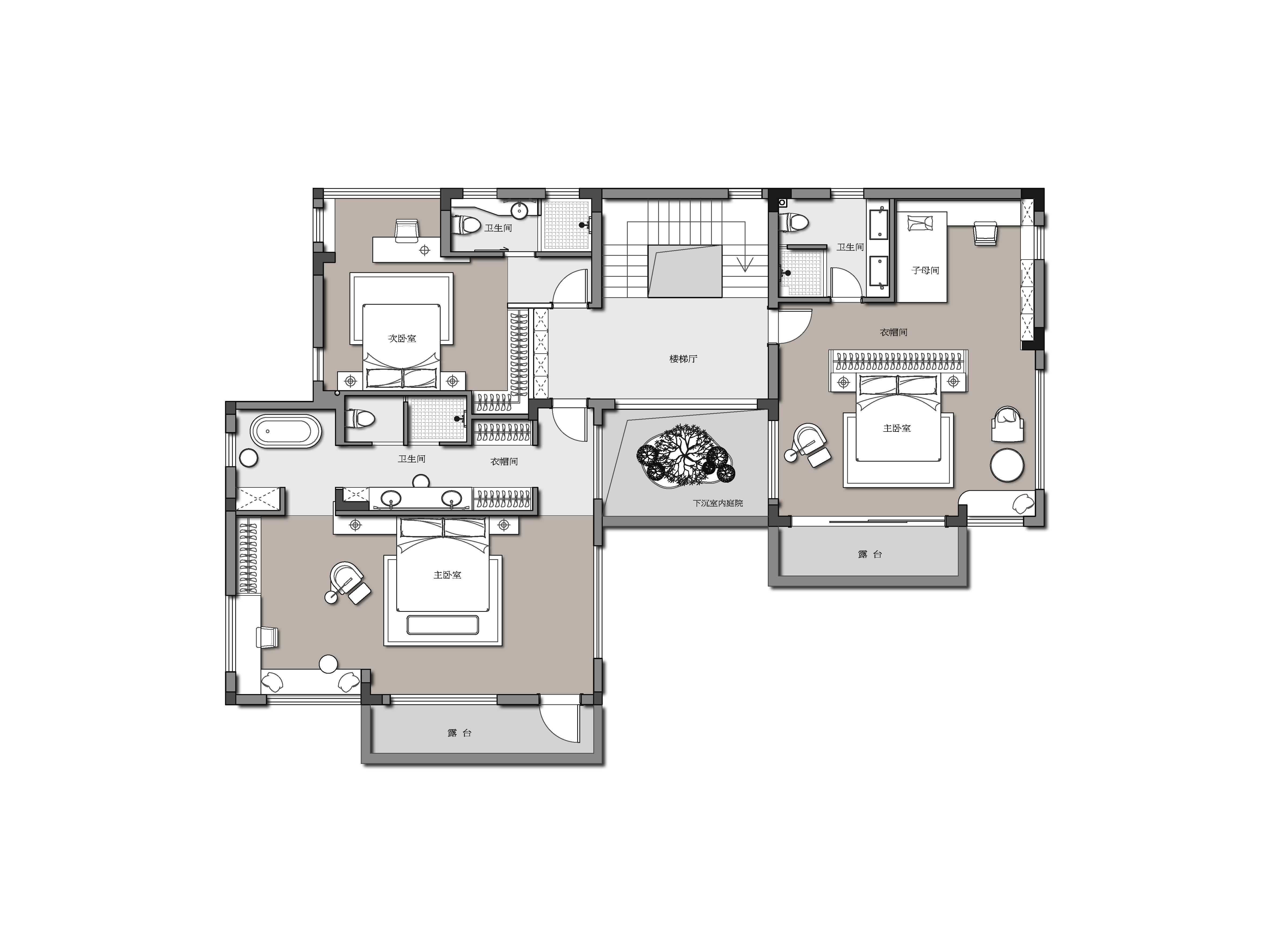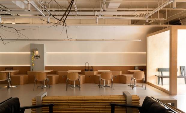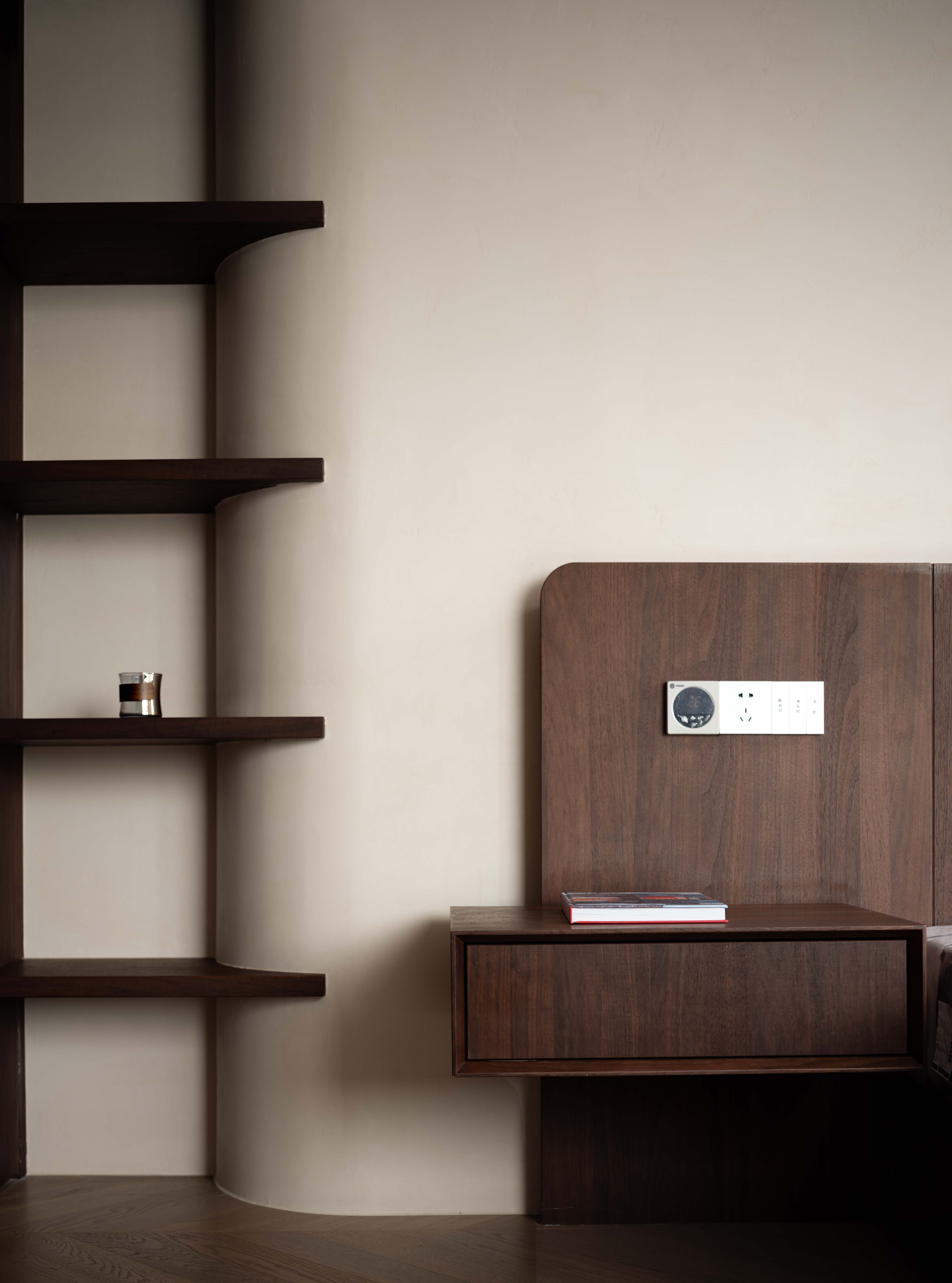 设计选材:整体空间以乳胶漆为主,木饰面为辅。