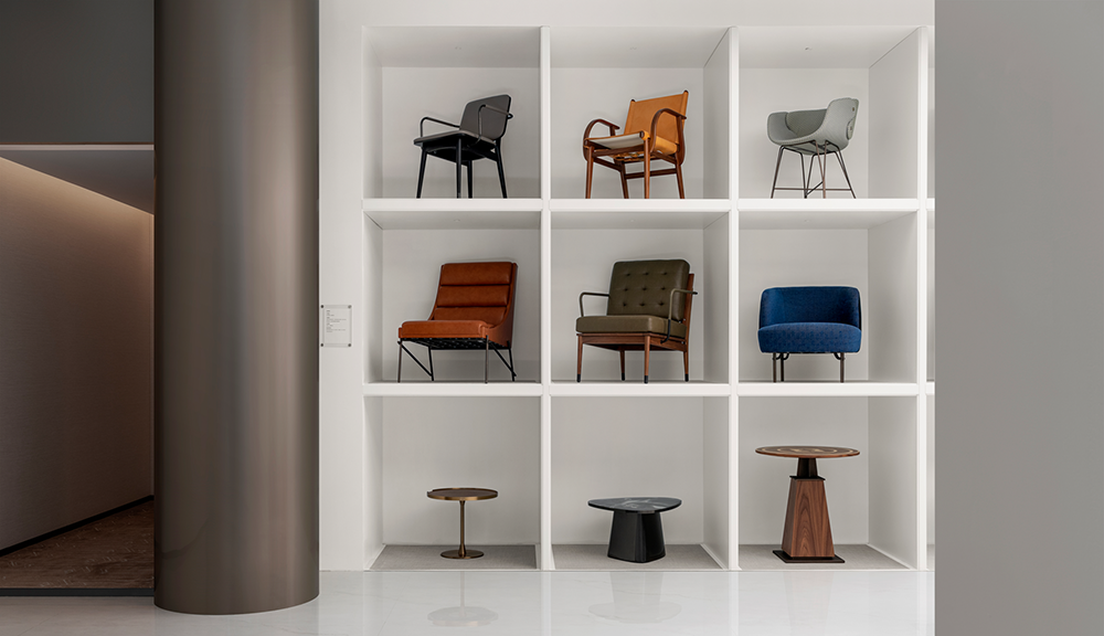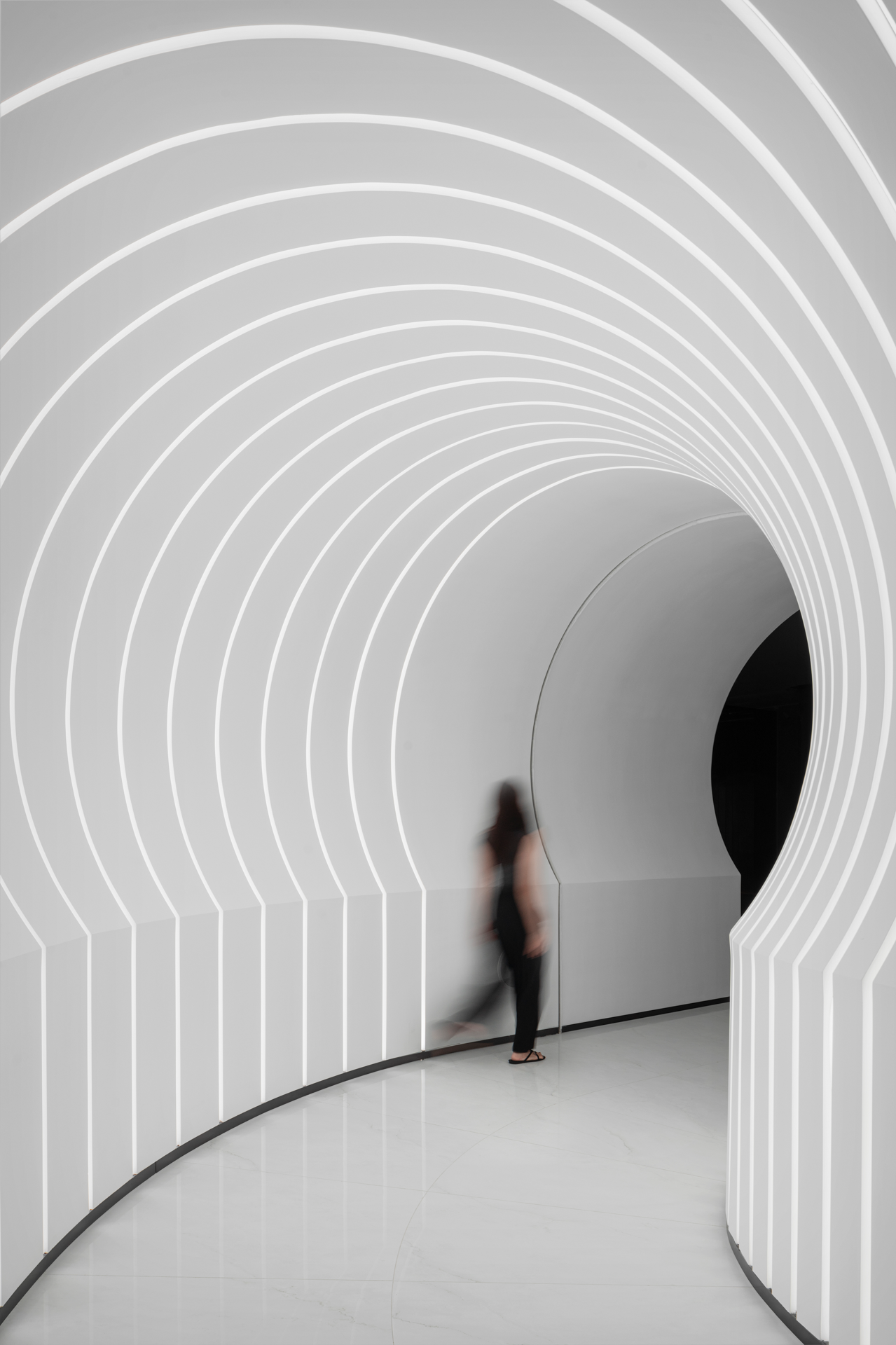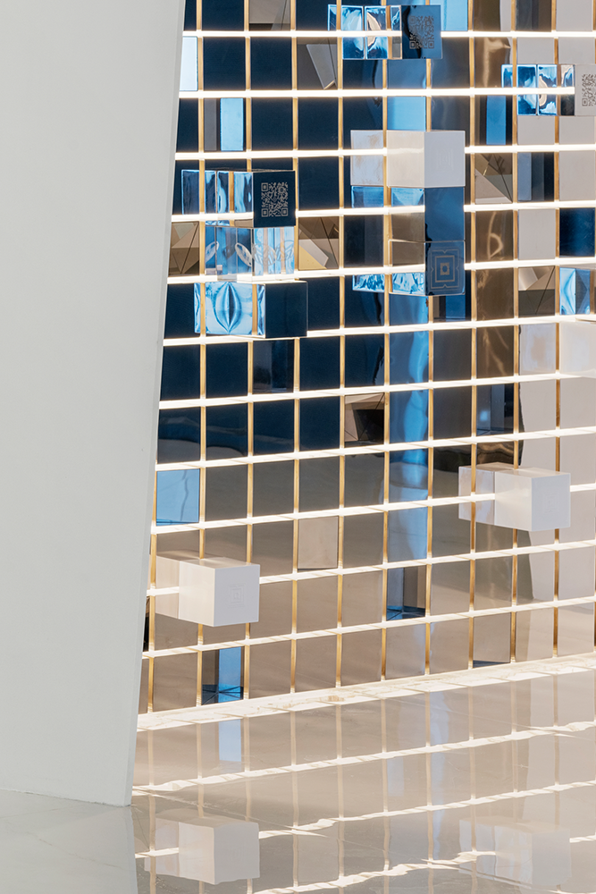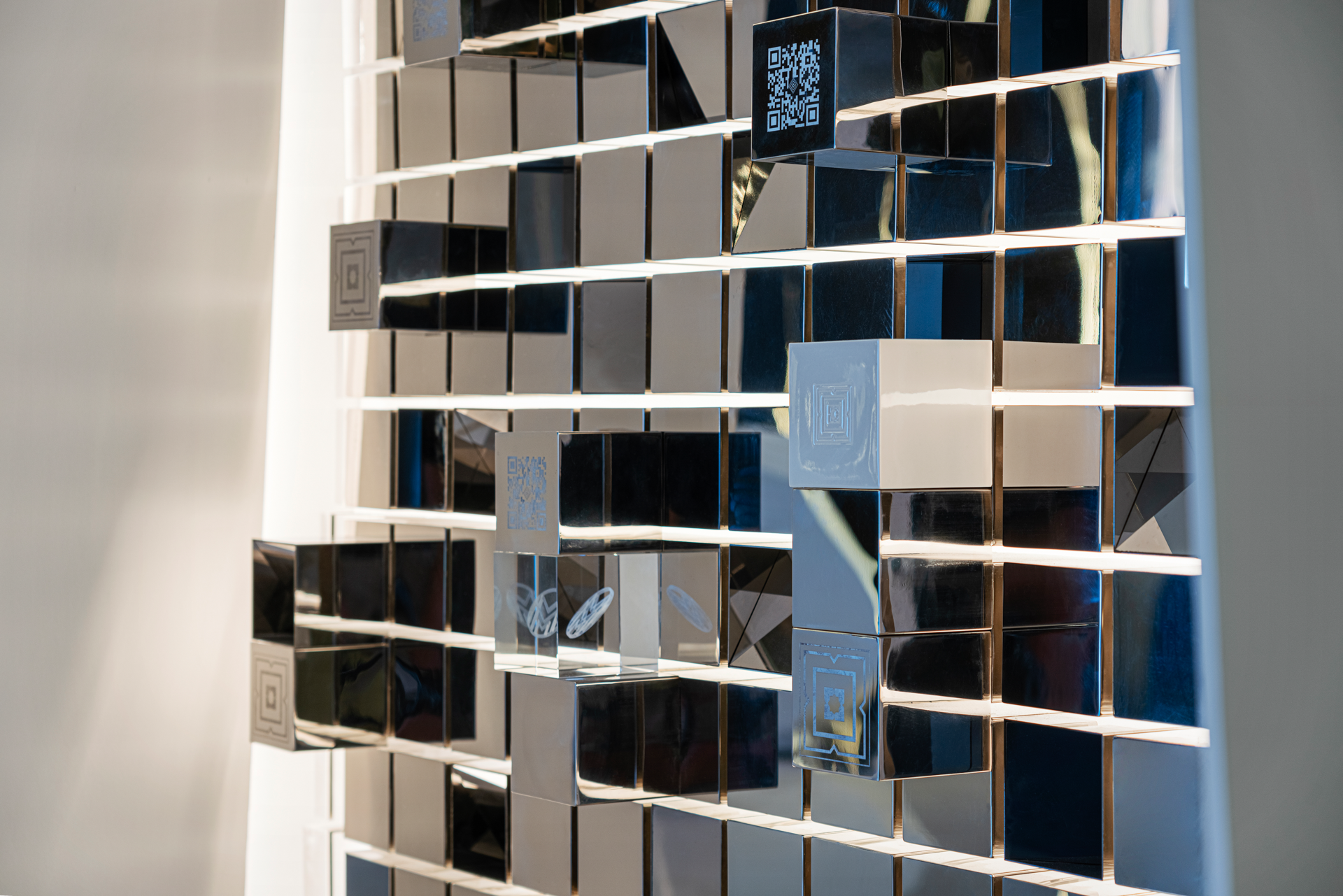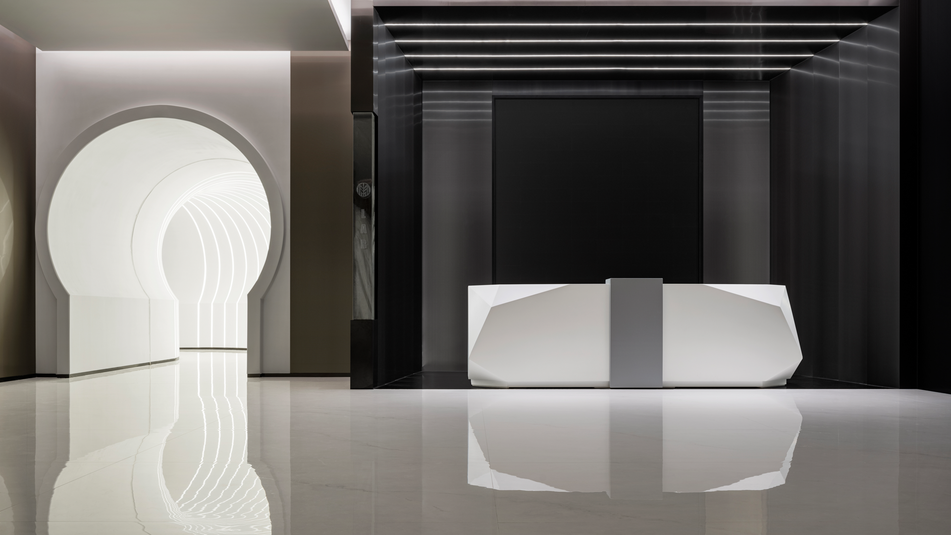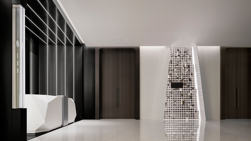 空间意境:参观者通过一条体验过道进入我们的金茂实验室,首先映入眼帘的是大堂空间的艺术品 ---- 幻方万象,运用“格物致知”的理念打造,魔方由小块组成,存在中心轴,打开空间的无限可能。通过“格物”的实践,以魔方为起始点、探索变与不变之间错综缠绕的关系,以镜面效果放大裂变效应,在看似无序的现象中发现不变的本质。金茂幻方的细节和结构是在金茂文化中提炼出来的,代表了金茂服务和身份的最高水平。
