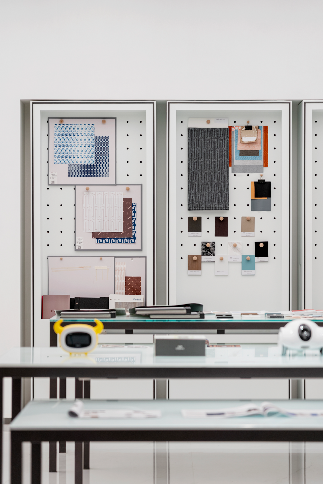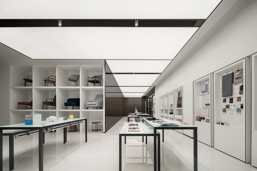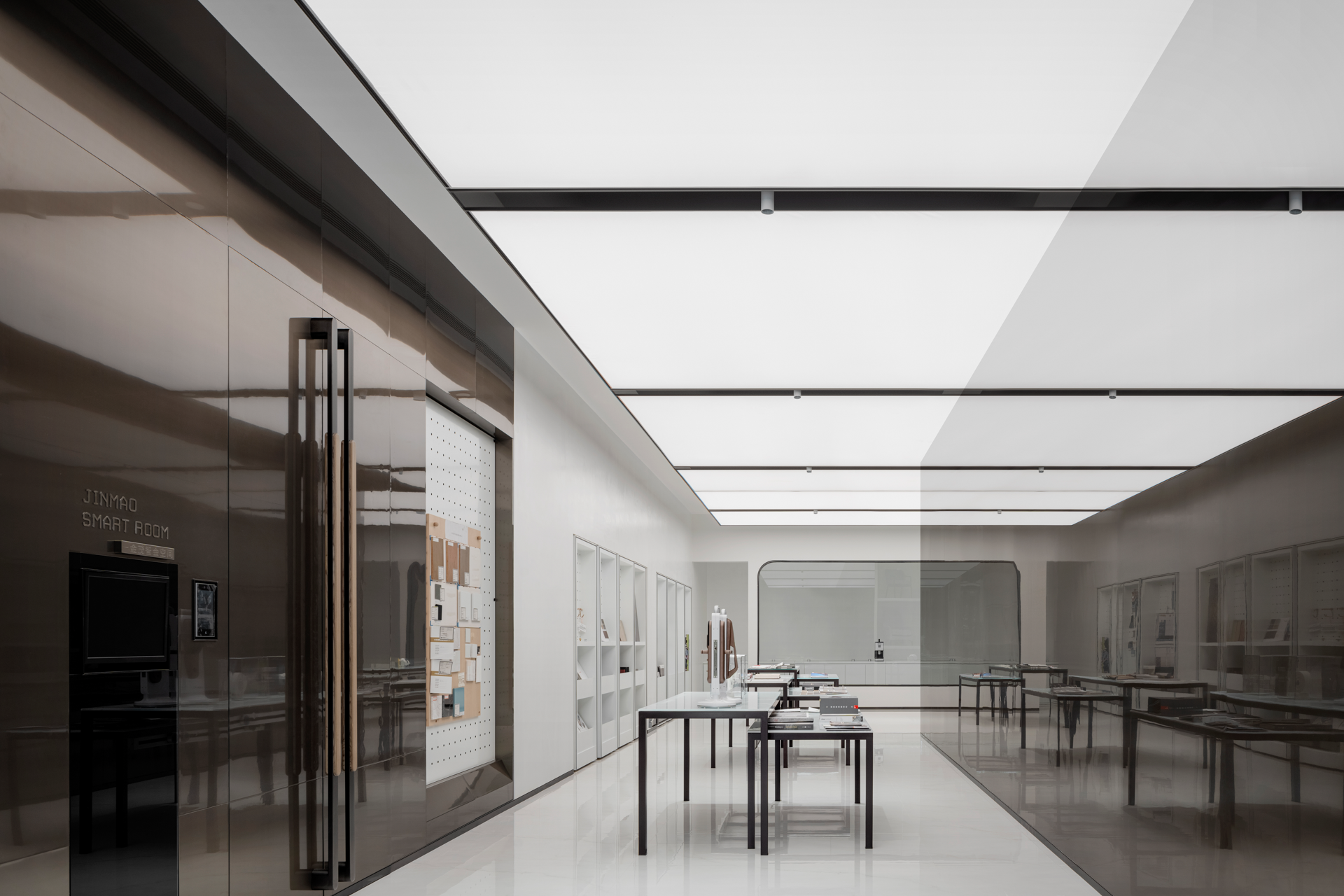 用户体验:在金茂综合实验区里能找到为金茂量身定做的家具、纪念品和小物件以及运用在空间里的材料展示。客人们可以在这里自由组合活动家具,尝试搭配的不同可能性。而专门打造的会议空间 – 金茂智会间/金茂智趣坊,科技在此运用得淋漓尽致,整个弧形墙面都可用做投影屏,天花的灯光可根据会议的不同内容来调整。科技使会议变得更加便捷与高效。