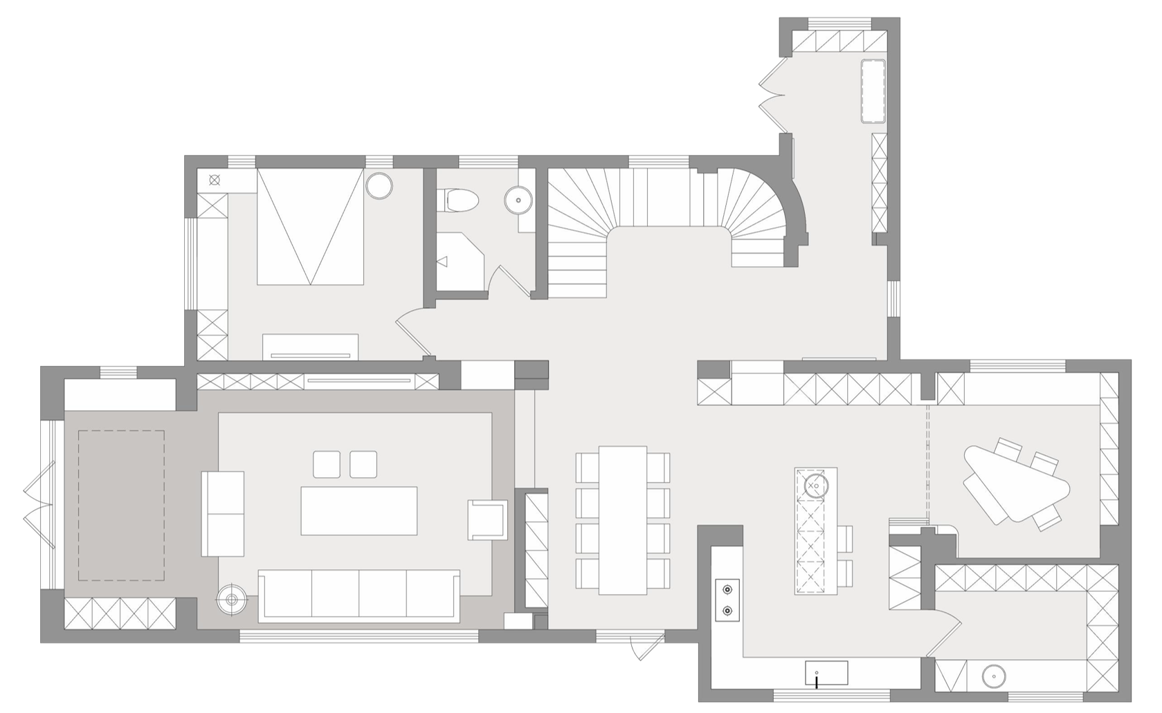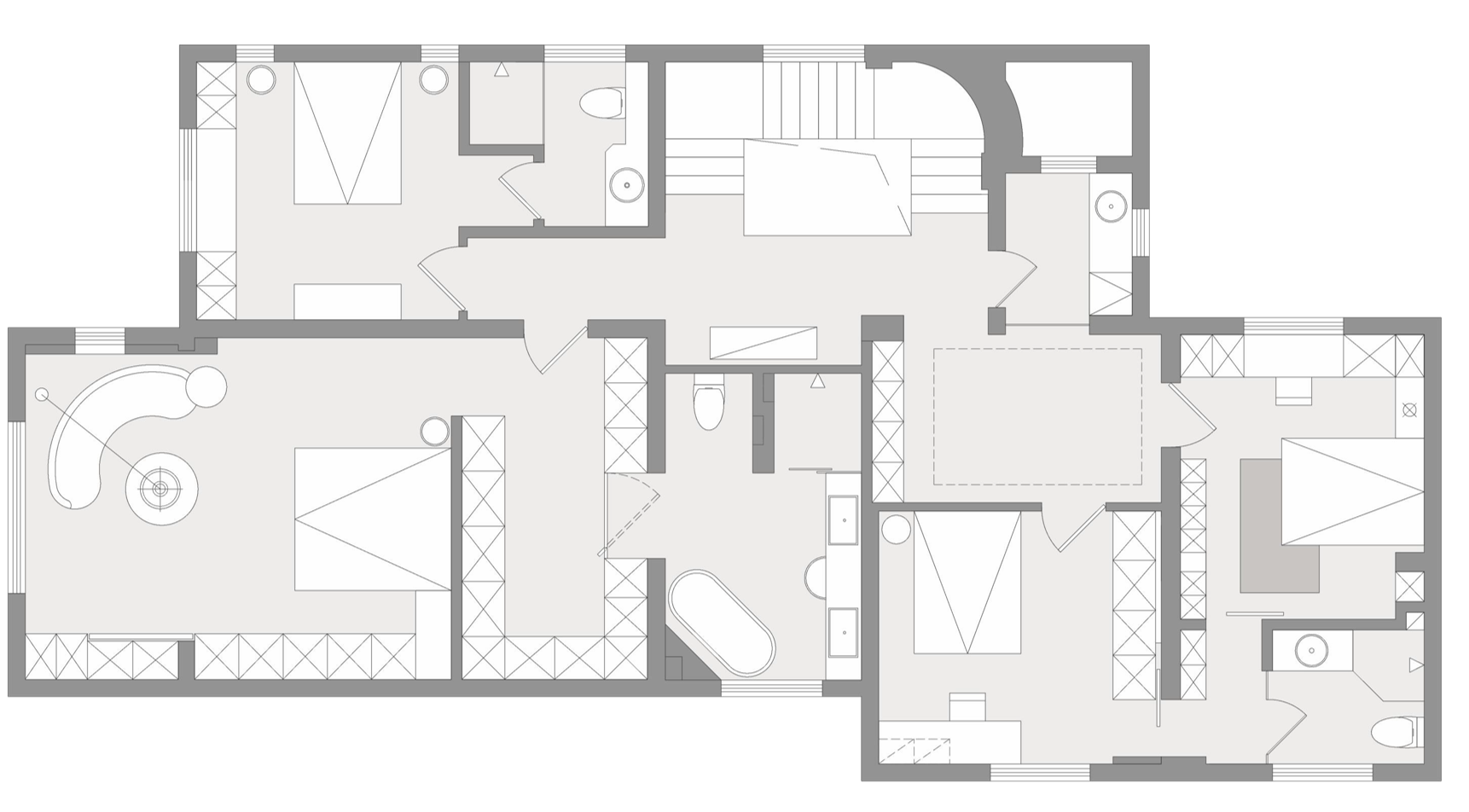 项目定位:原始解构的房高均为3.3米以上,对于房高相对高的空间,跨度将显得极为重要,同时在处理立面造型的同时,也要考虑定制产品尺寸的局限性。