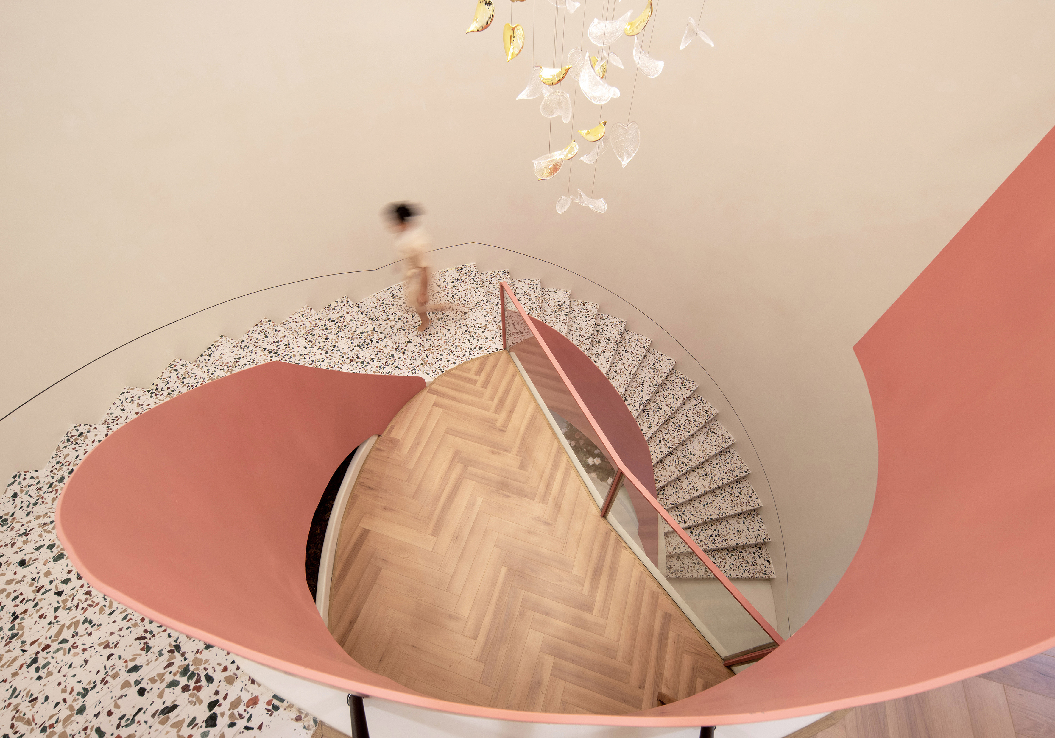三楼旋转楼梯俯瞰一二层