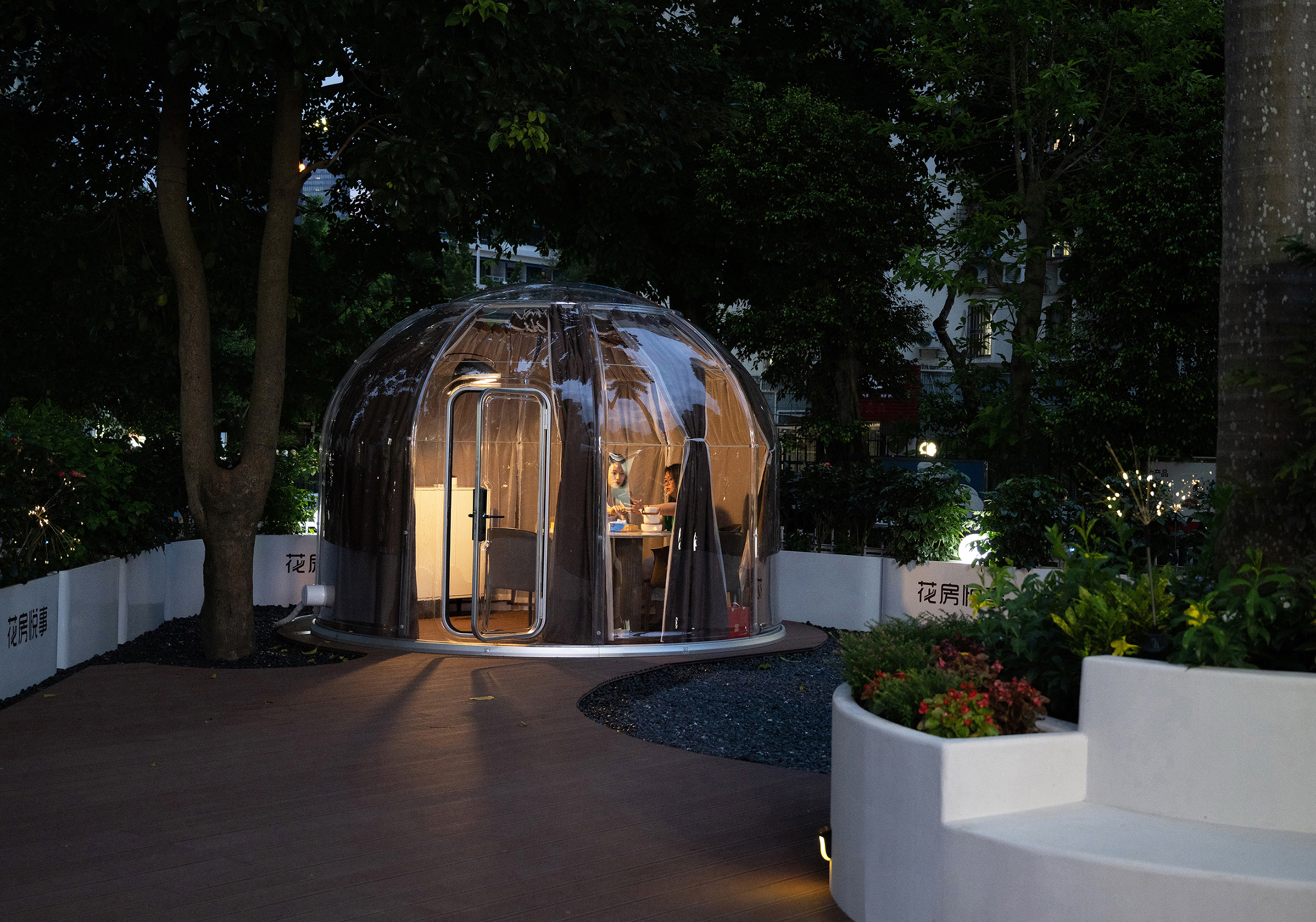 夜晚的露天花园透明星空房