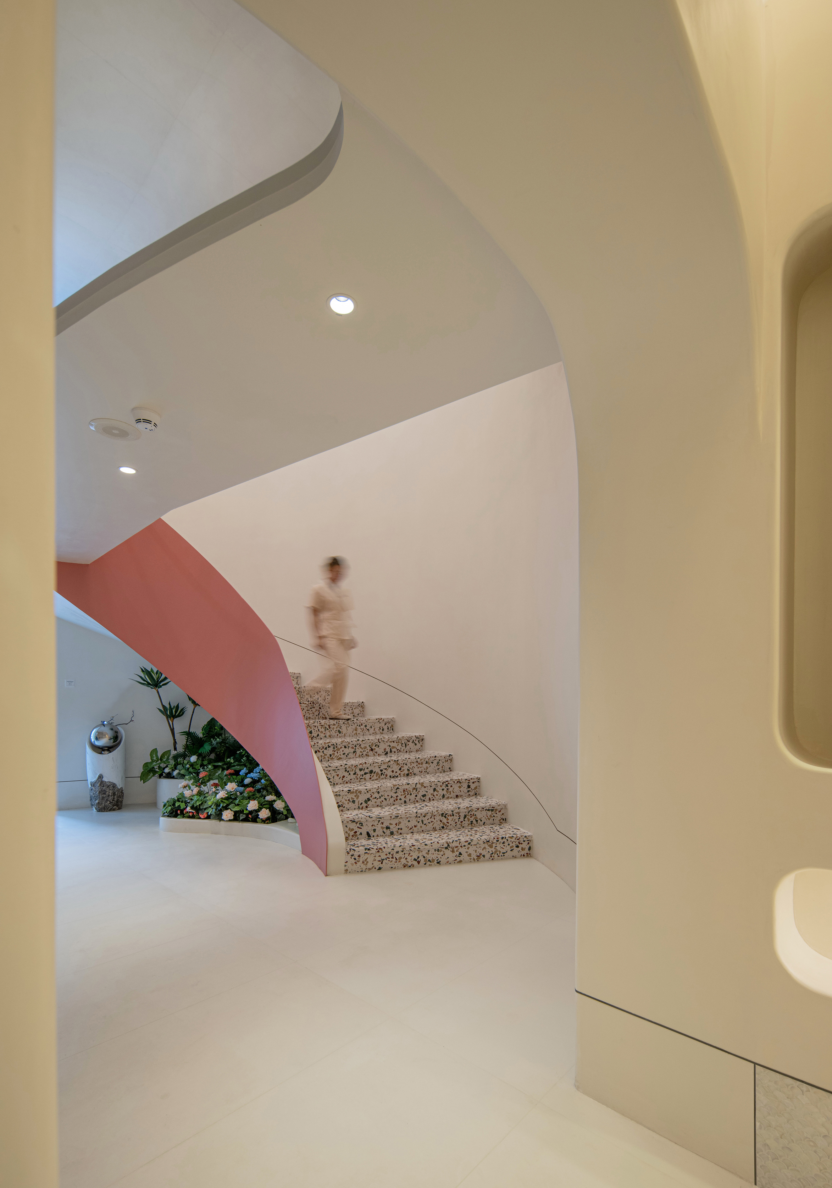 一楼旋转楼梯底部造景