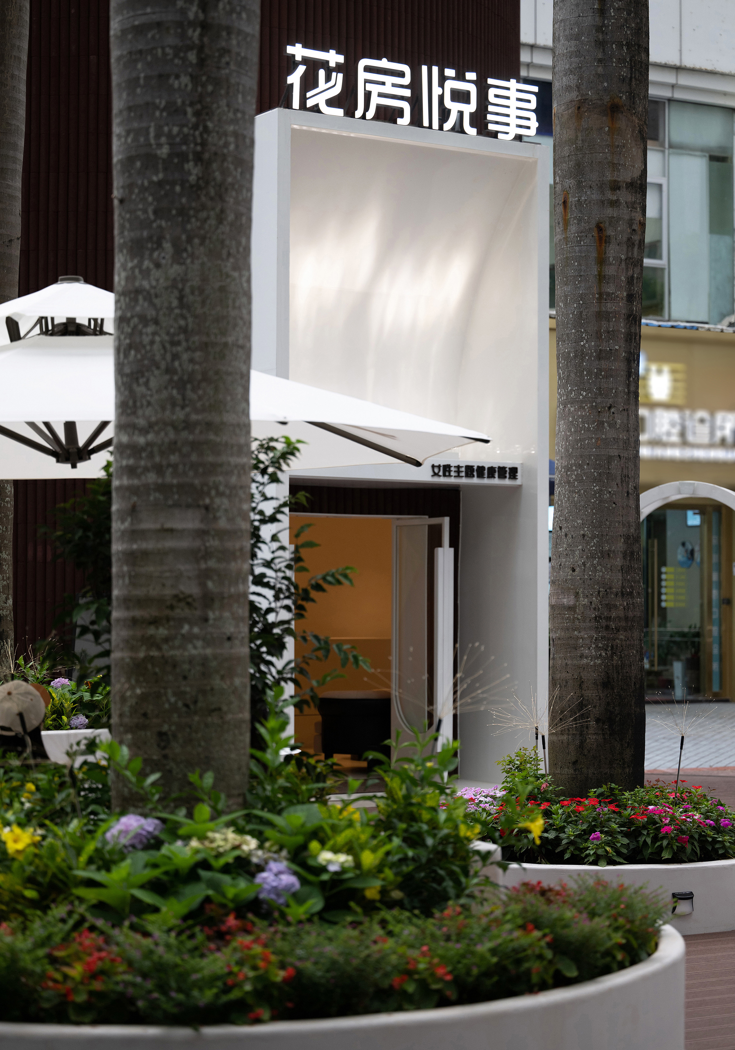 用户体验:在深圳这样一个快节奏的都市,而且是福田百花片区,有这样一个独特的建筑和露天花园,平时有大量居民和消费者驻足观看及进入体验。特别是该片区的深圳实验学校初中部的女性家长们,经常在此聚会和各种活动交流。花房悦事店不光给女性身体健康带来治疗和管理,更得人心的是它有一个可以集休闲、活动于一体的露天聚集场所。