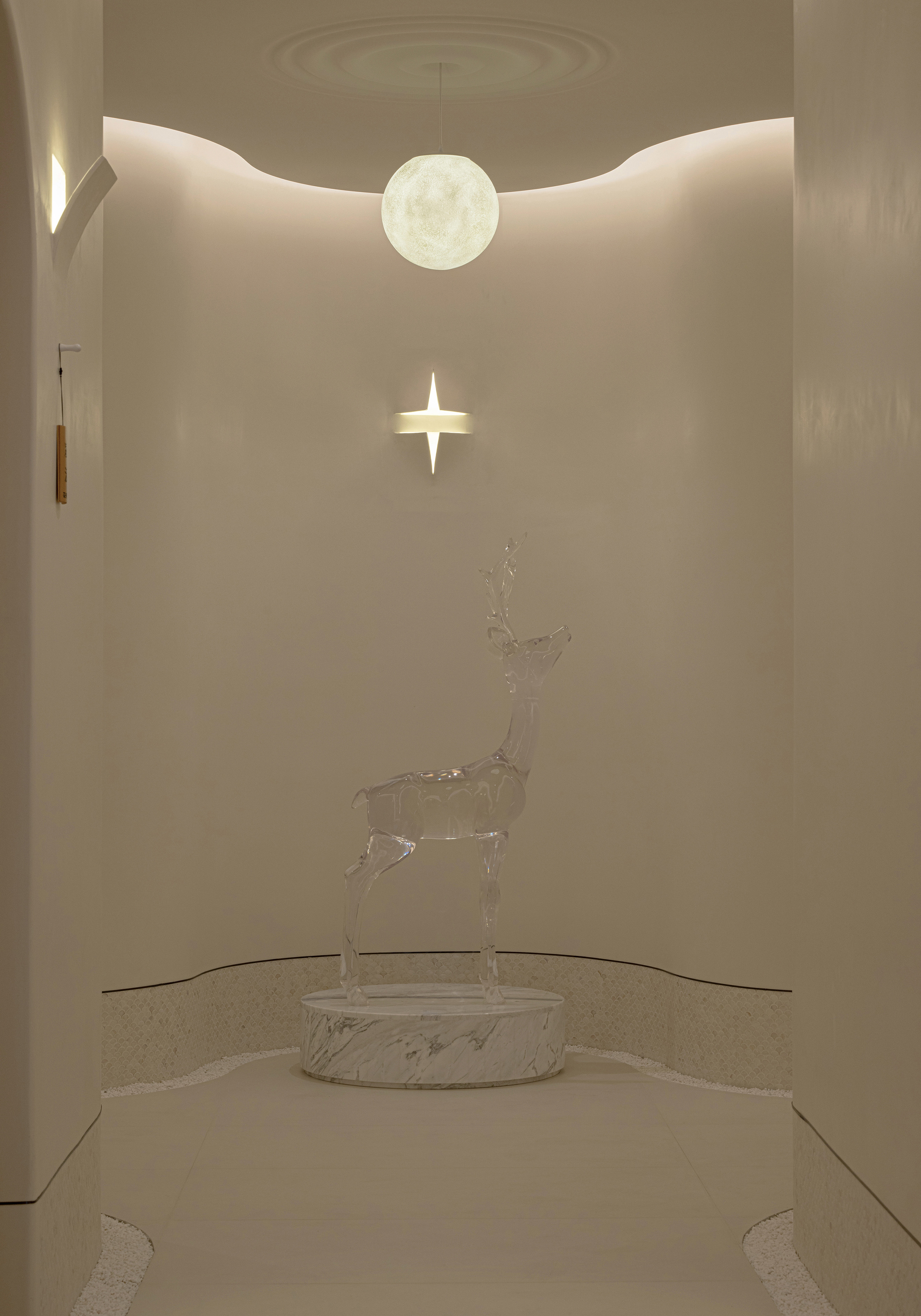 理疗室过道水晶鹿及翻页灯景观造景