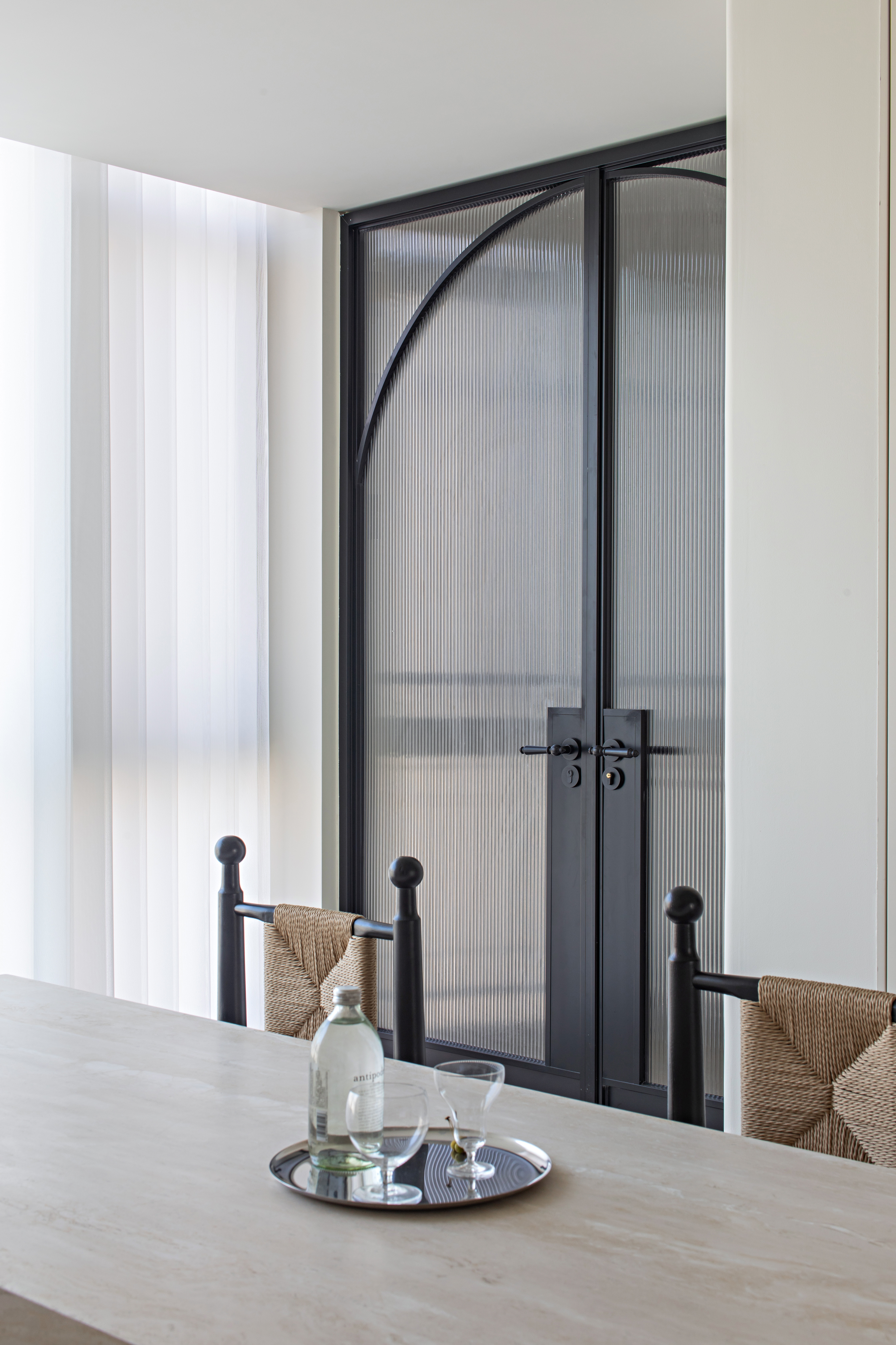 The small dining area past the long table satisfies the dining needs of a family of four and complements some of the water bar functions that the central kitchen lacks. A cup of coffee, a book, lingering in the whole space, brings a soft and quiet tranquility.