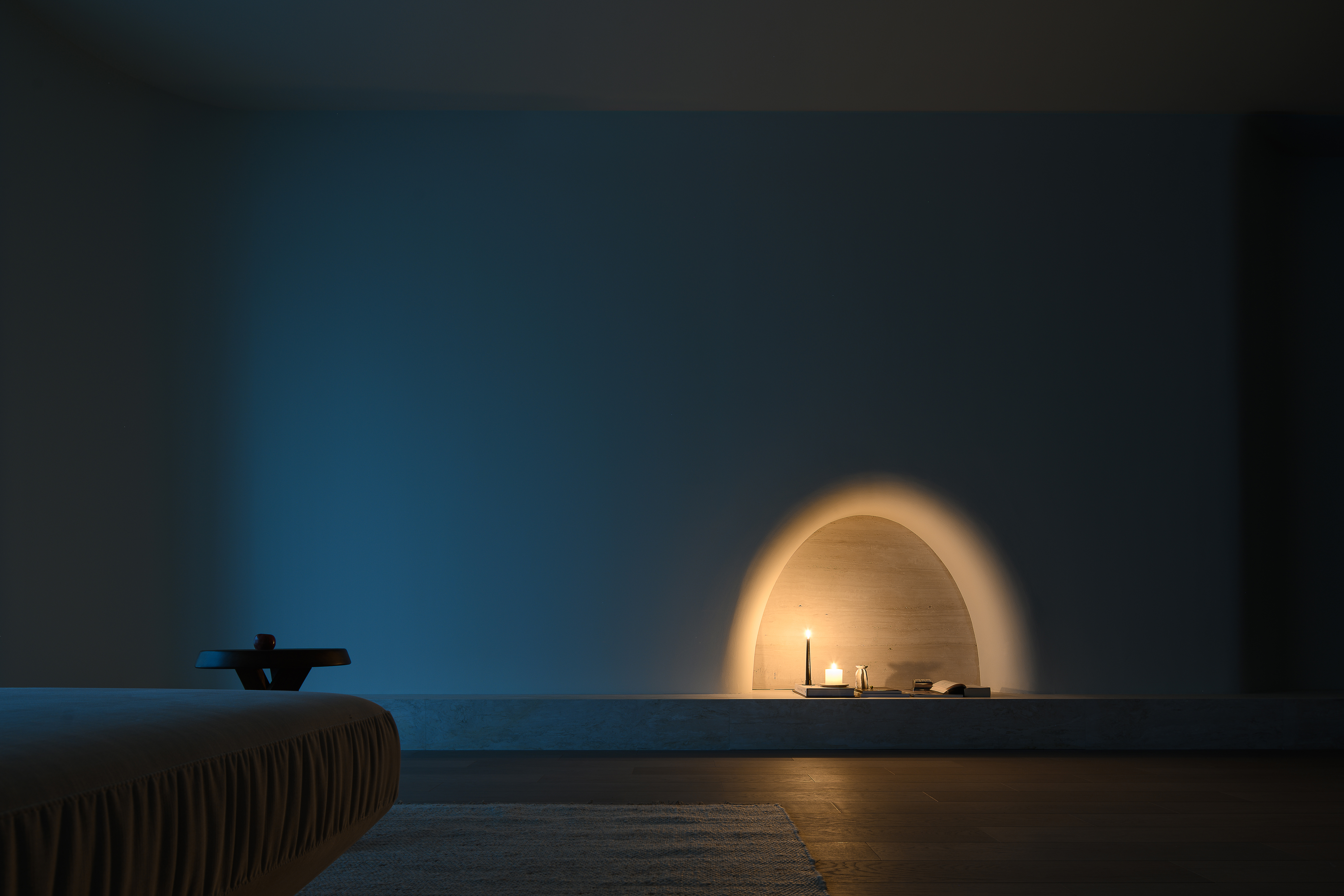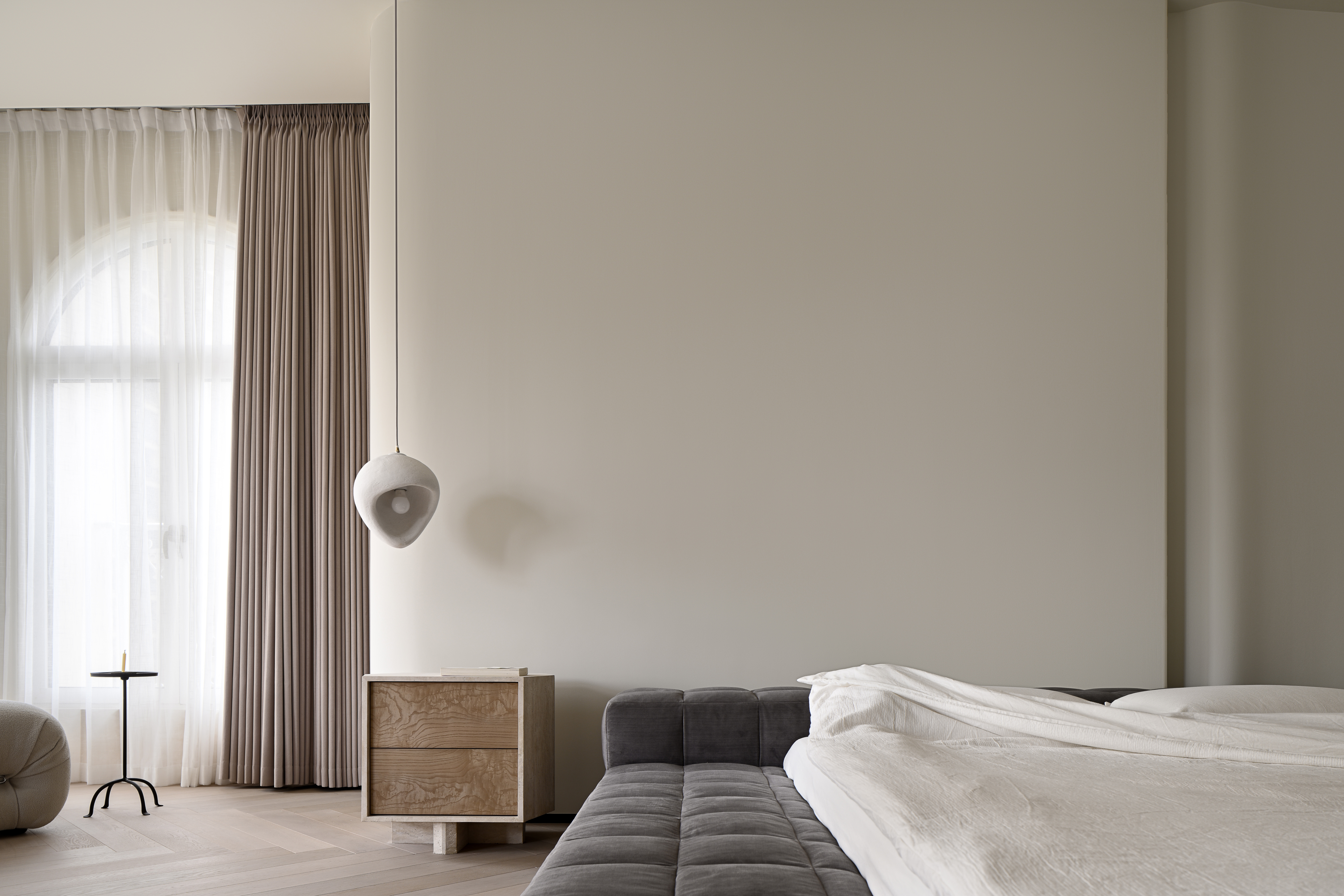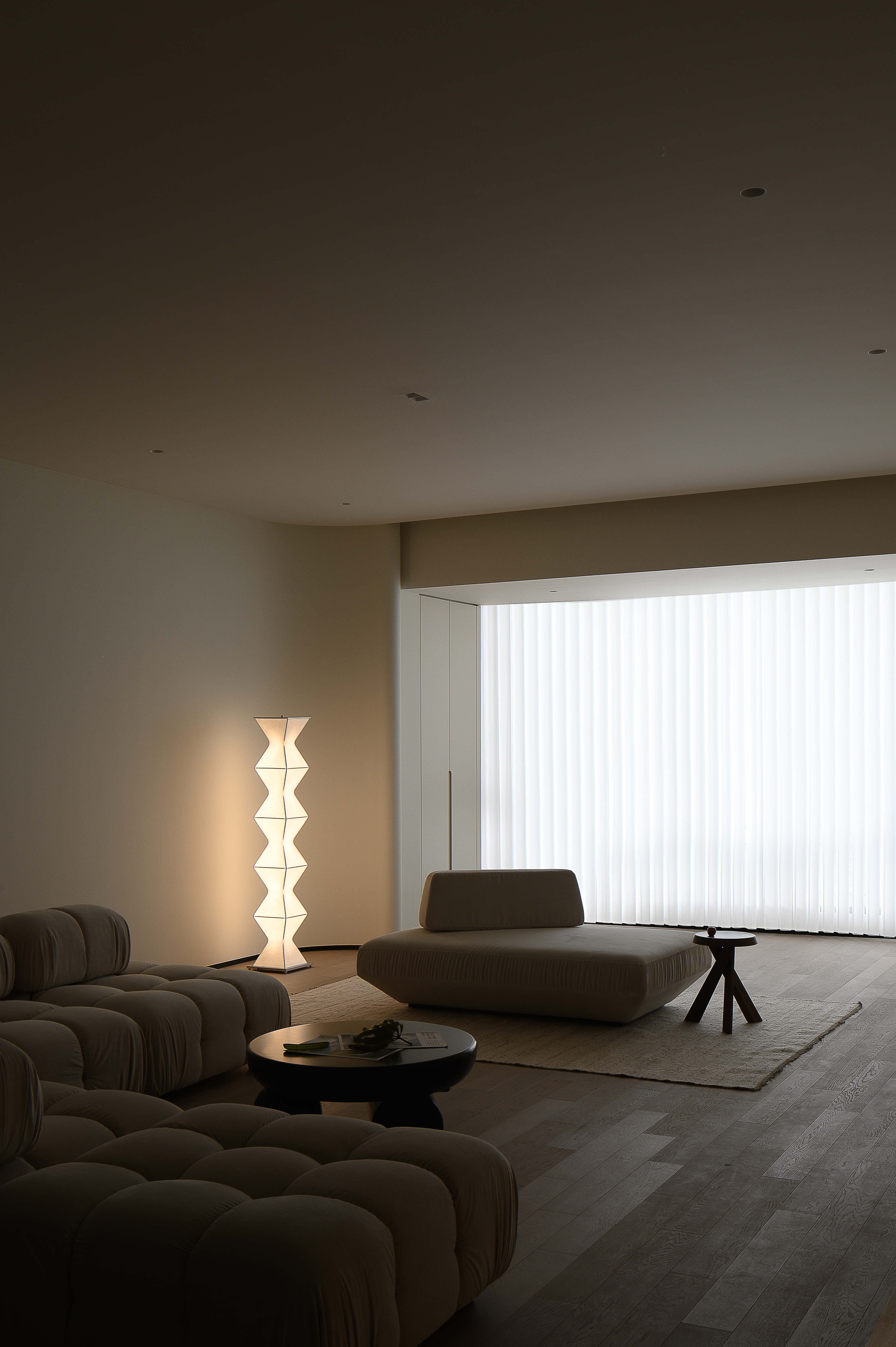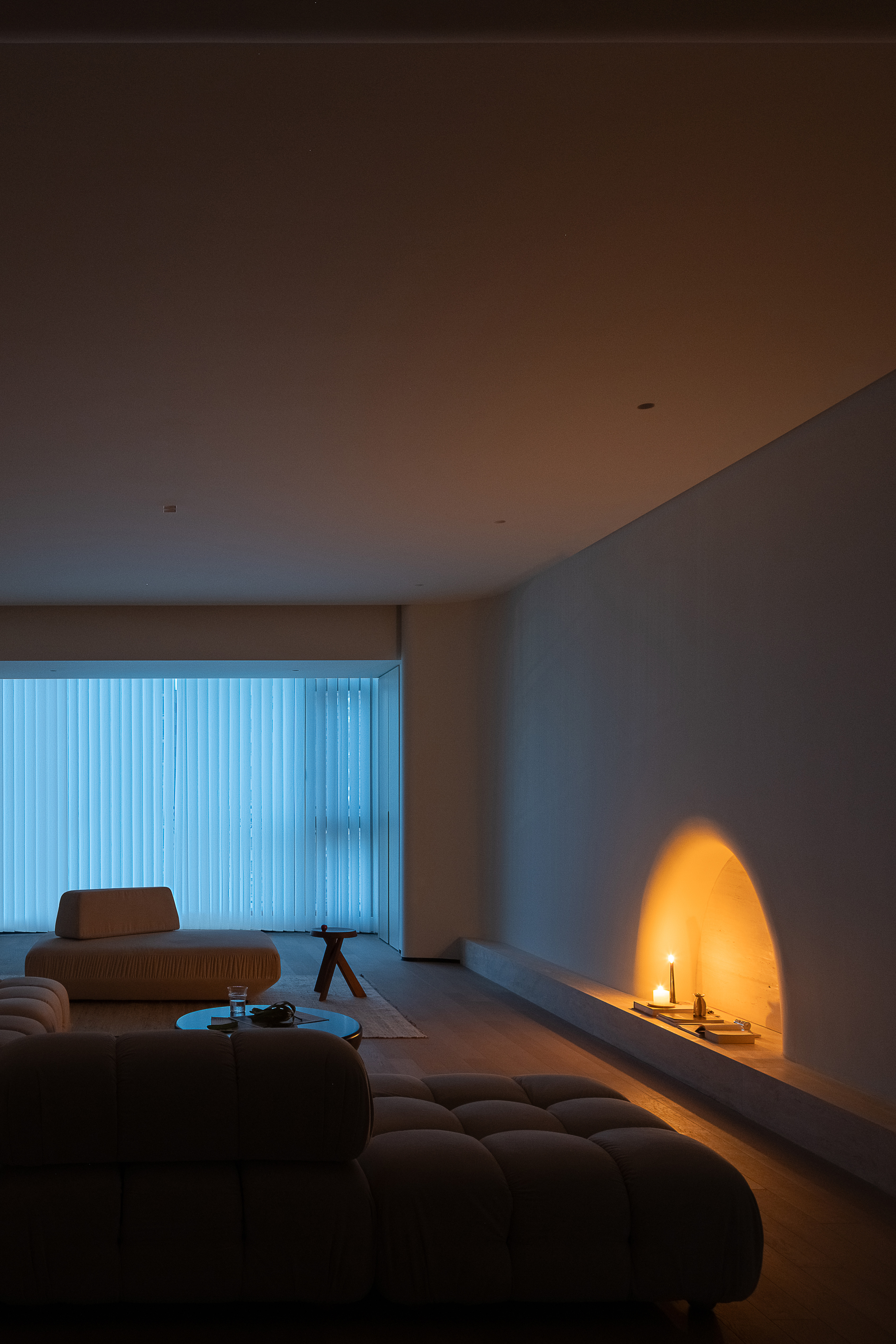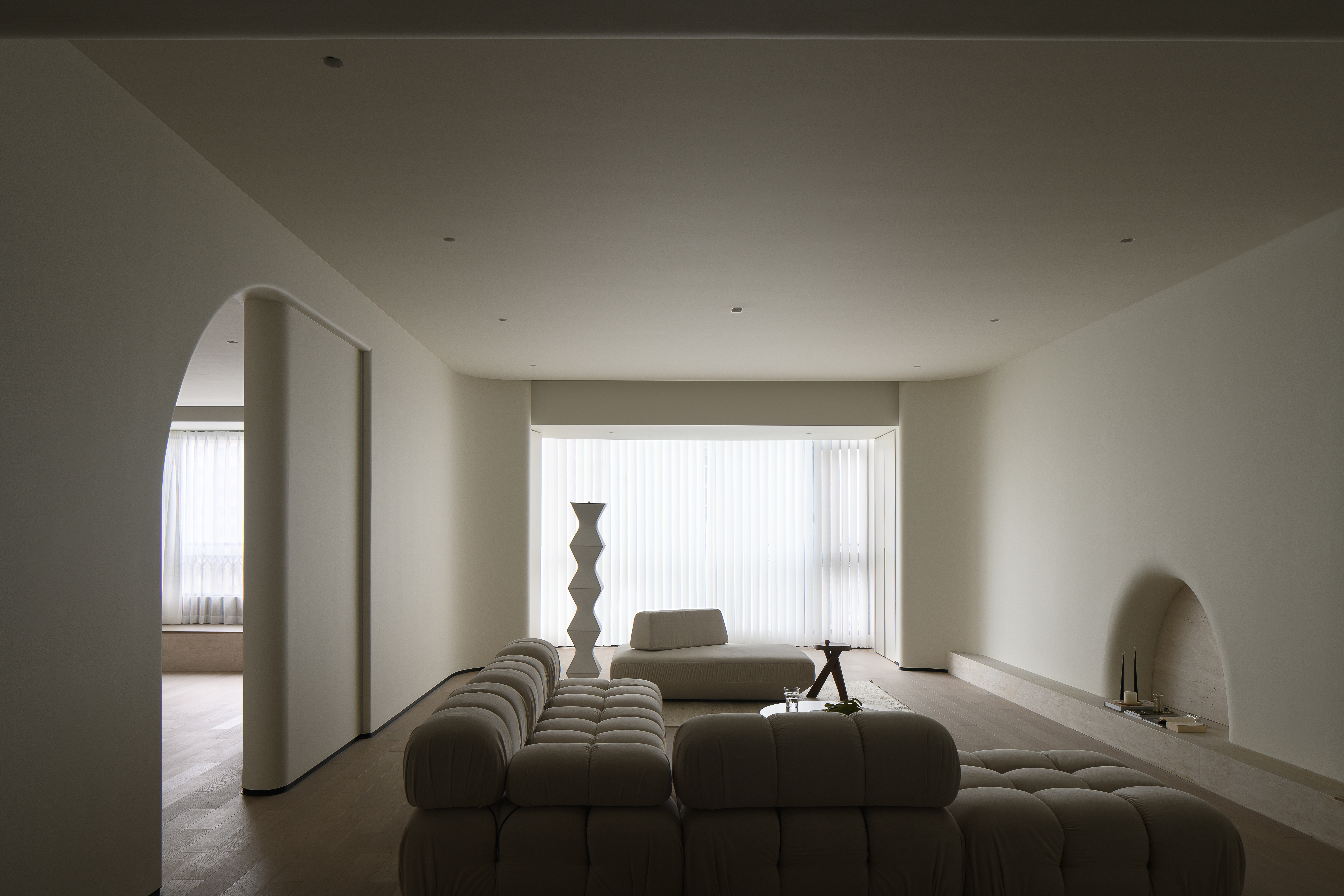 极简空间中的平静,通过空间和光影,整个空间散发着柔软、静谧的美。 -