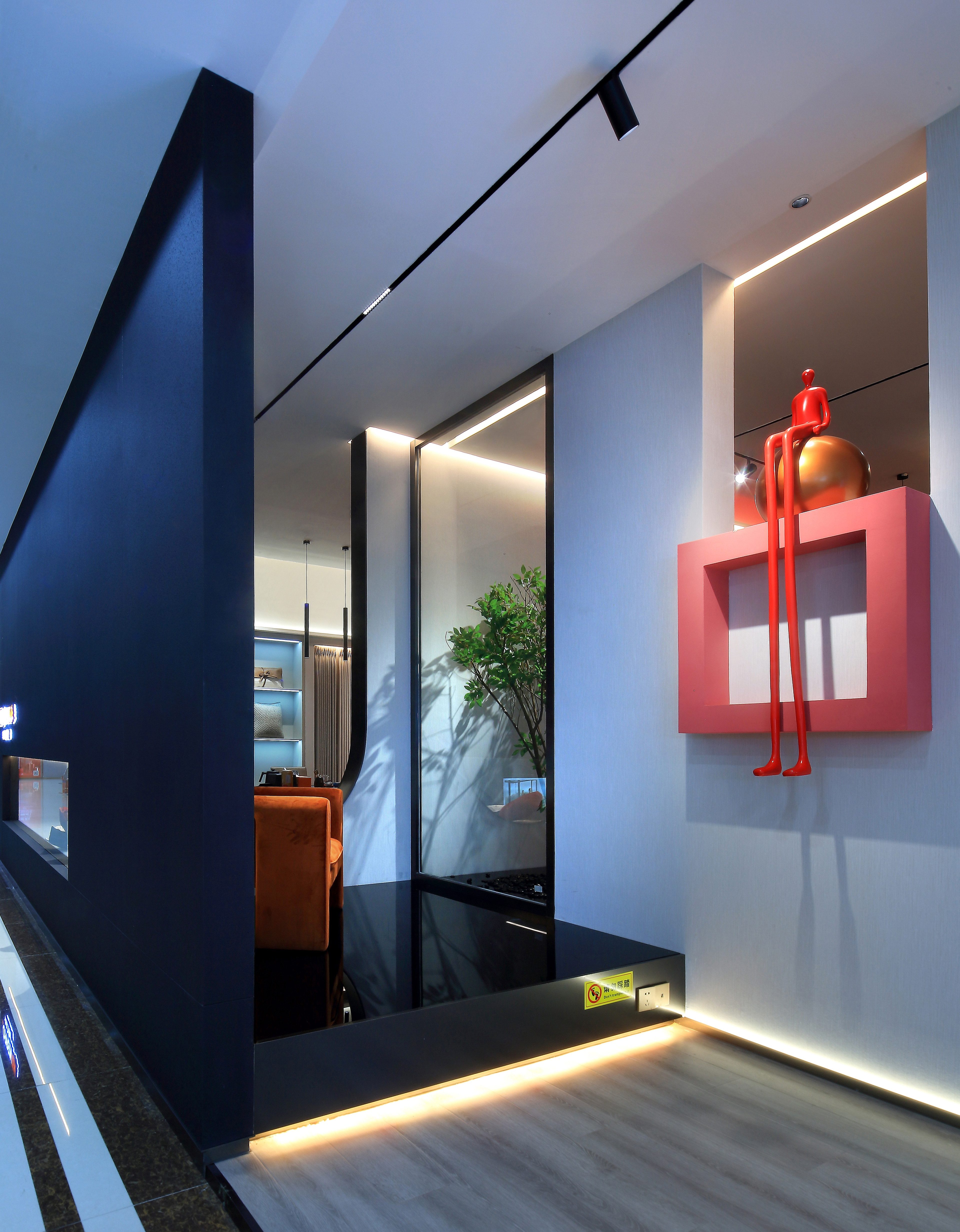 空间布局:前厅内退式设计,退一步,海阔天空,动线蜿蜒曲折,延长参观停留时间,同时最大化展示产品。