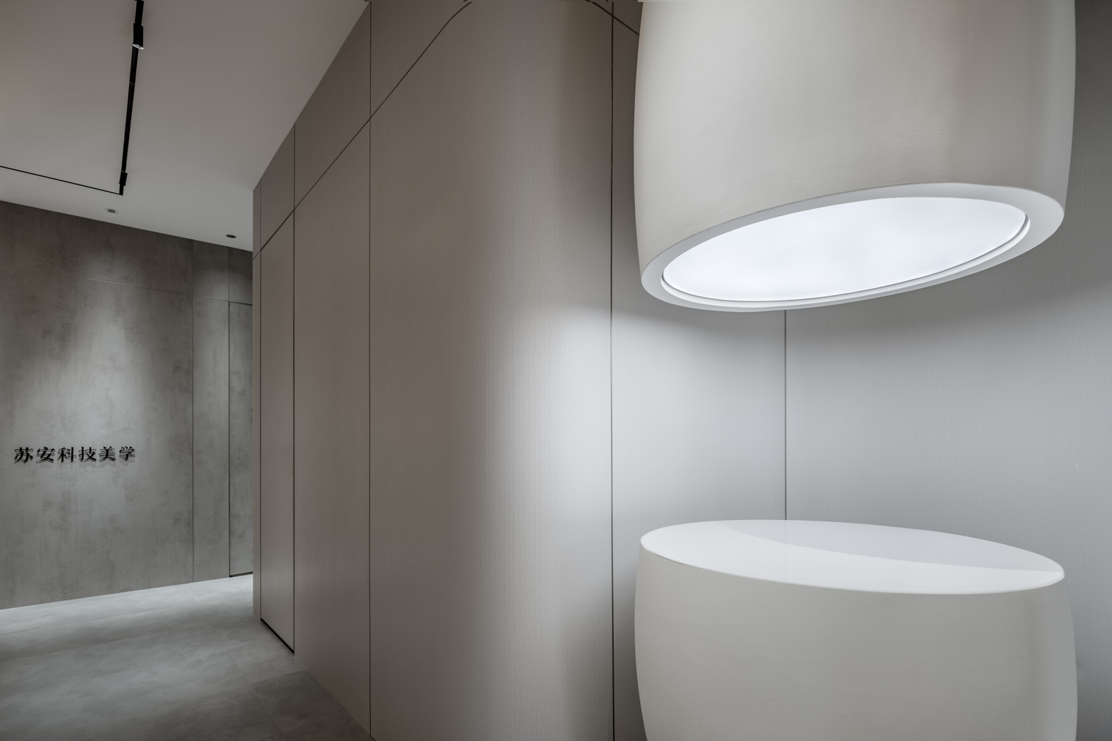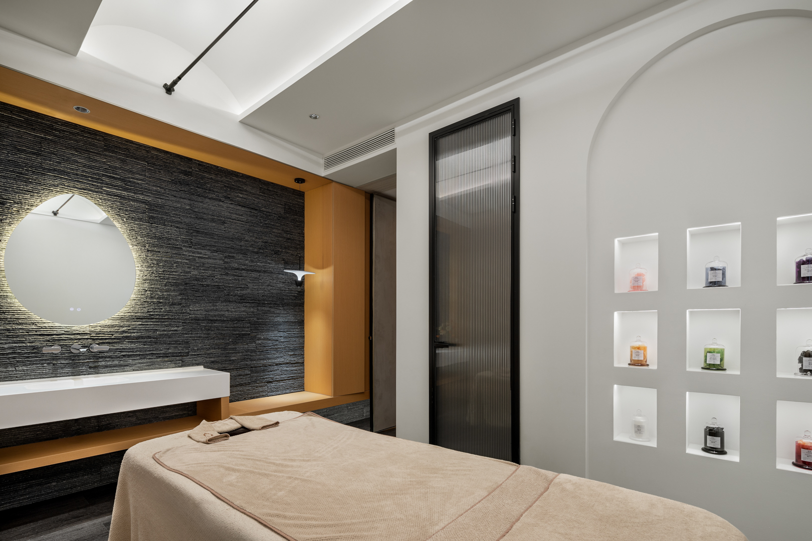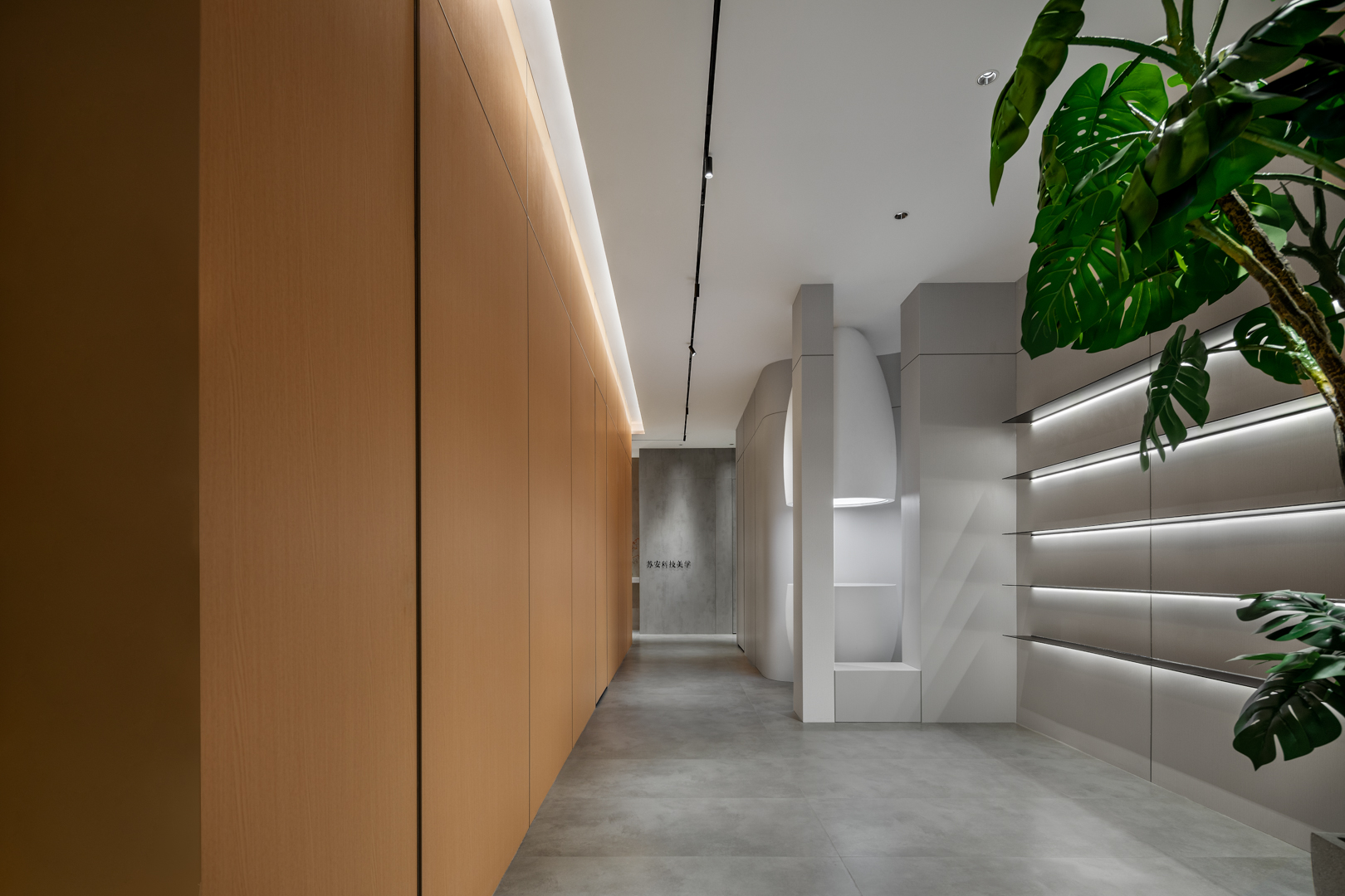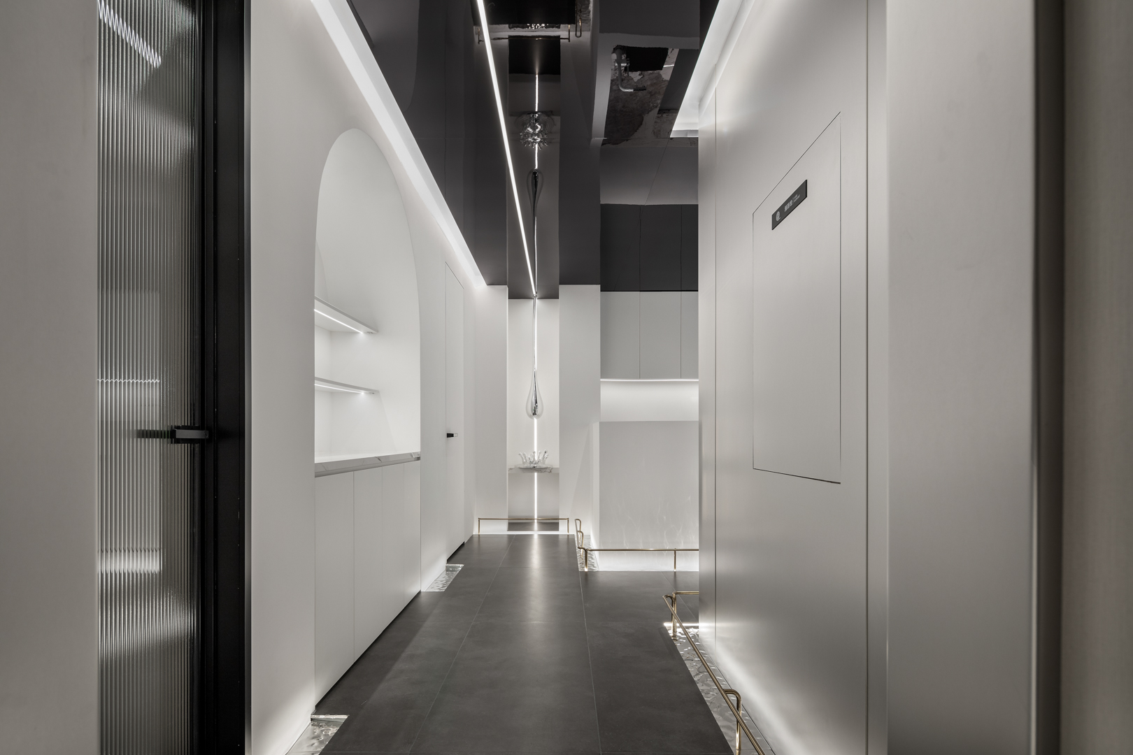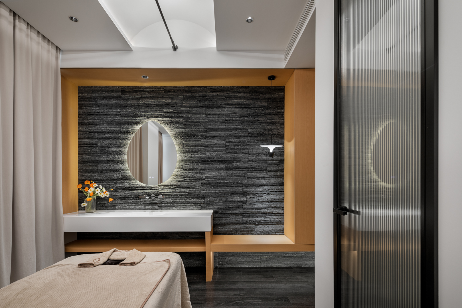 二层空间以“当代艺术馆”为概念,探索美容空间与当代艺术融合的可能性。行走其中,让人瞬间“入戏” ,如同一场超现实的时空穿越之旅;自然、几何、艺术的多元要素交织在空间当中,重塑宁静、舒适而有温度的美容体验。