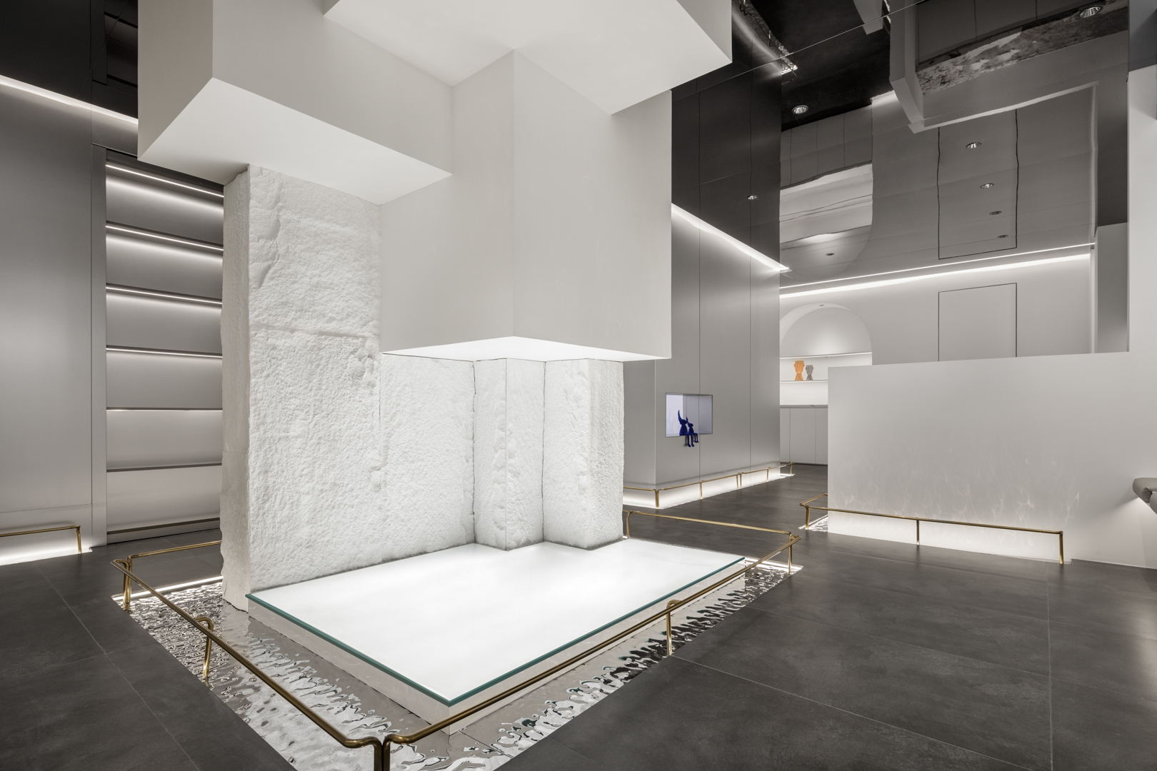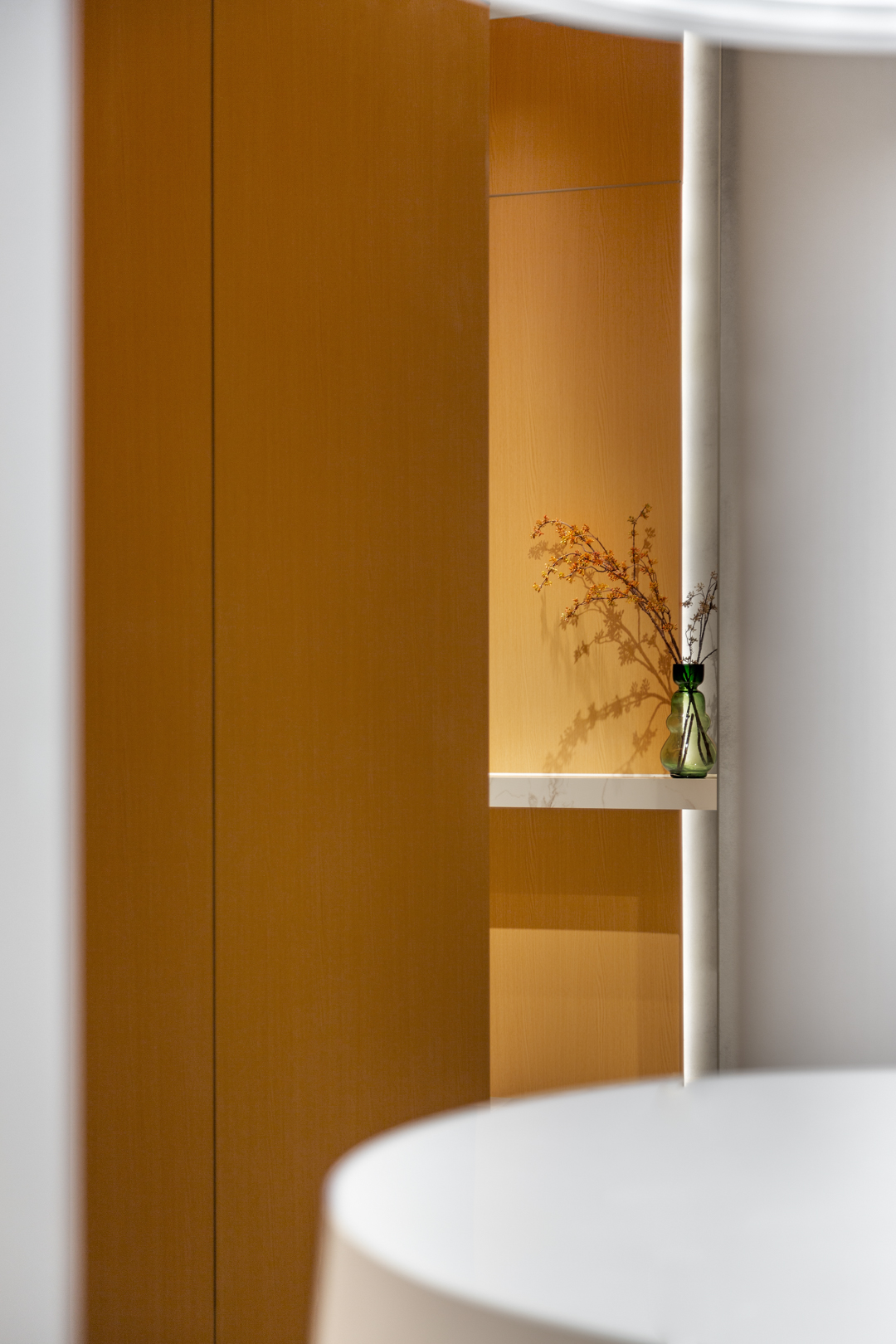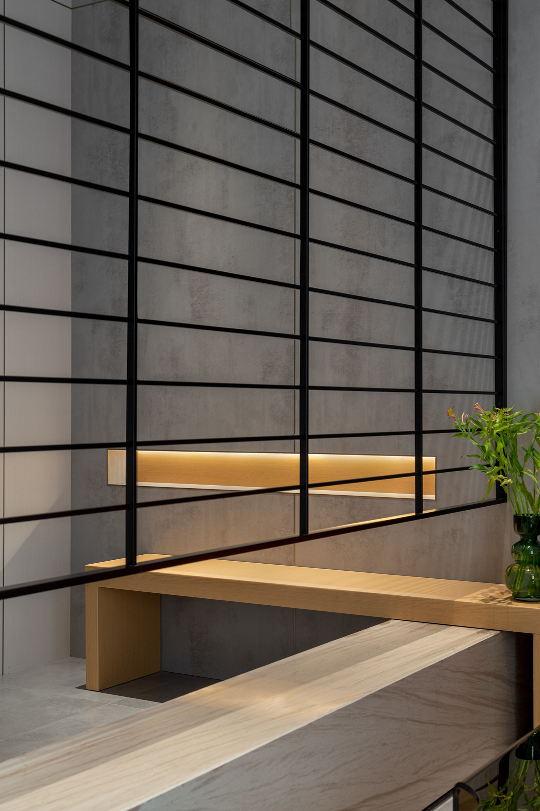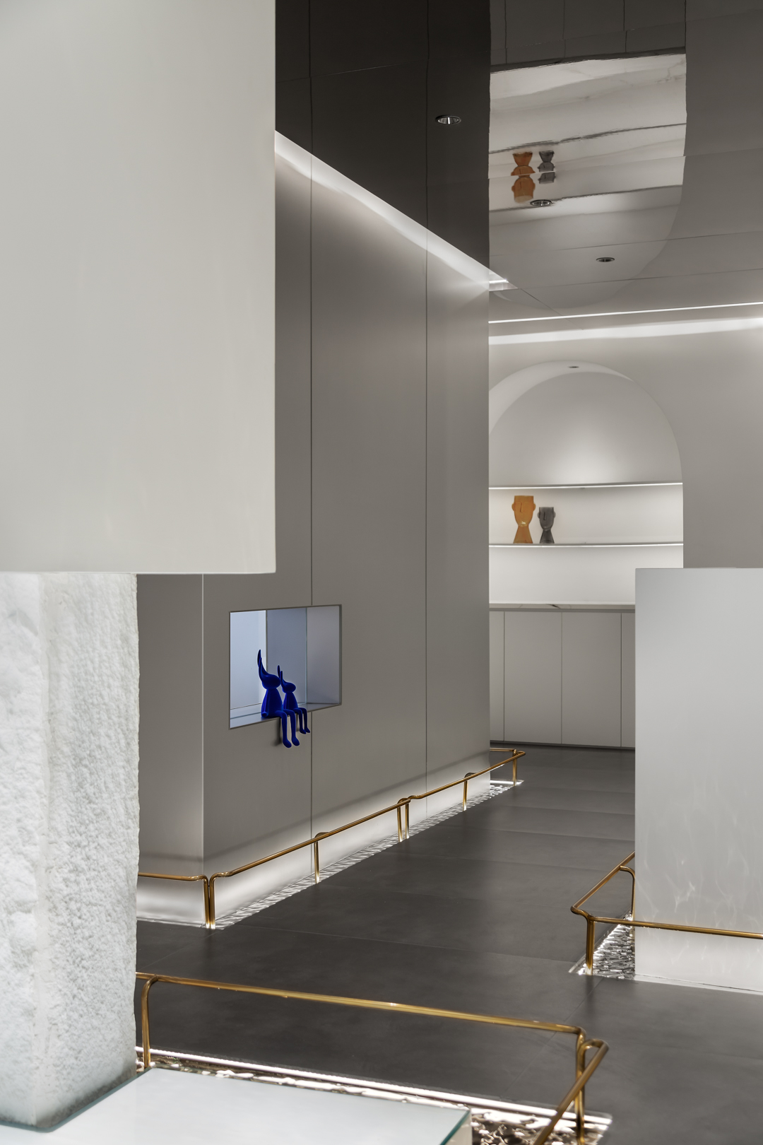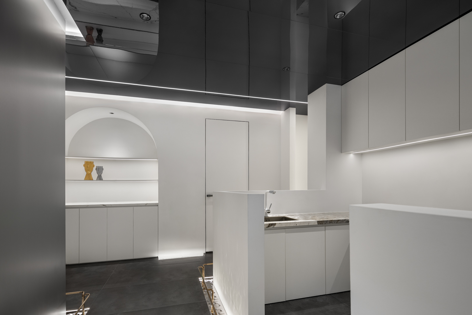 二层空间以“当代艺术馆”为概念,探索美容空间与当代艺术融合的可能性。行走其中,让人瞬间“入戏” ,如同一场超现实的时空穿越之旅;自然、几何、艺术的多元要素交织在空间当中,重塑宁静、舒适而有温度的美容体验。