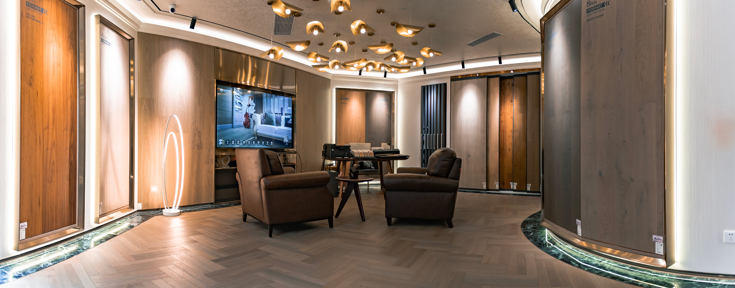 项目定位:本次设计对象为珠海必美地板店,一间经营高品质进口地板品牌的行业佼佼者,在品牌自身的形象搭建已经相对成熟、稳定的前提下,设计规划上如何能够再向前、向新、向荣,是我们希望为品牌带来的空间价值。